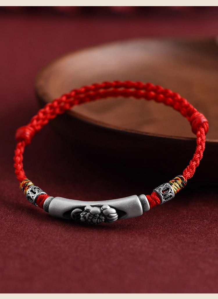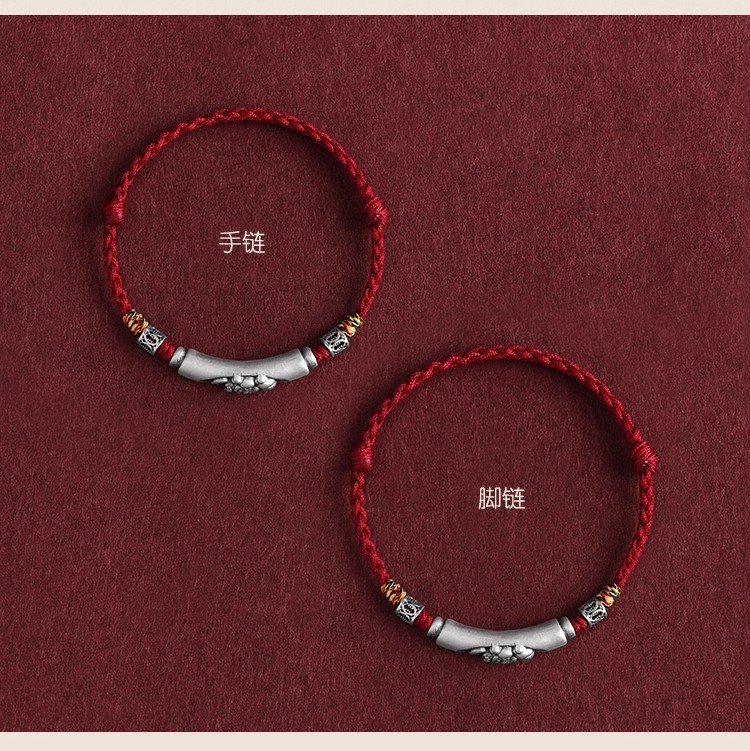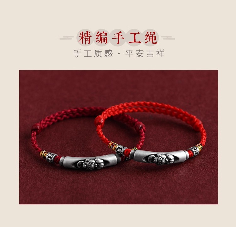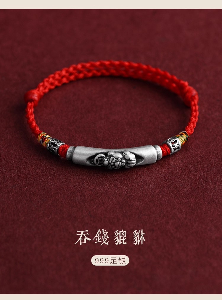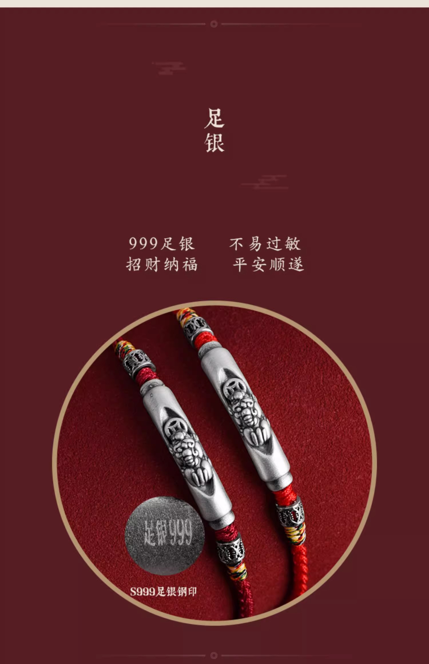Putuo 999 Pure Silver Lucky Pixiu Red String Bracelet for Men and Women, Fortune Bead for the Year of Birth, Handmade Weaving