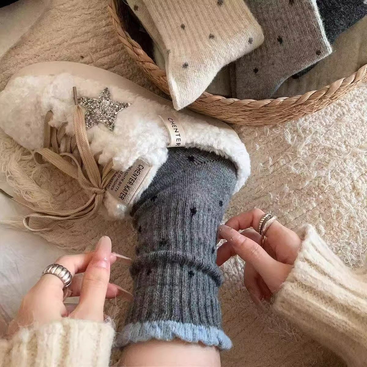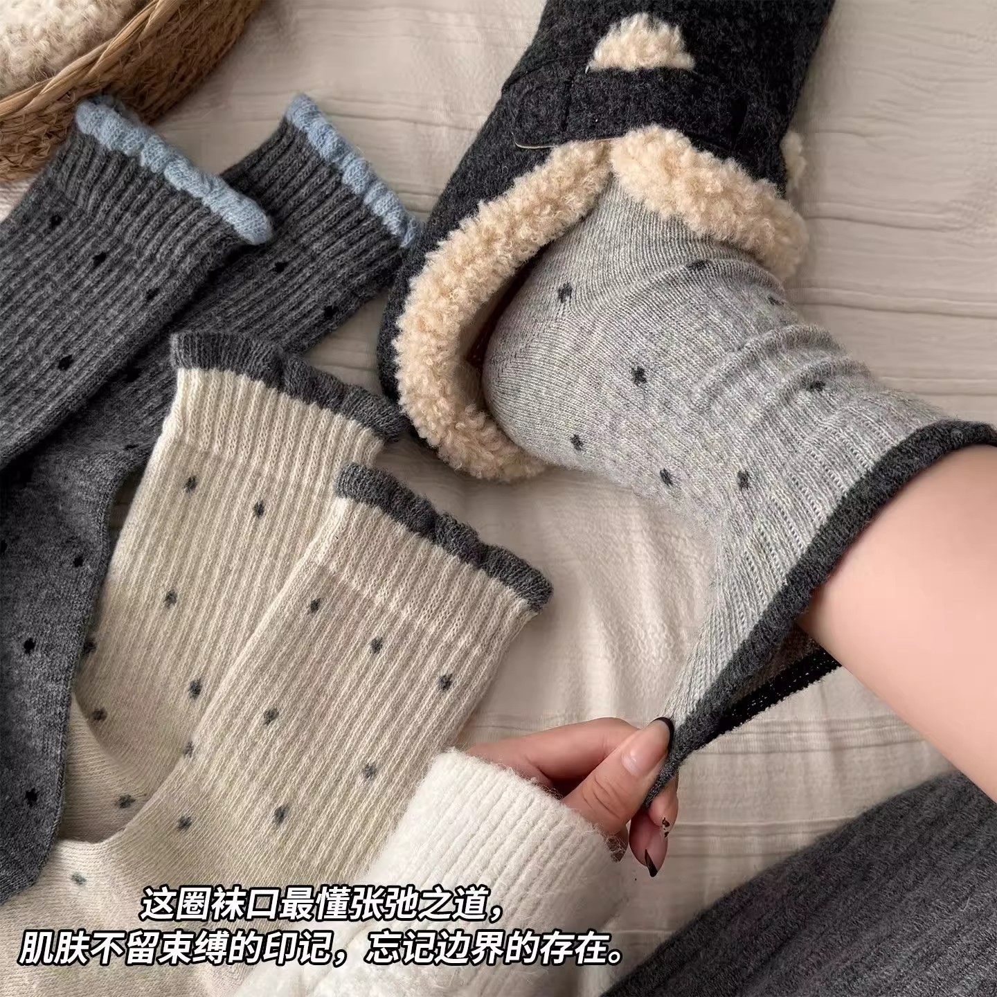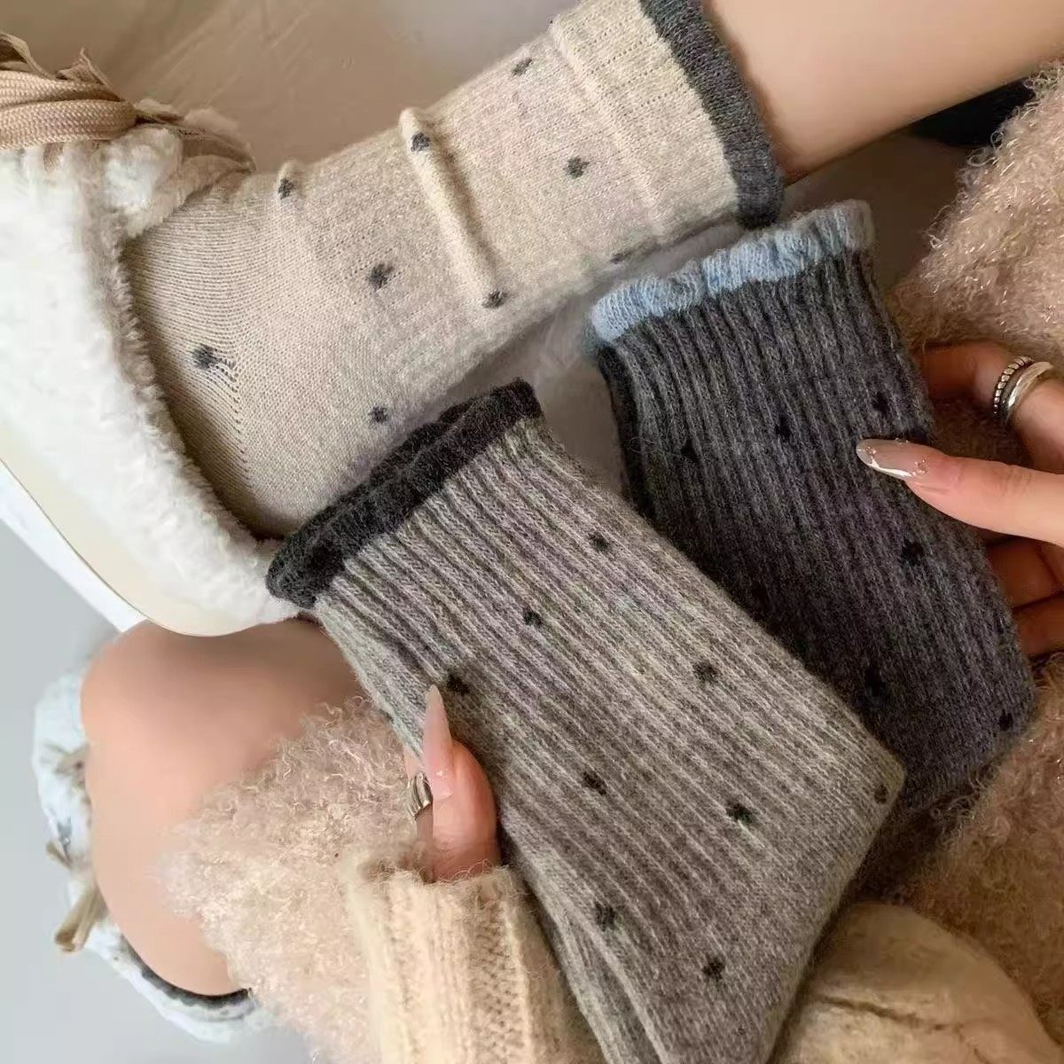 Retro Dopamine Socks for Women, Mid-Calf Socks for Autumn and Winter, Polka Dots, Gentle Lace, Versatile Long Socks with Wide Opening for Outer Wear