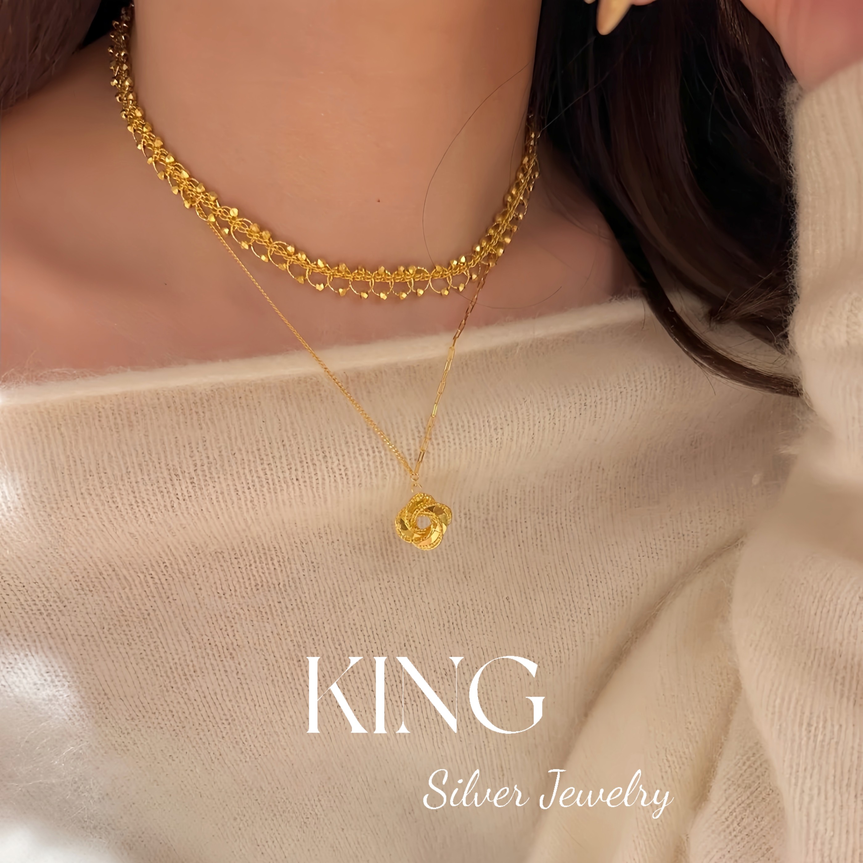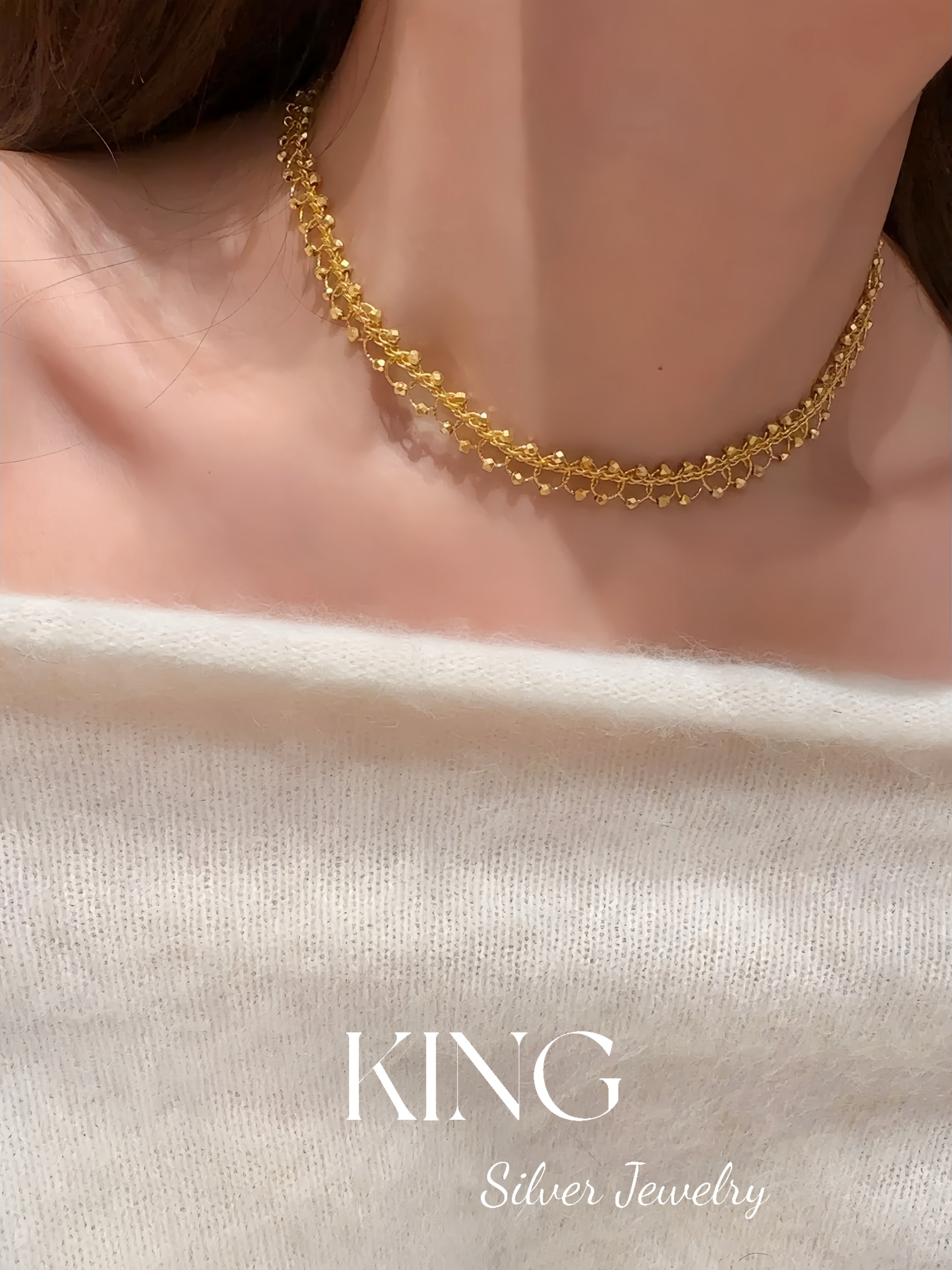 Feast | King Silver Jewelry Lace Disco Bead Layered Women's Vintage Light Luxury Fashionable Pure Silver Necklace