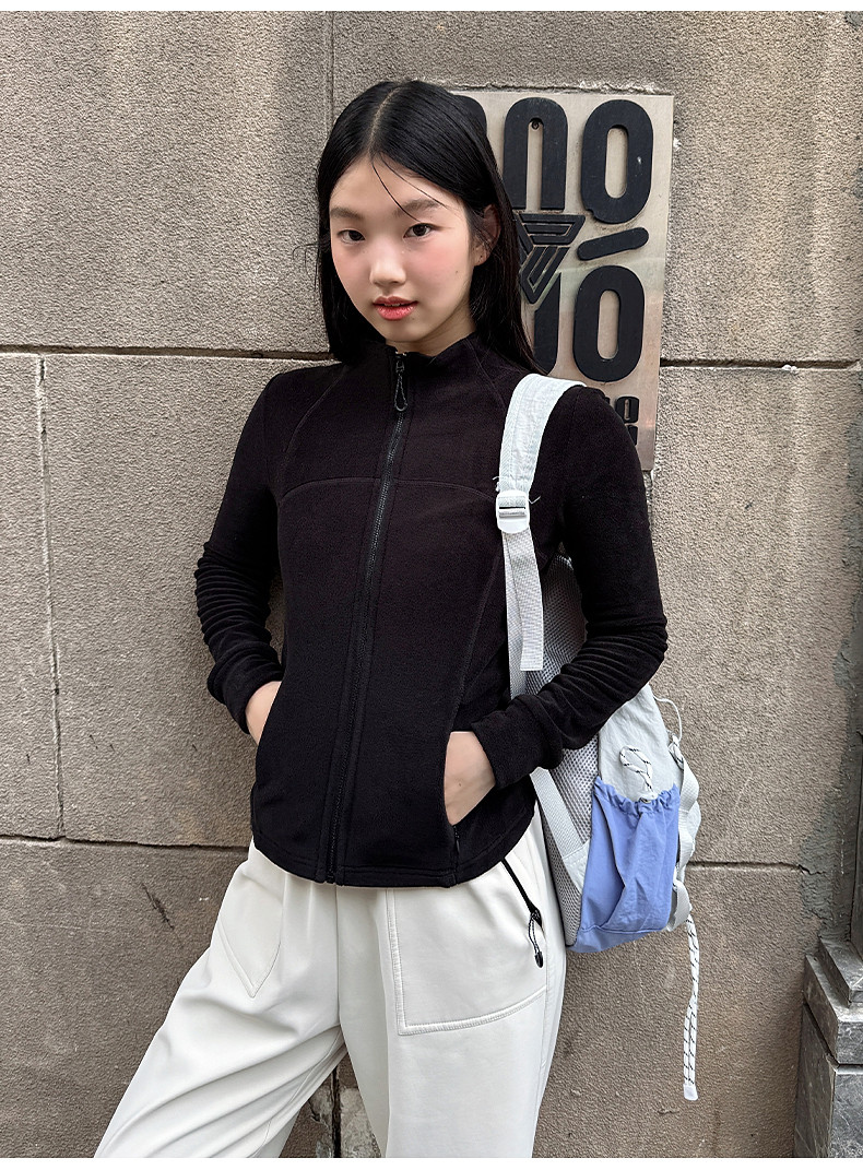 Jr Jeanswest Fleece Jacket for Women, Autumn and Winter 2025 New Style, Softshell Jacket with Inner Lining, Stand Collar, Double-Sided Fleece Thick Jacket