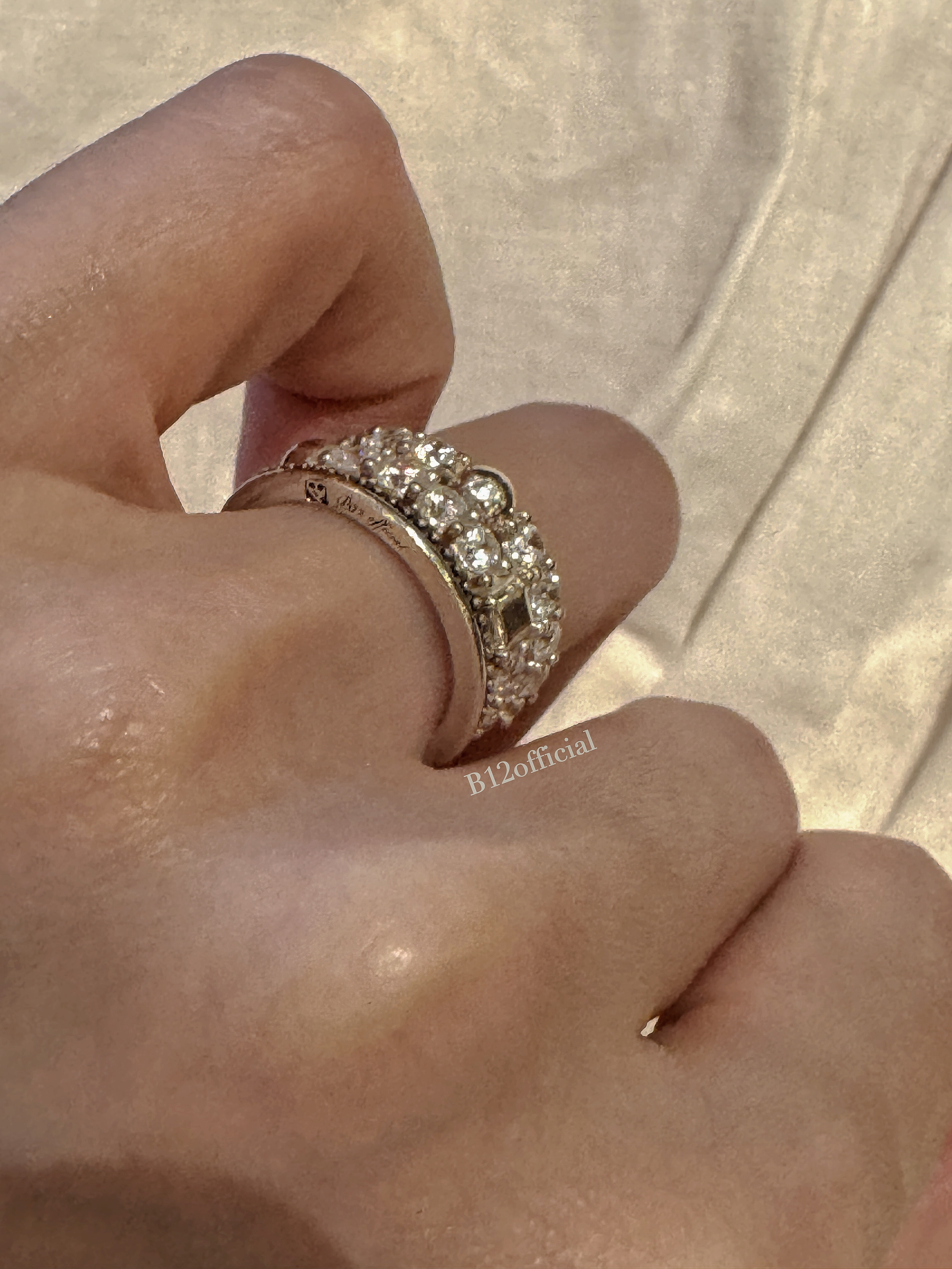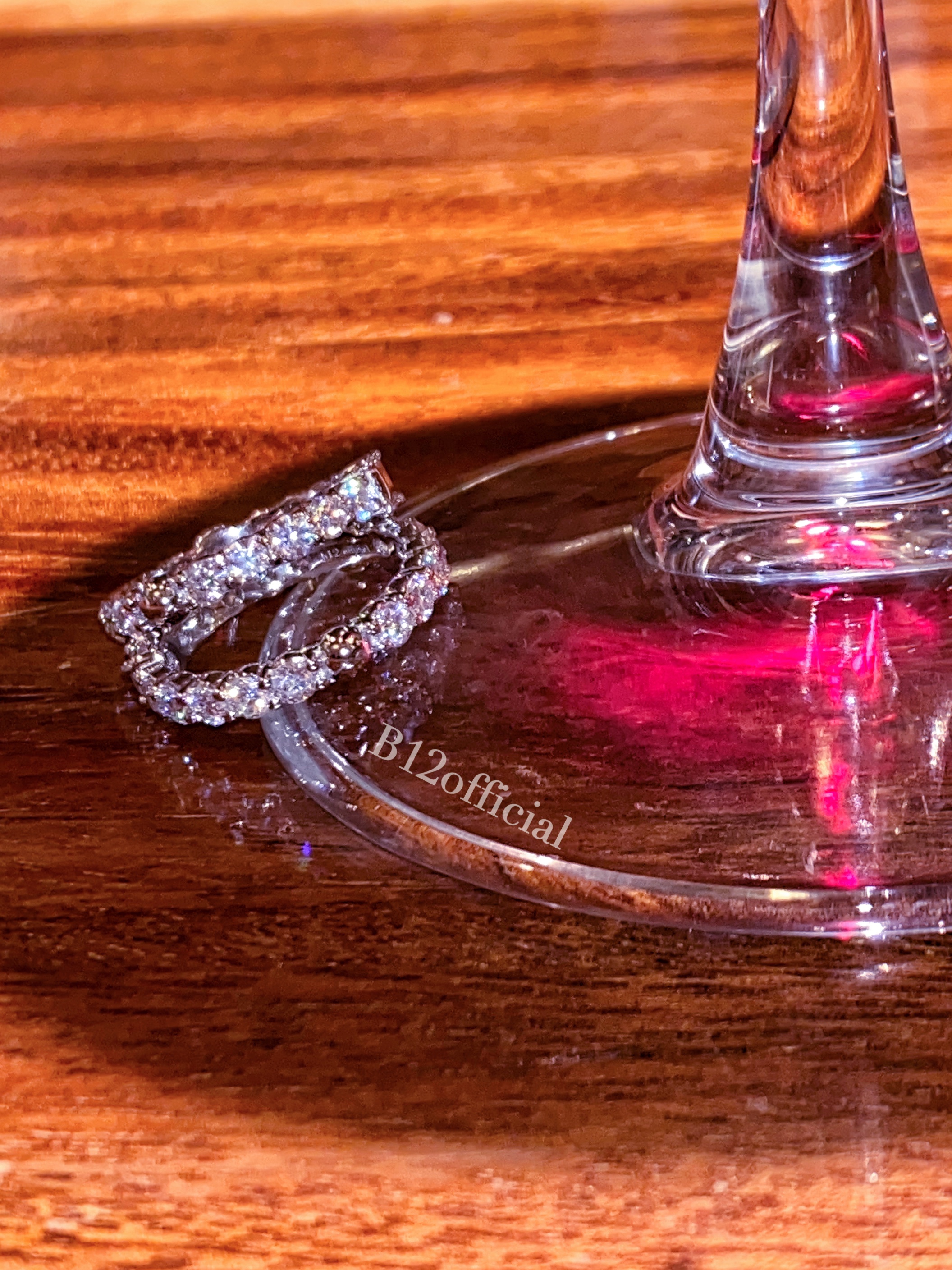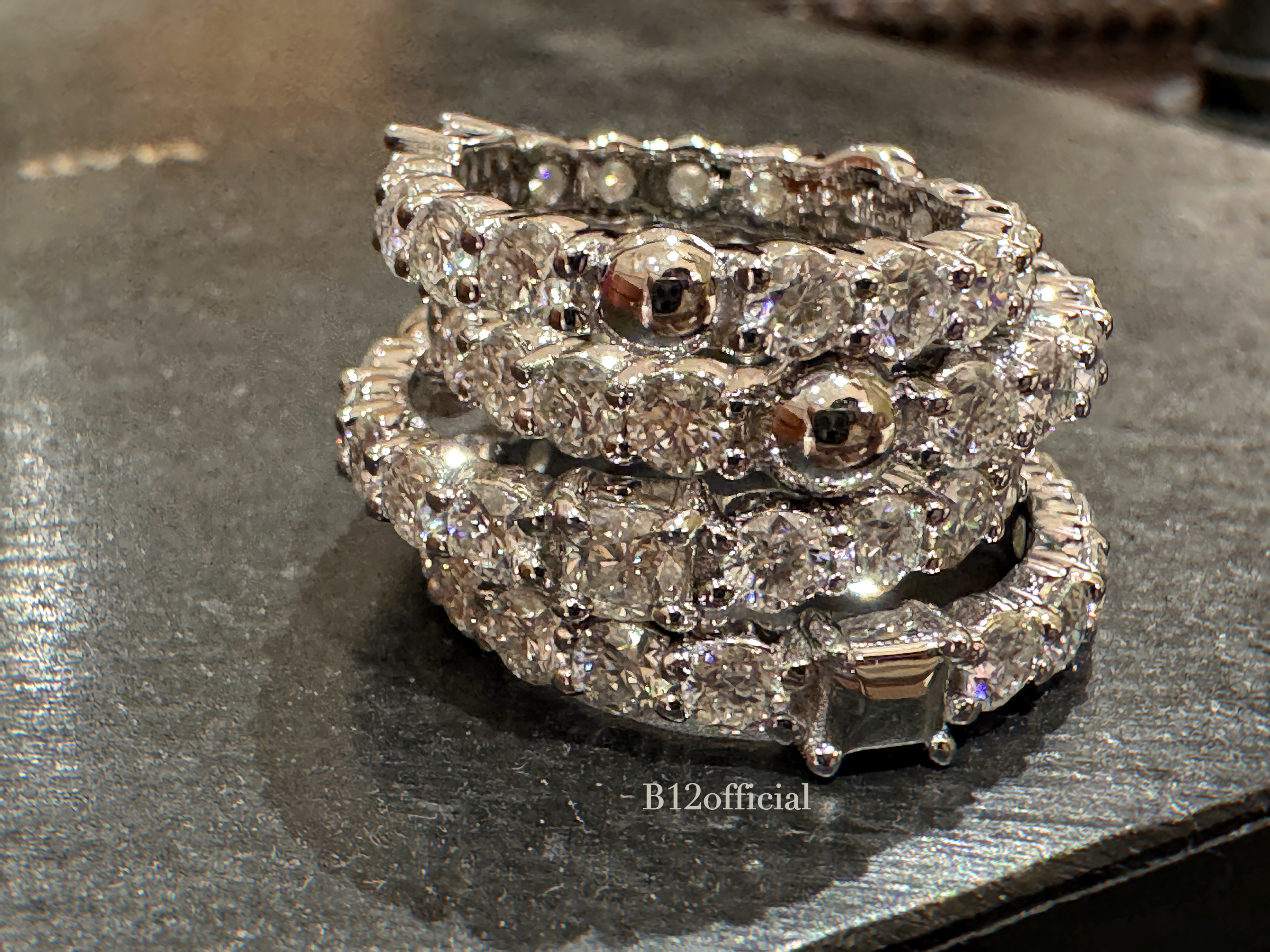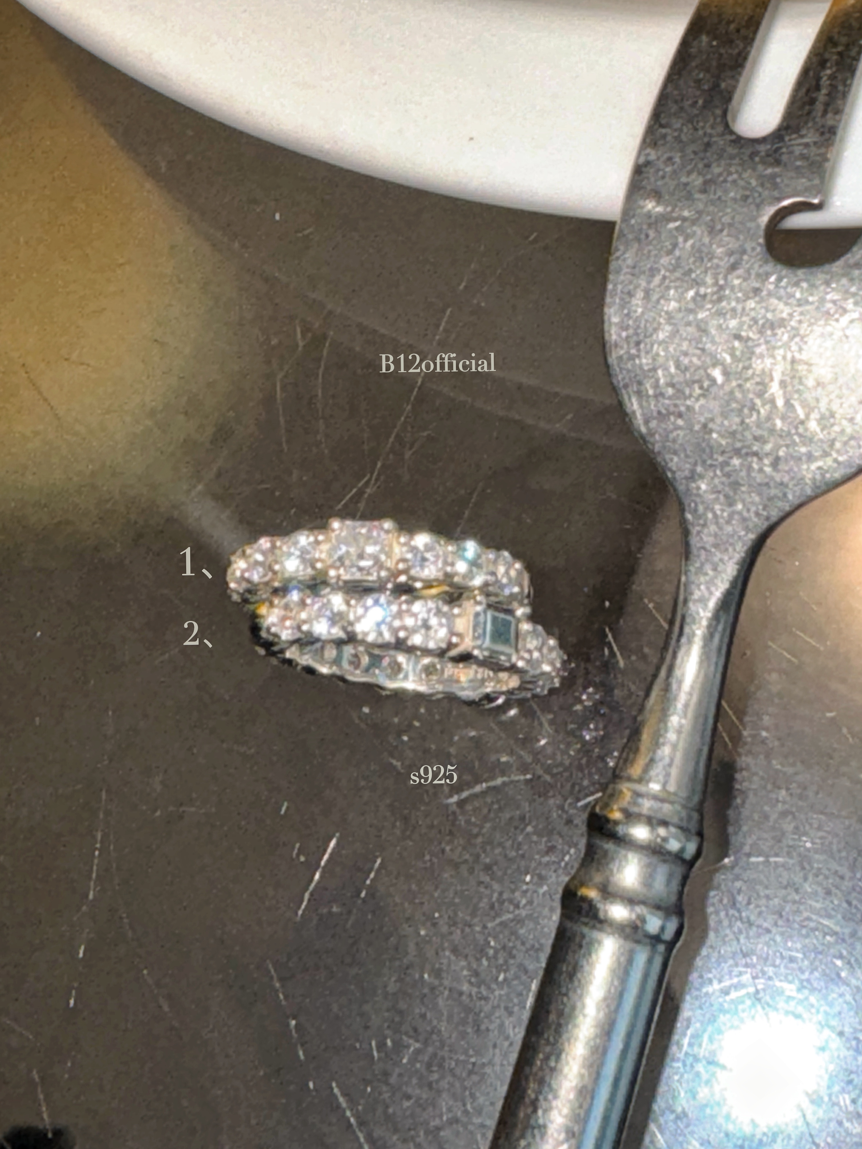 B12 Official|Row of Diamond Rings 925 Silver Row of Diamond Rings Simulated Gemstone Diamond Ring Silver Plated with Platinum