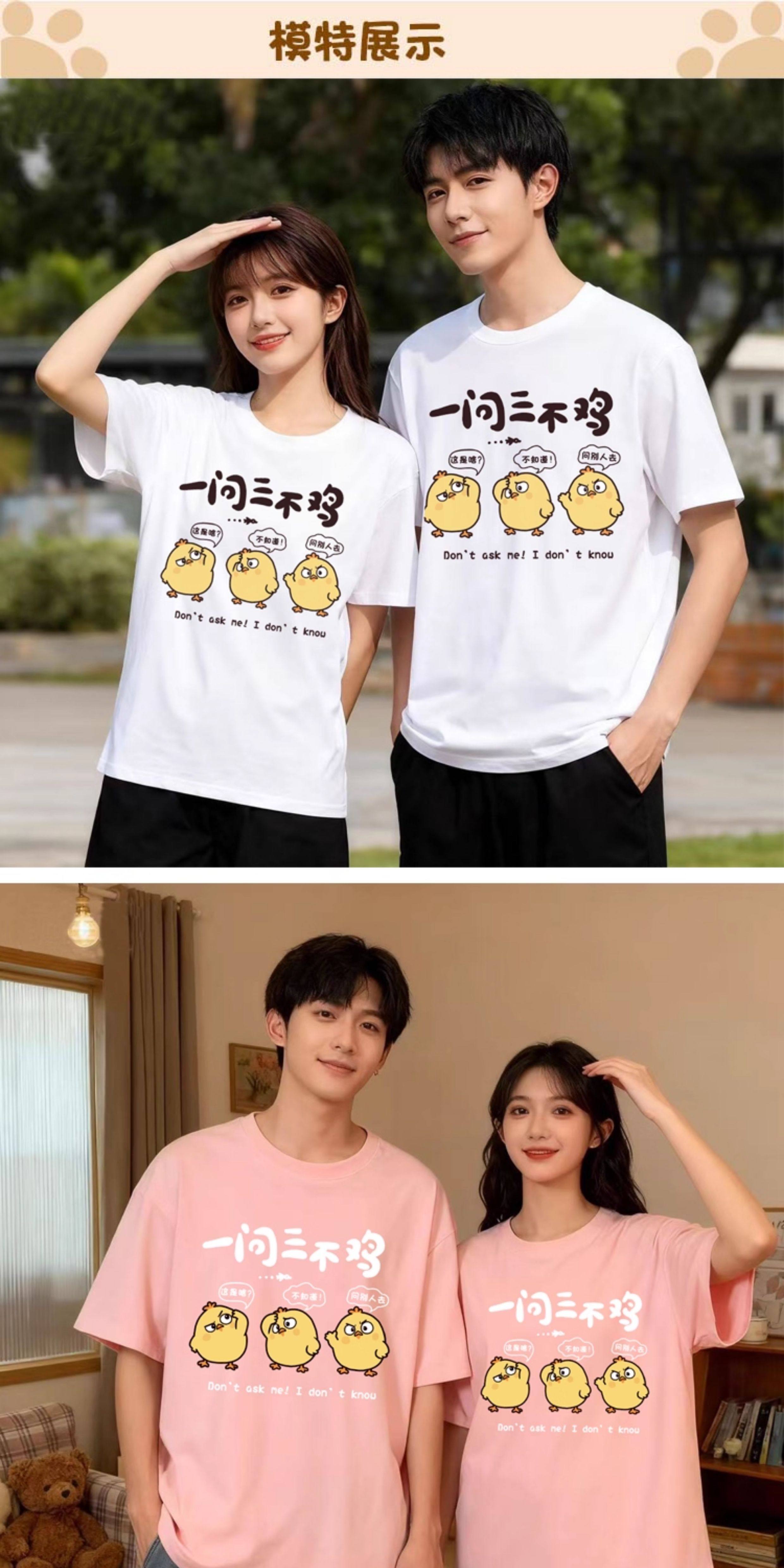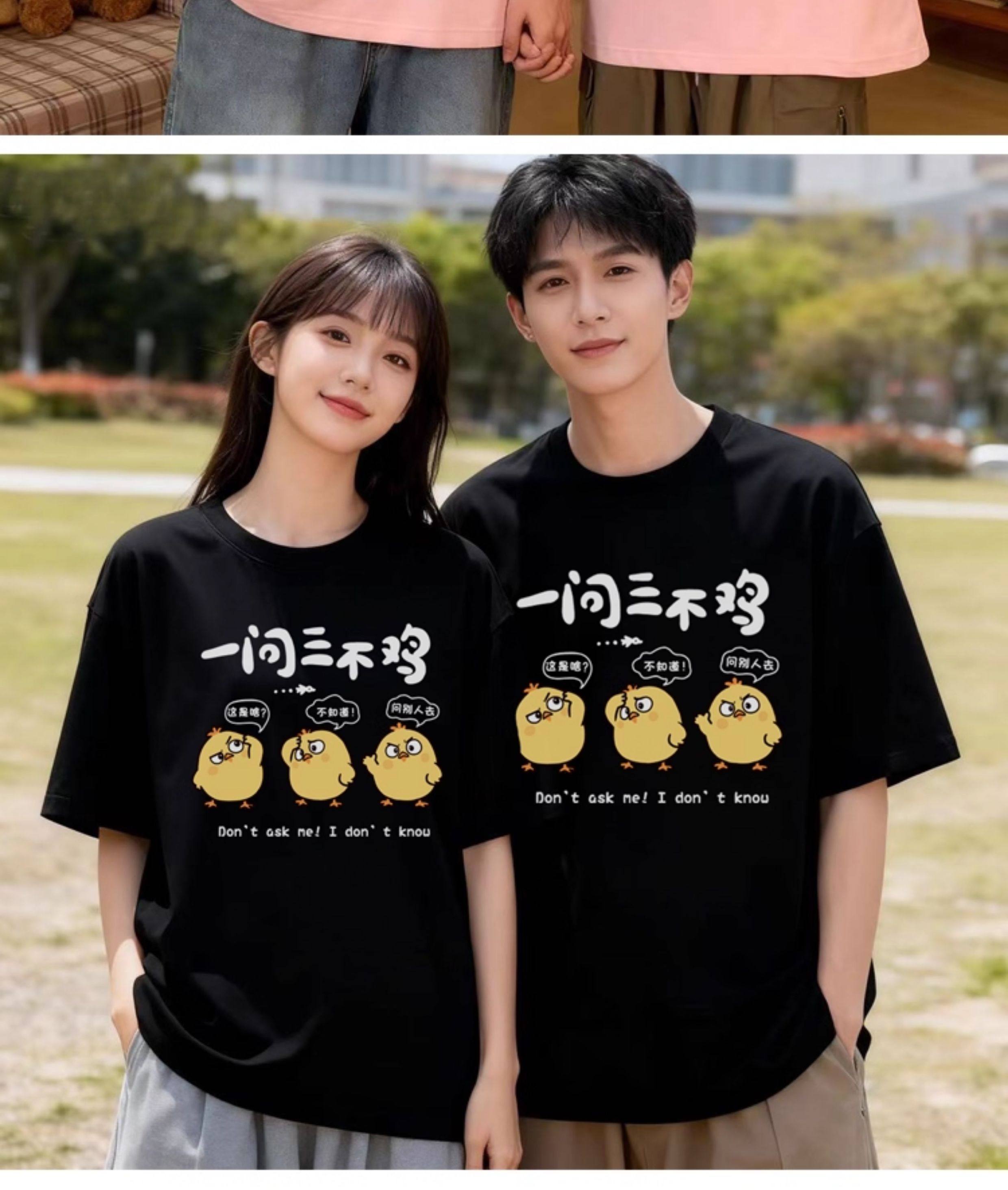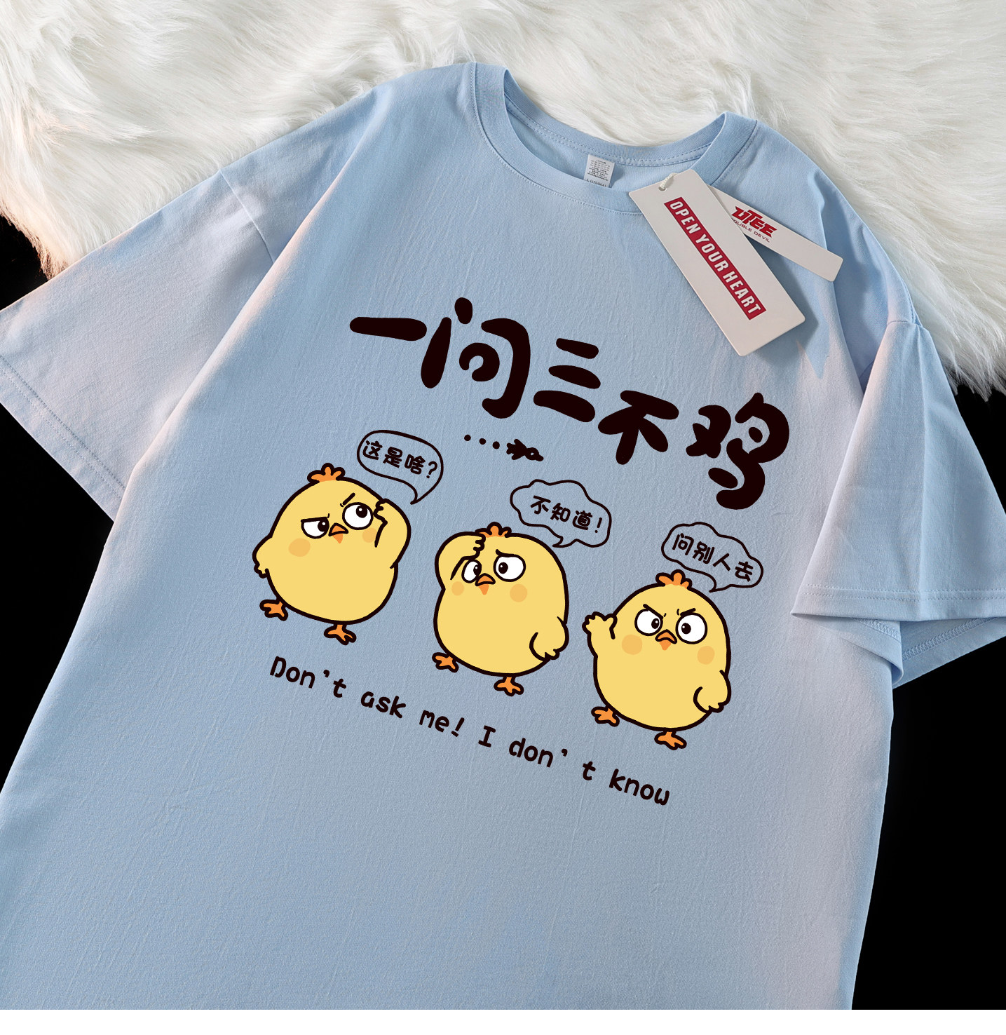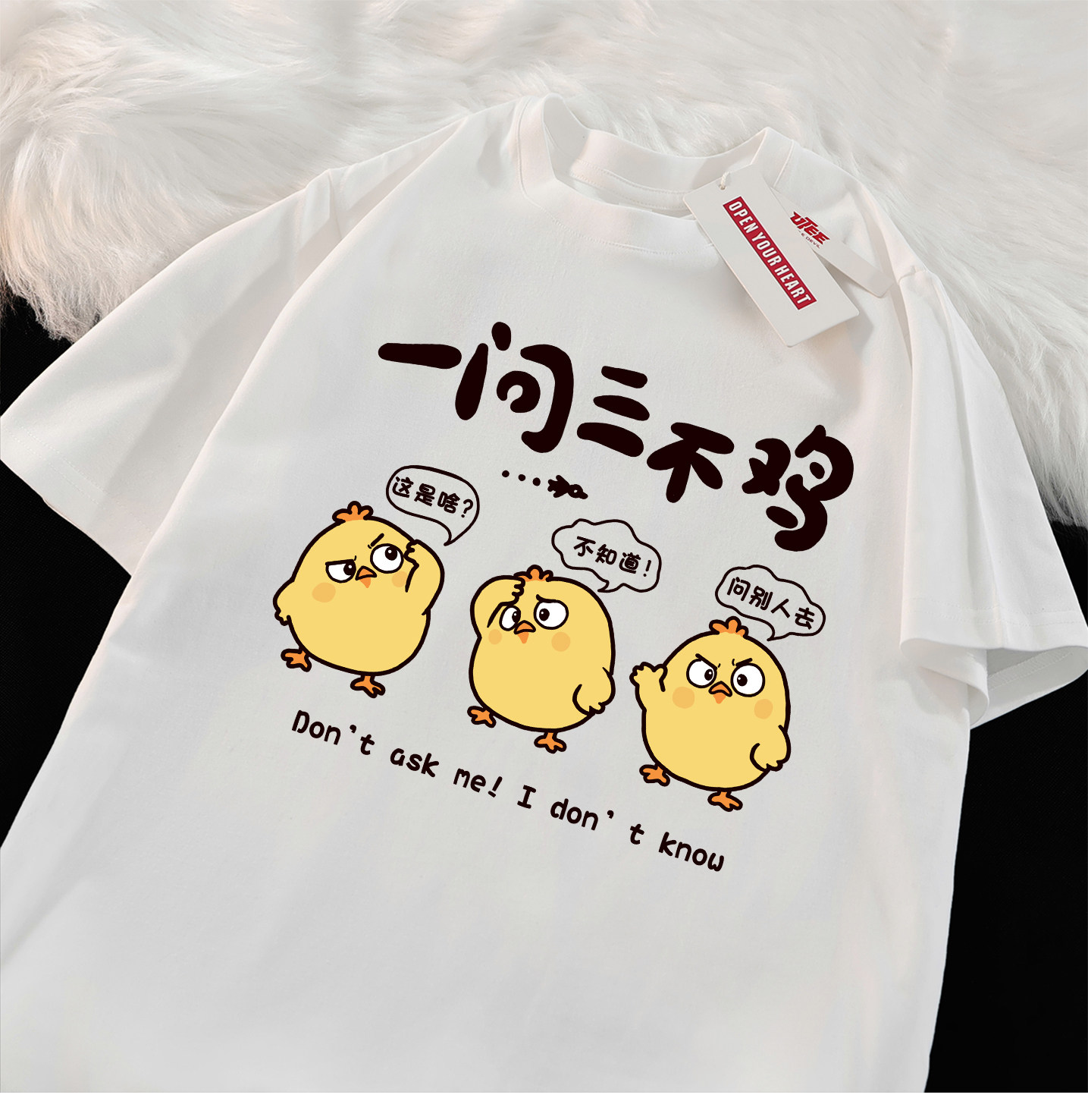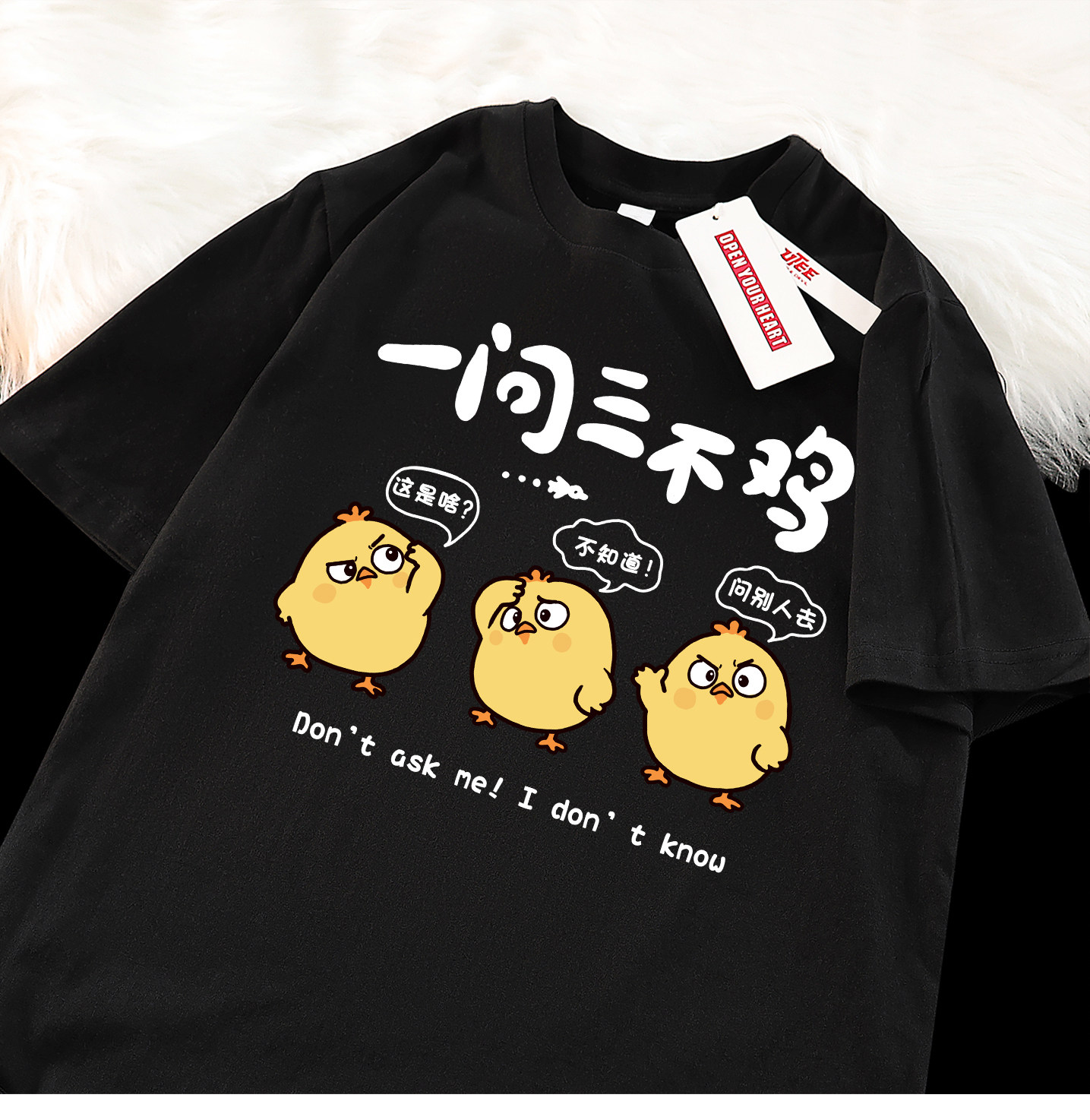 Utee One Question Three No's Chicken Funny Cute Chick Original Casual Funny Short Sleeve Loose Fit Unisex Pure Cotton T-Shirt