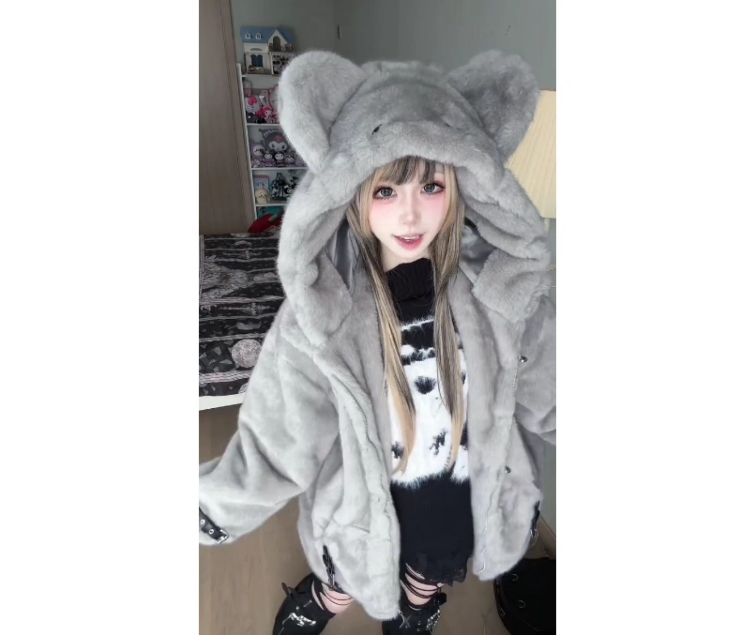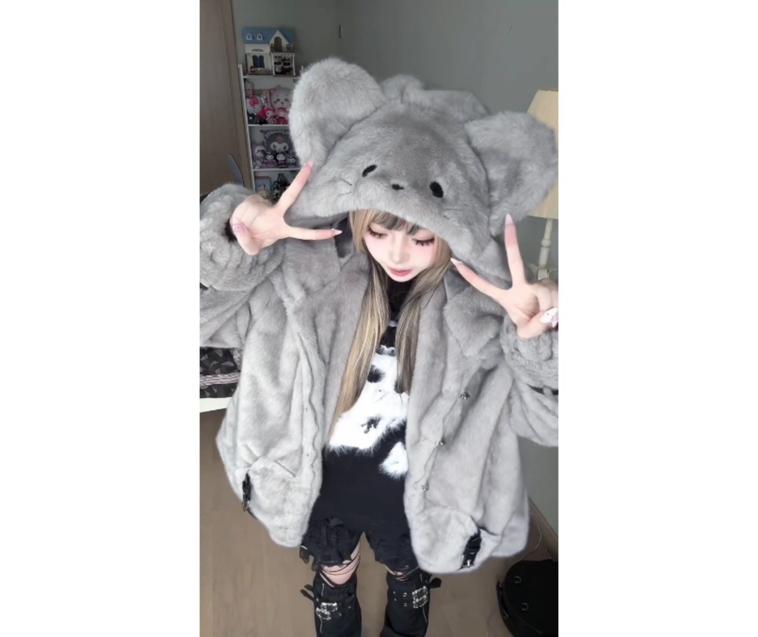 Japanese-Style Cute Mouse Big-Eared Lamb Wool Coat for Women, Winter Loose Thickened Warm Plush Cotton Jacket