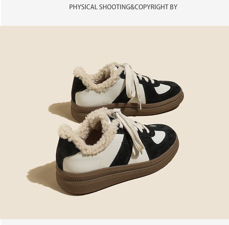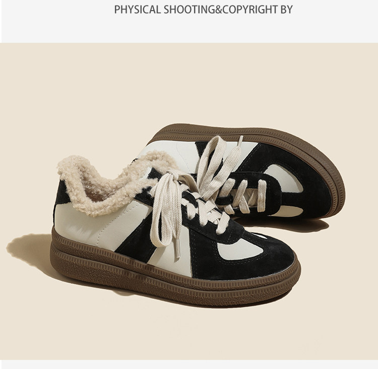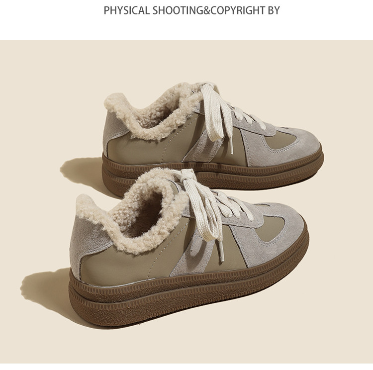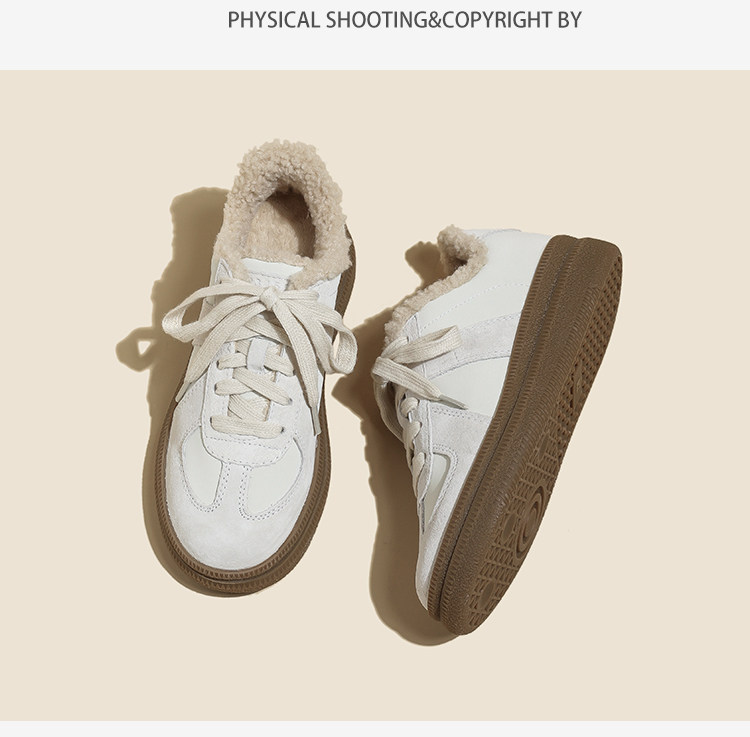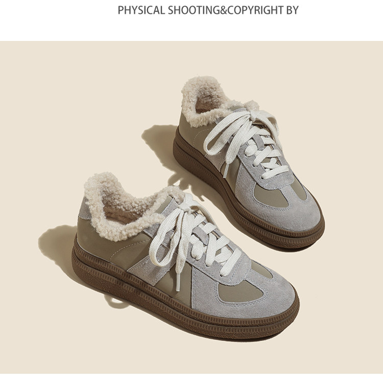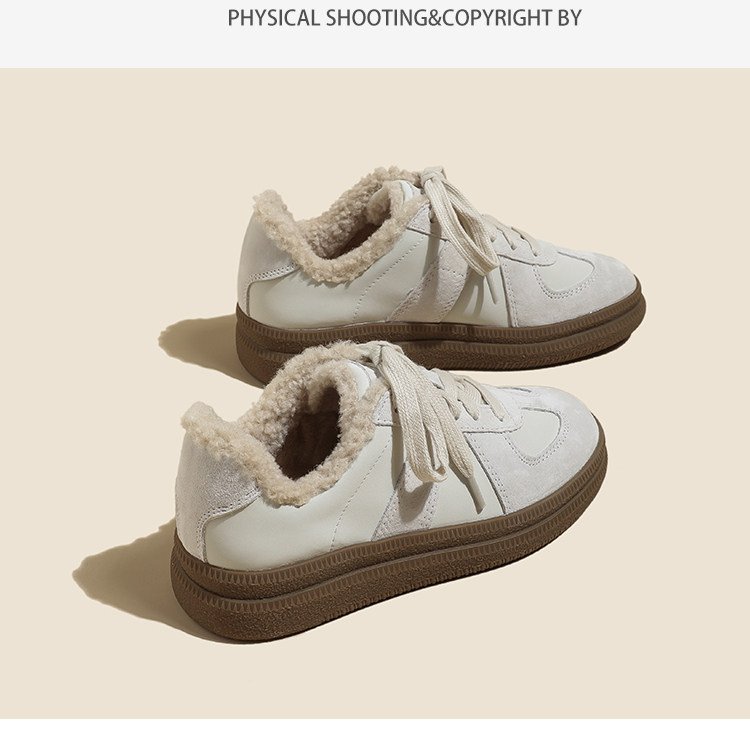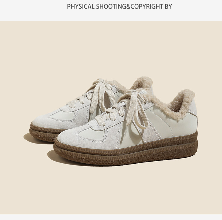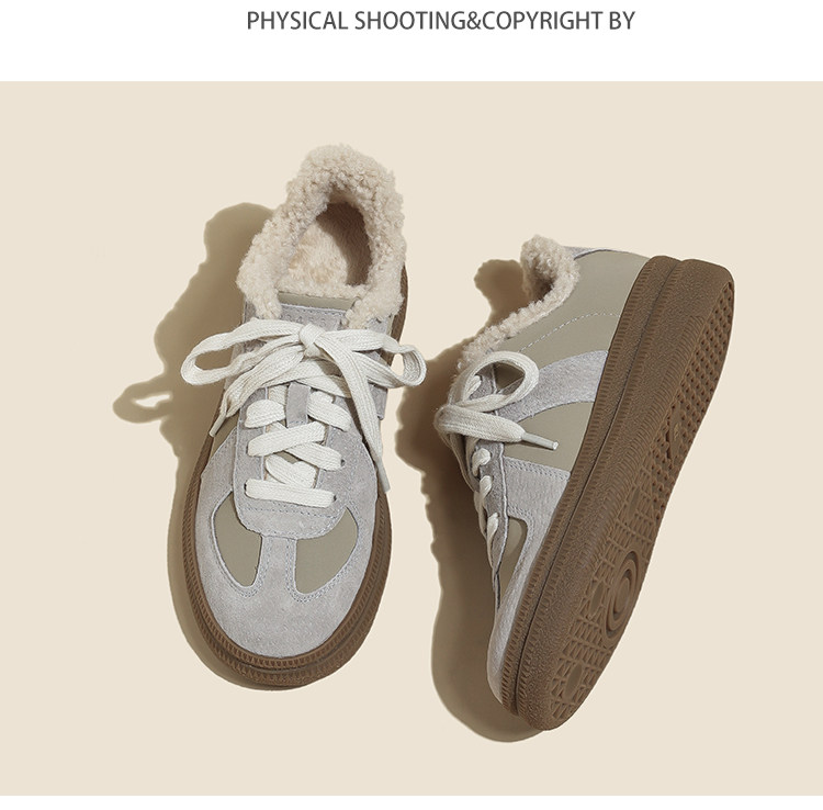 Hong Kong Retro Wool Warm Fleece-Lined German Training Shoes for Women 2025 Autumn and Winter New Sports Casual Genuine Leather Sneakers