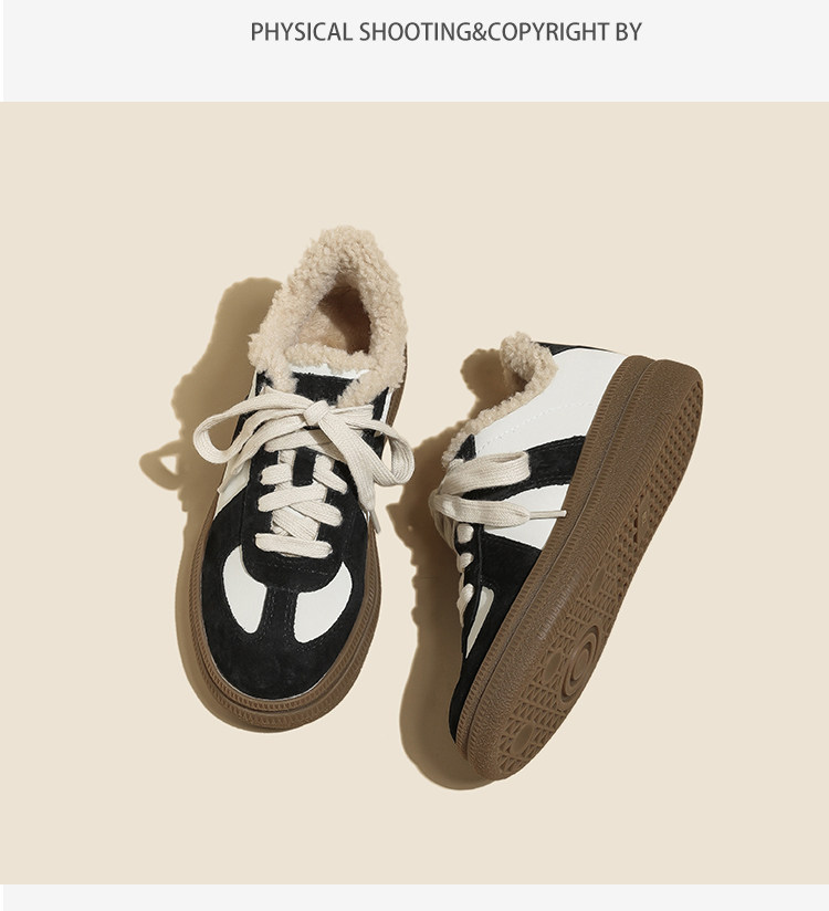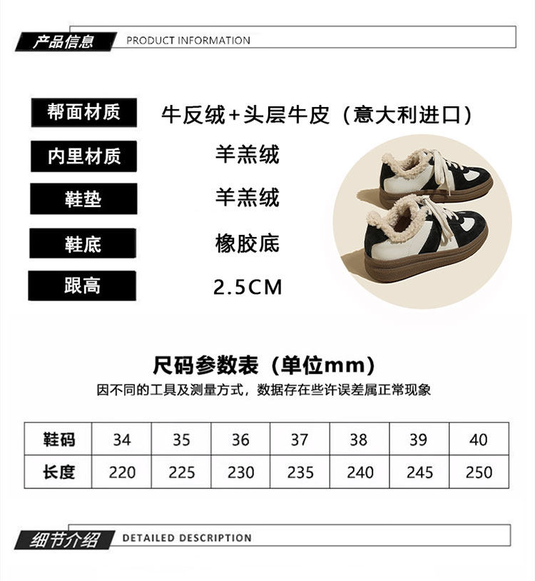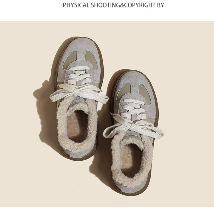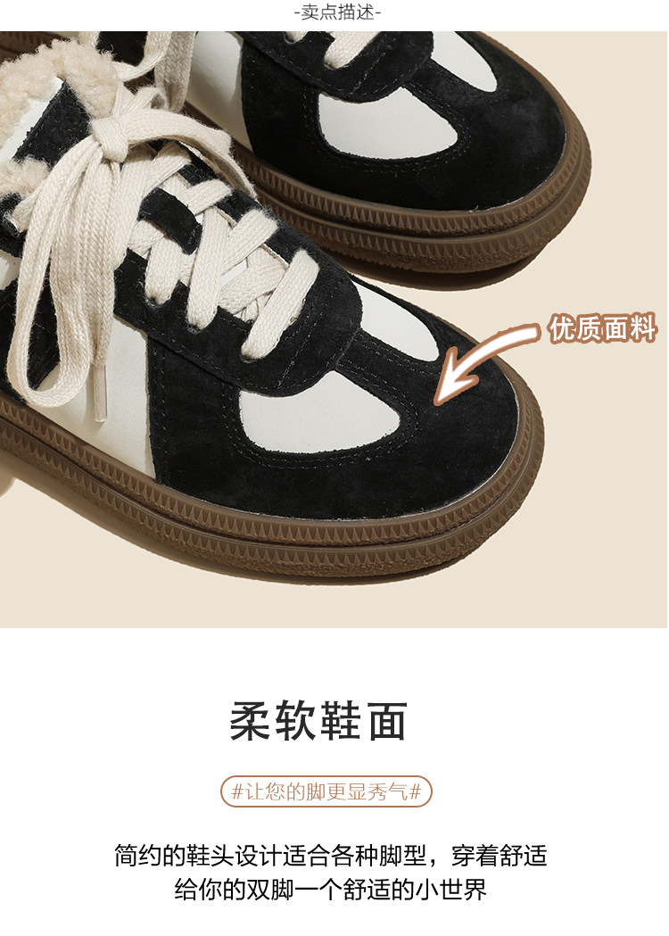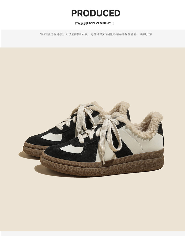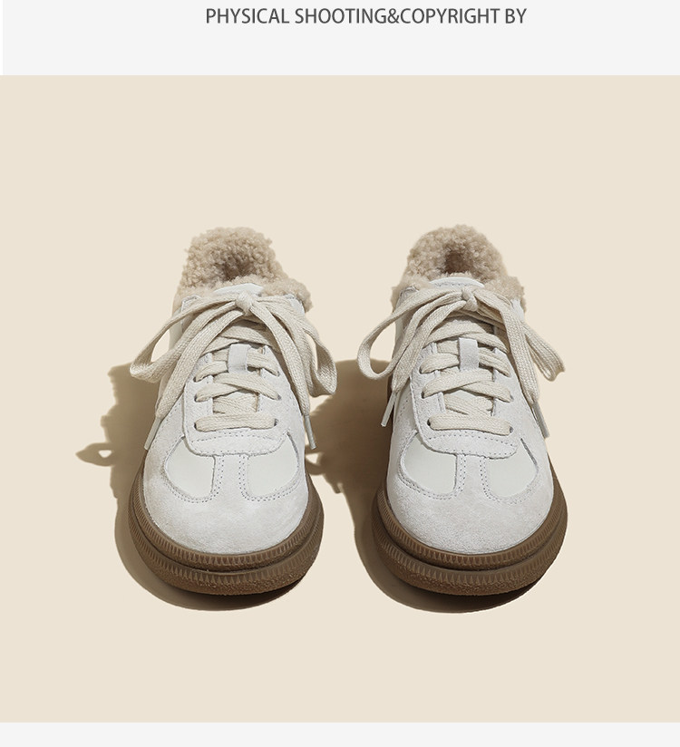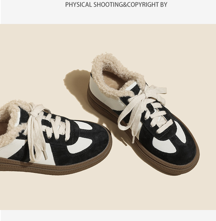 Hong Kong Retro Wool Warm Fleece-Lined German Training Shoes for Women 2025 Autumn and Winter New Sports Casual Genuine Leather Sneakers