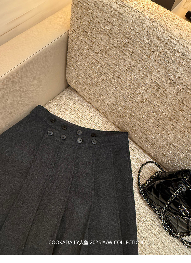 Cookadaily Mermaid Wool Pleated Two-Way Design Stylish and Elegant Commuter Mid-Length Skirt Pants