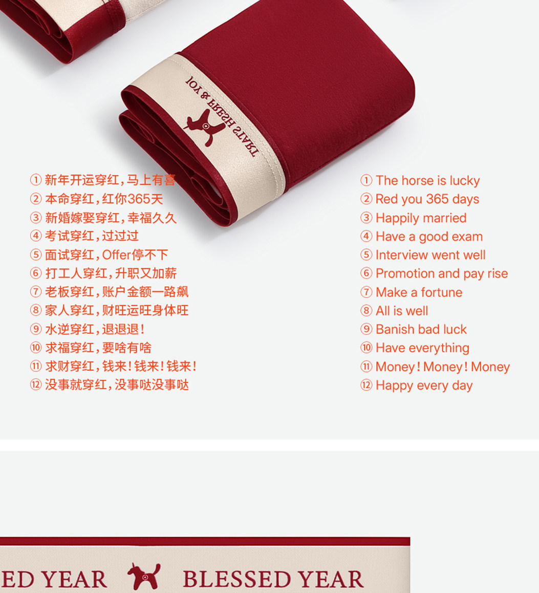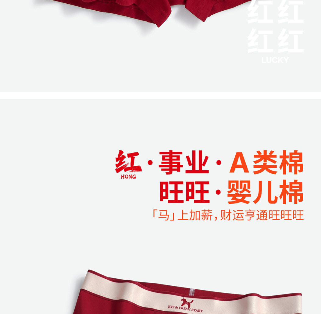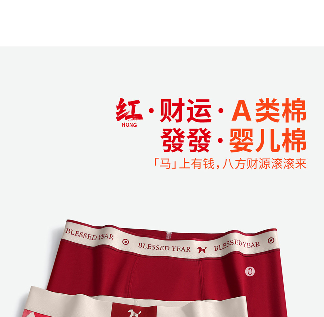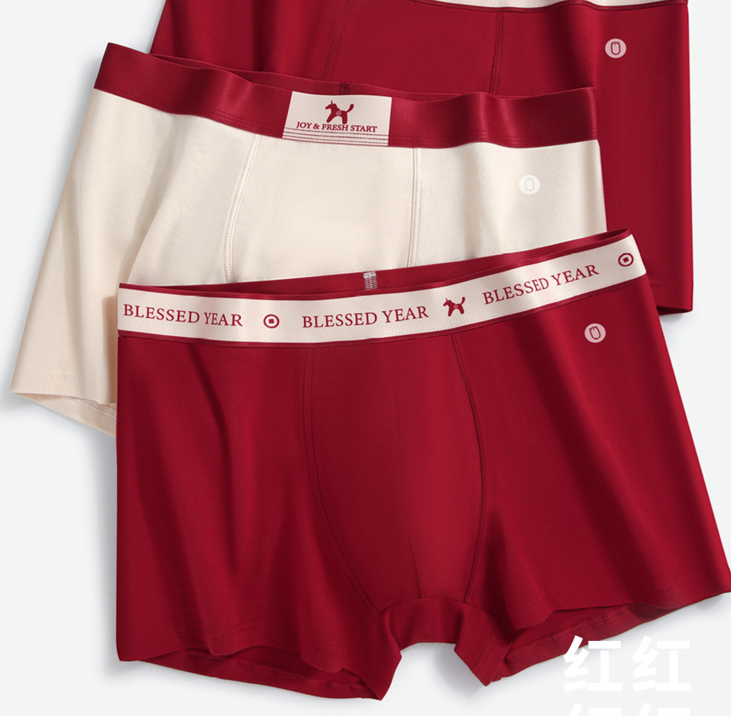 Men's Red Underwear with Antibacterial Cotton Crotch, A-Class, Zodiac Year Set, New Boxer Shorts for Men