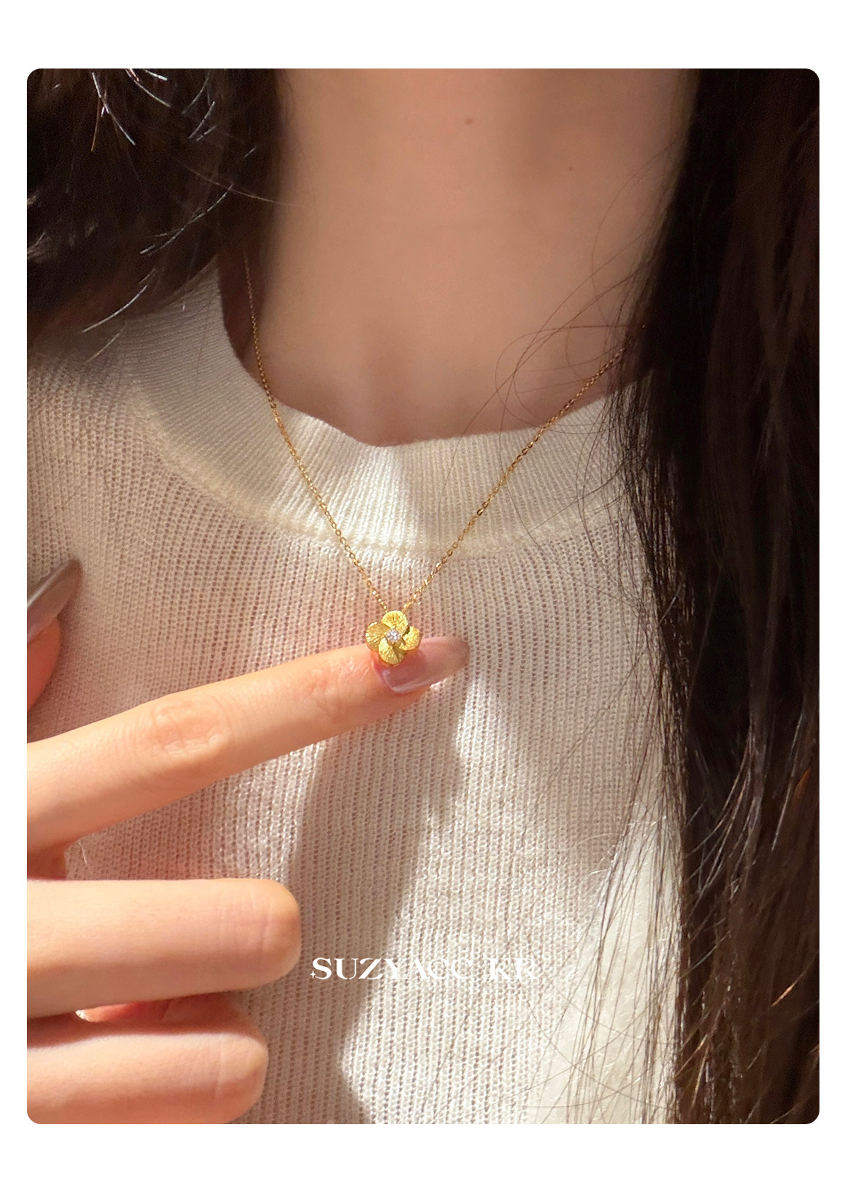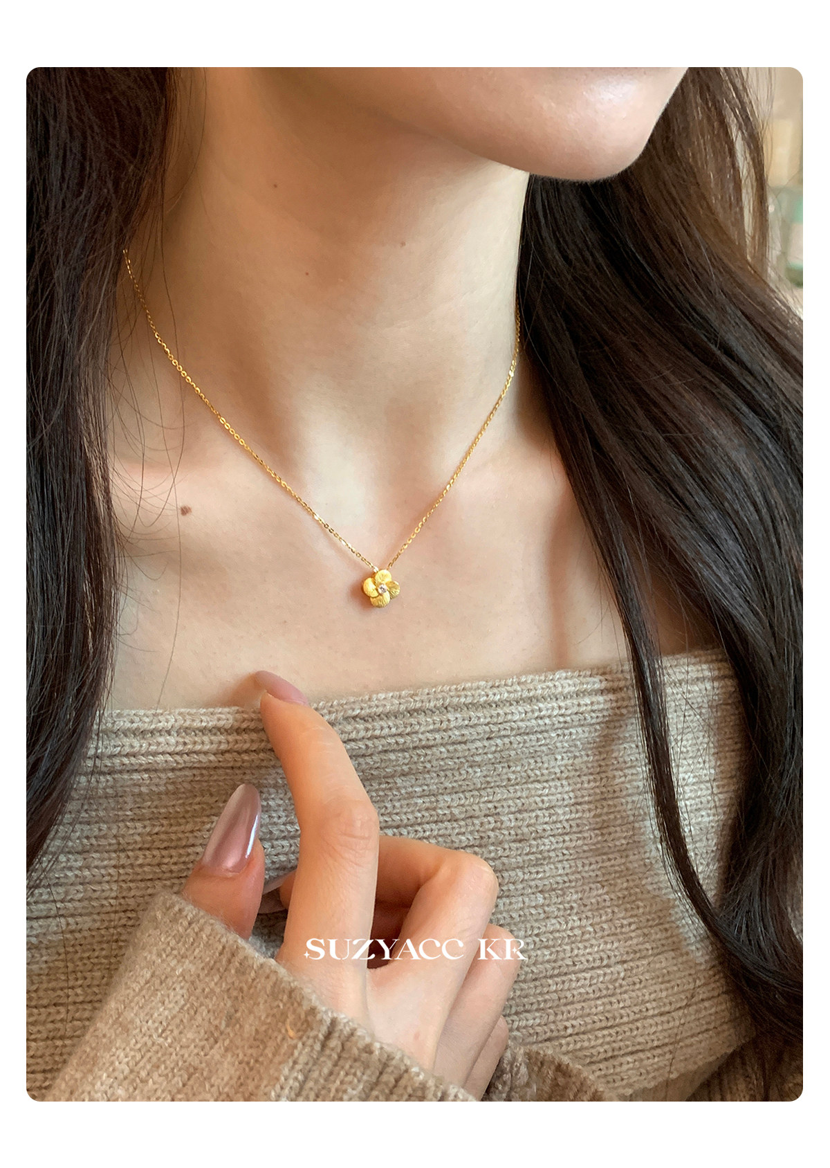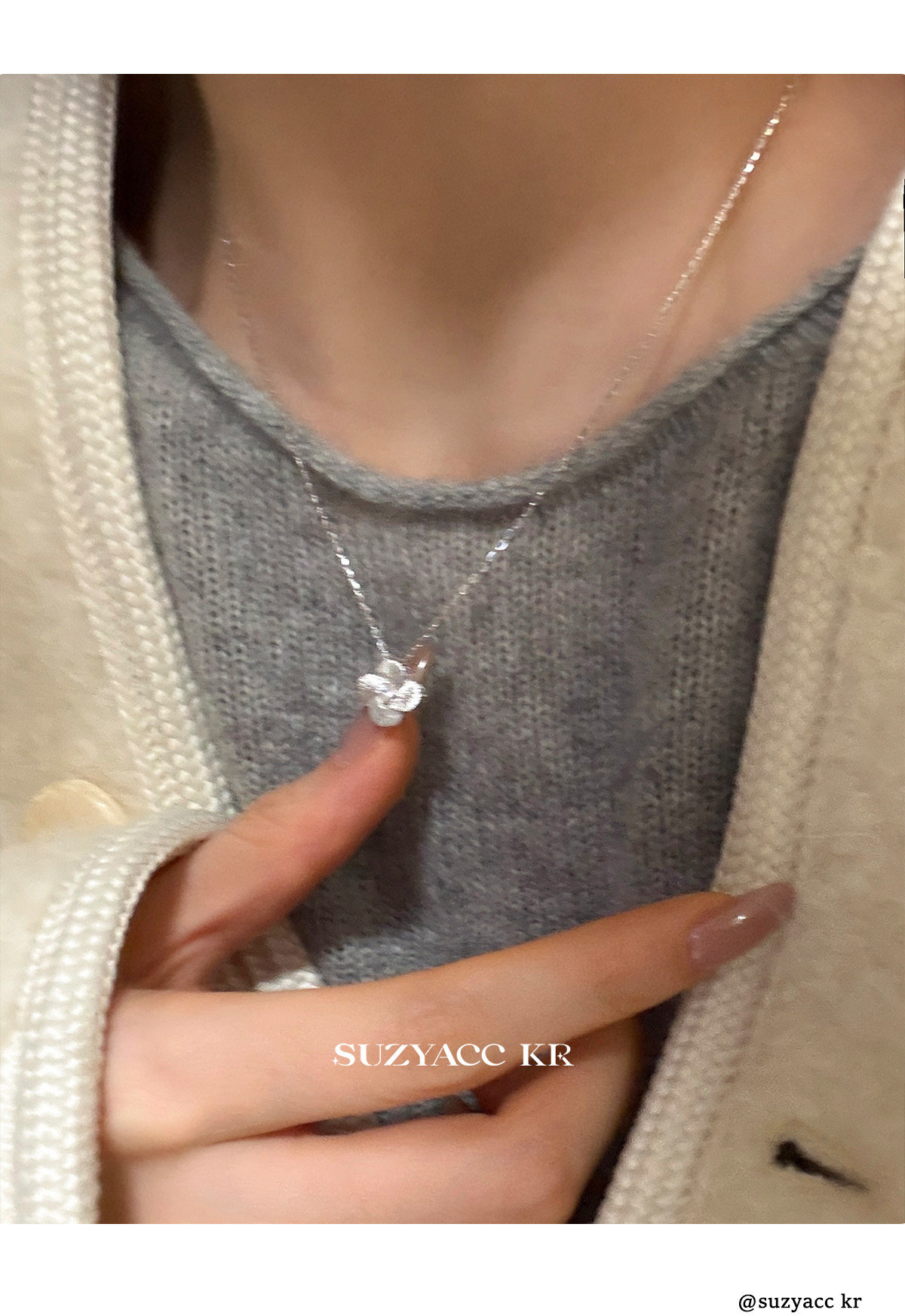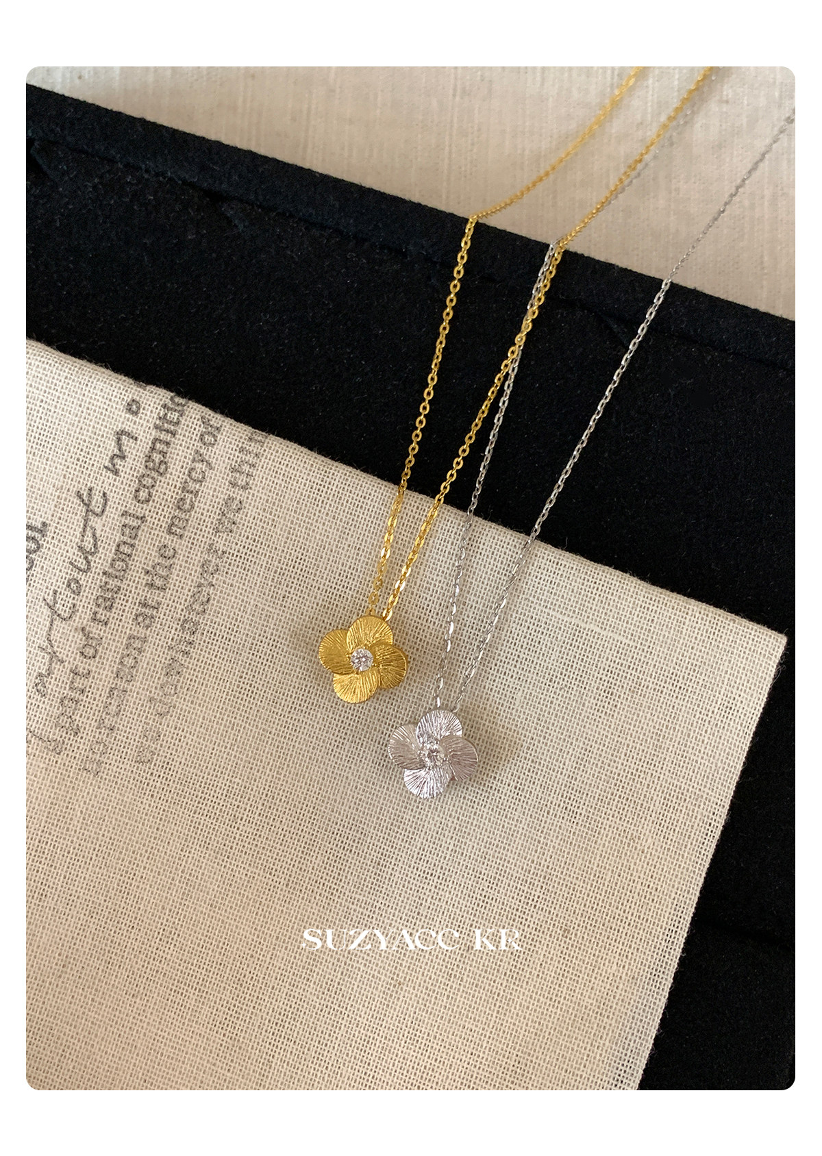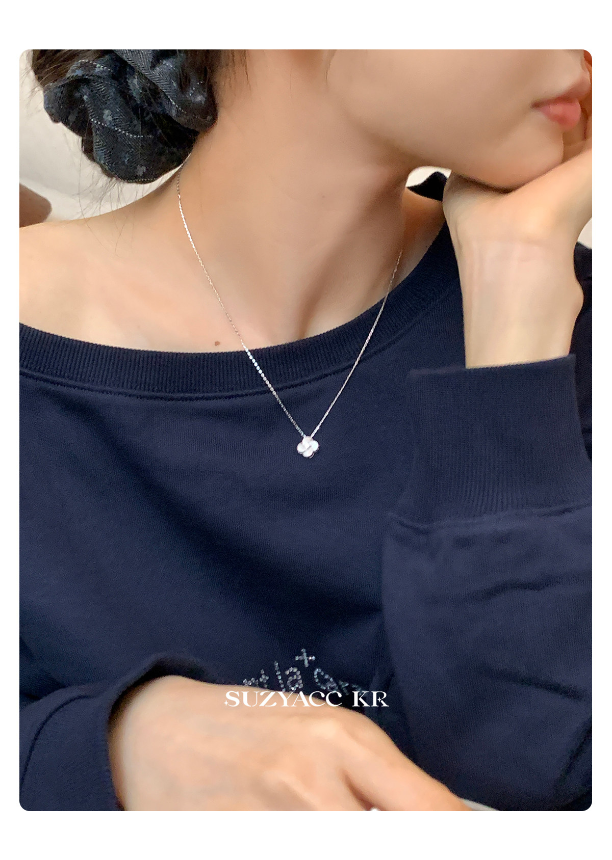 Suzyacc Kr Exquisite Pure Silver Brushed Four-Leaf Clover Necklace, Simple and Niche Design, Stackable Clavicle Chain Necklace
