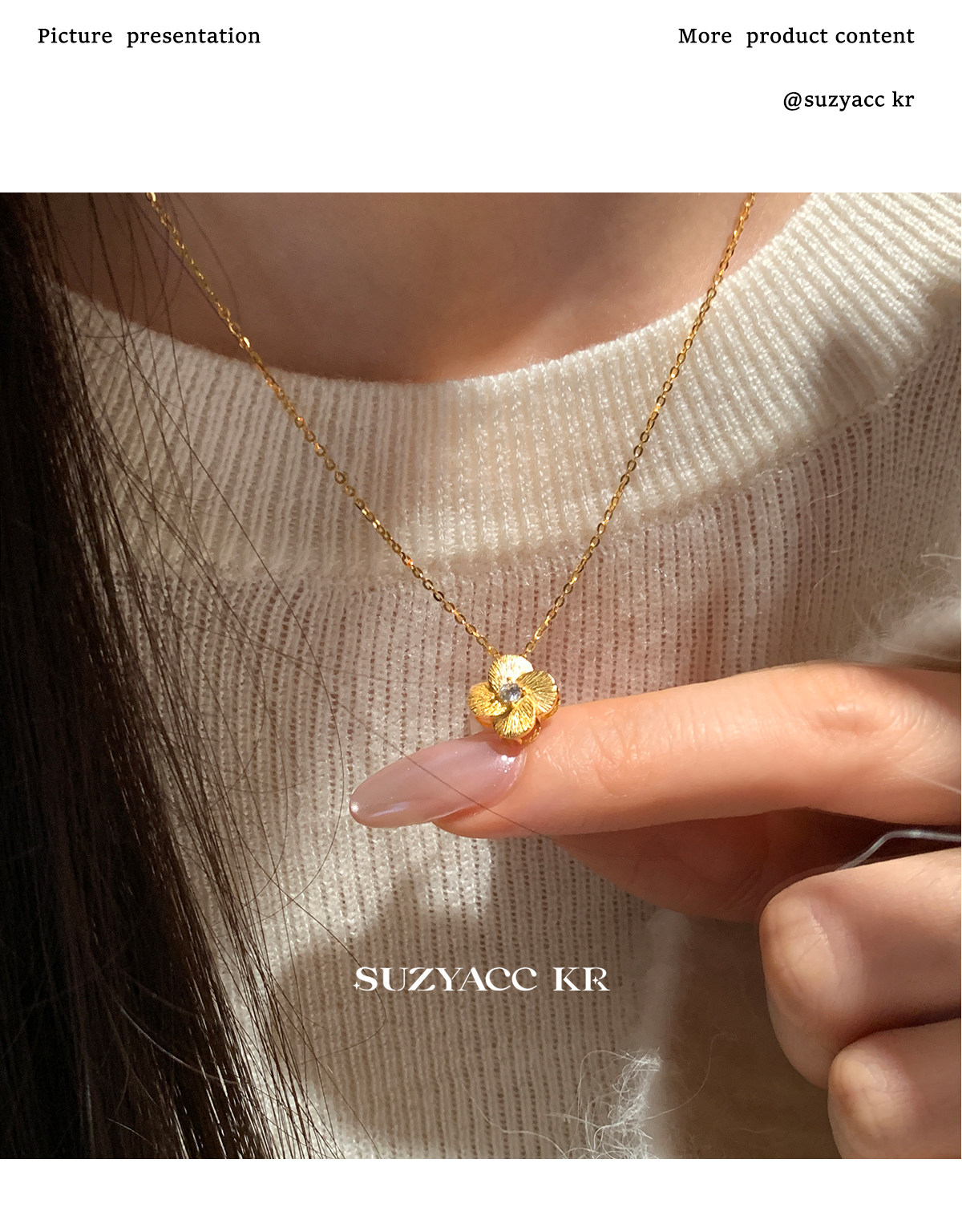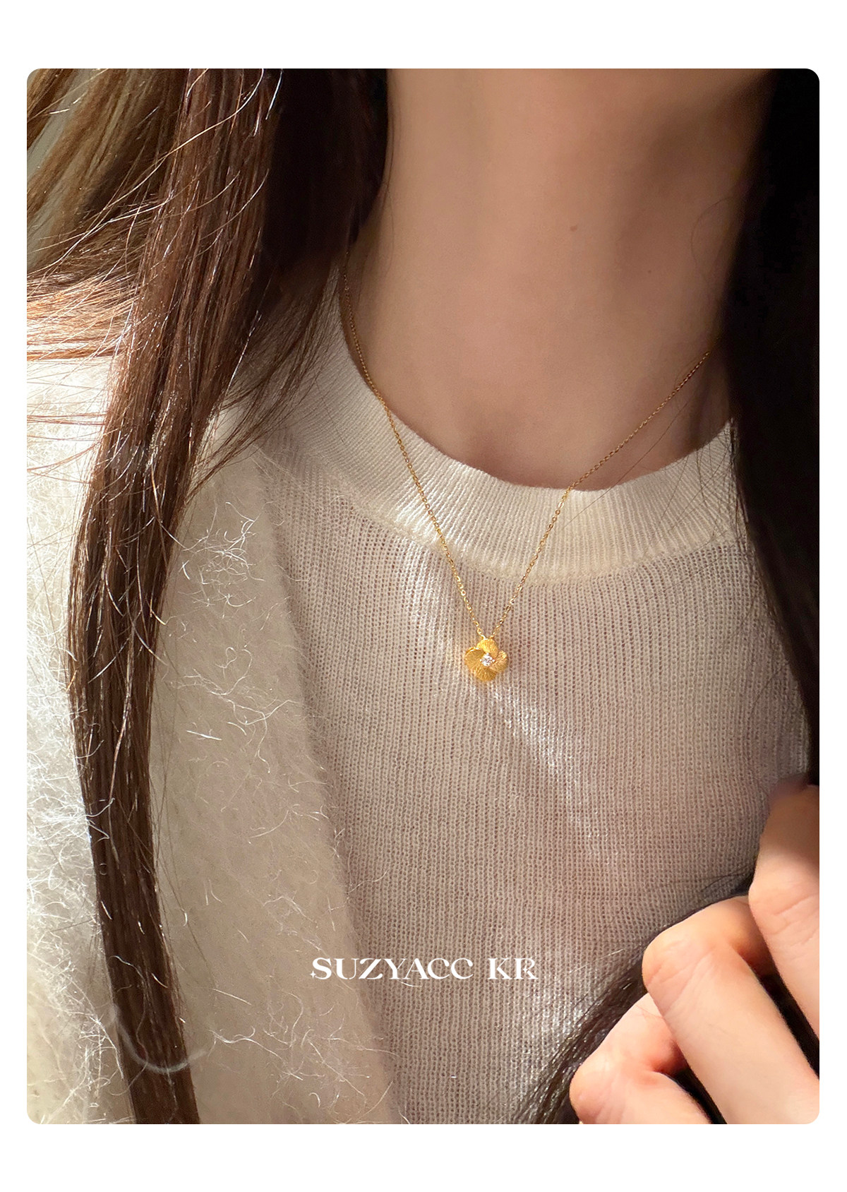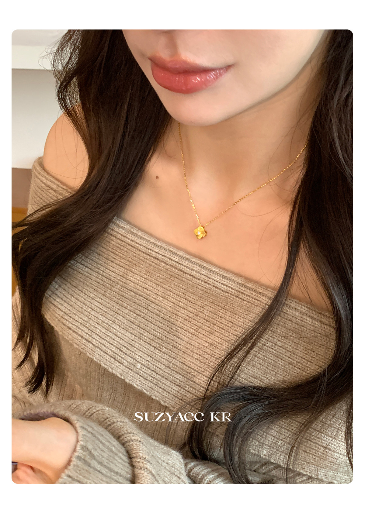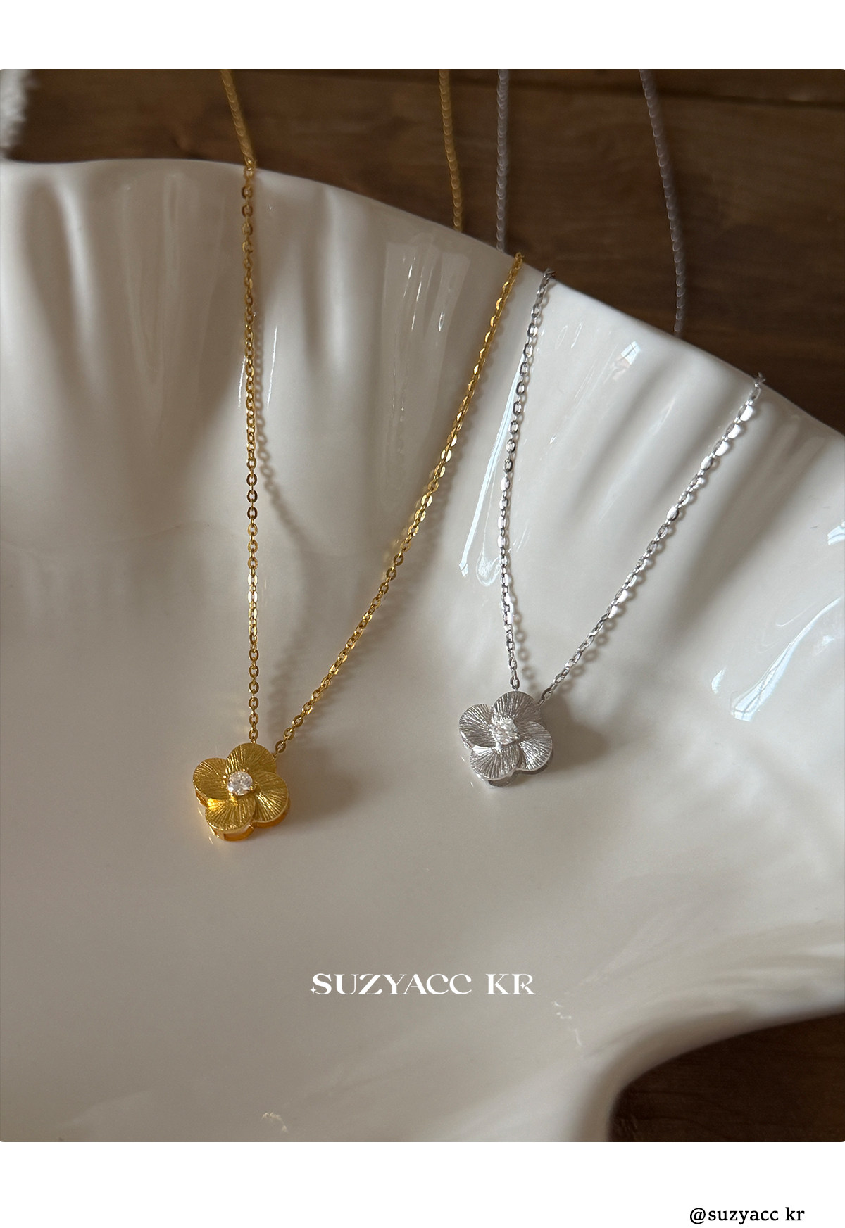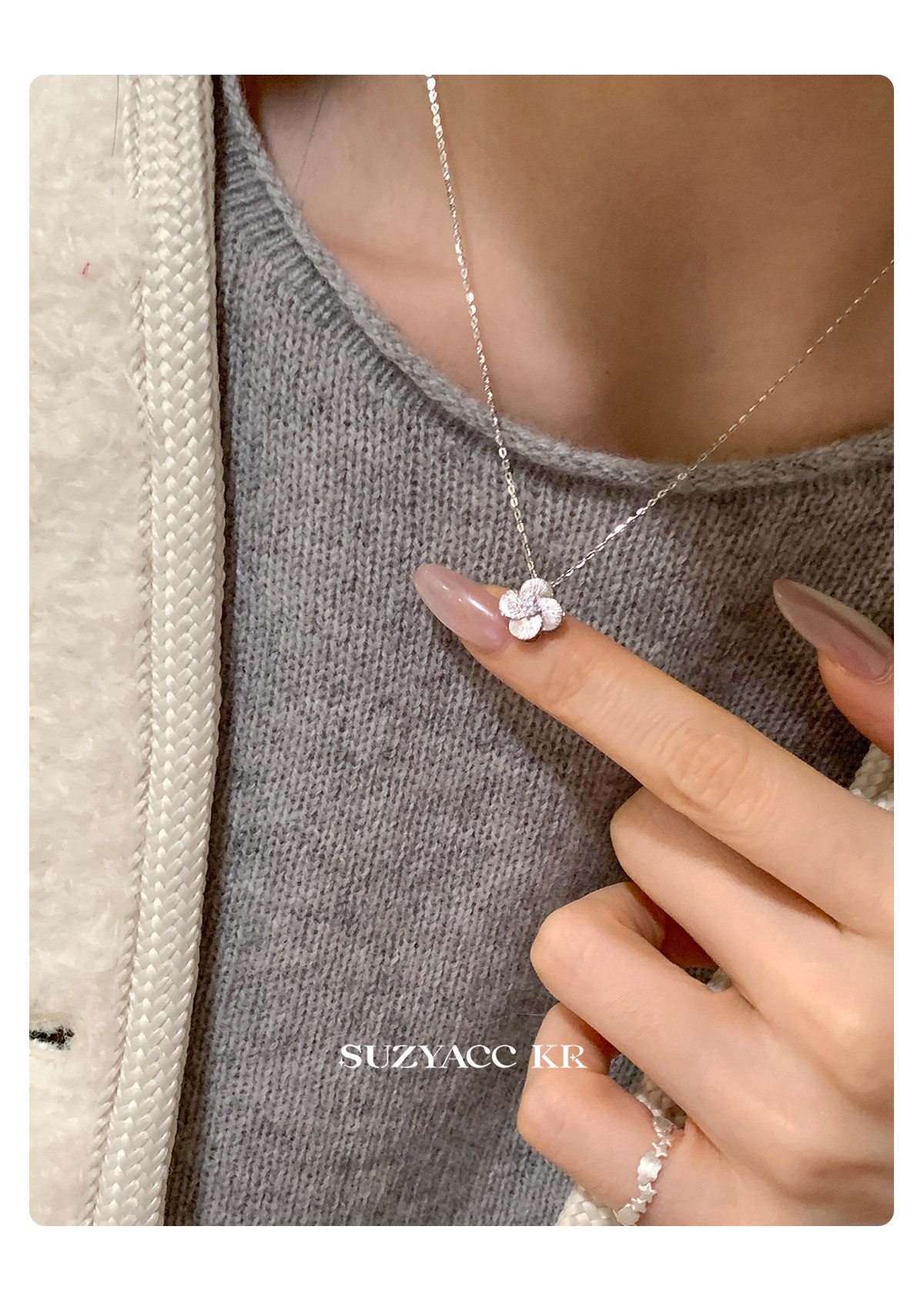 Suzyacc Kr Exquisite Pure Silver Brushed Four-Leaf Clover Necklace, Simple and Niche Design, Stackable Clavicle Chain Necklace