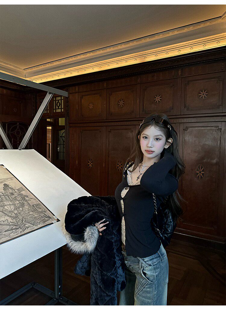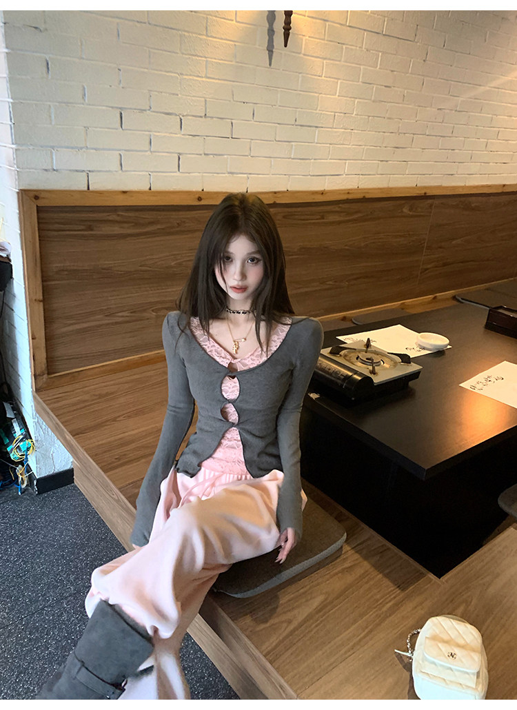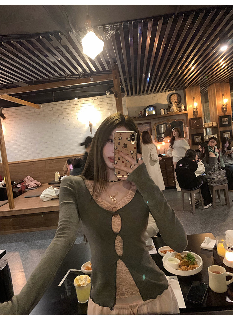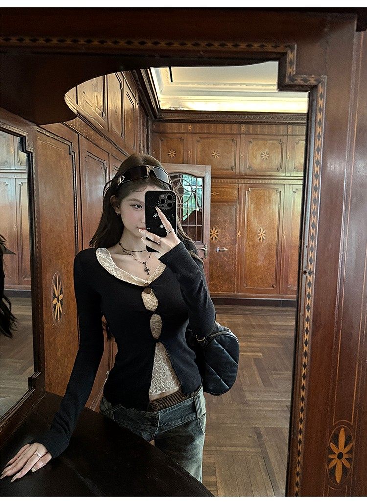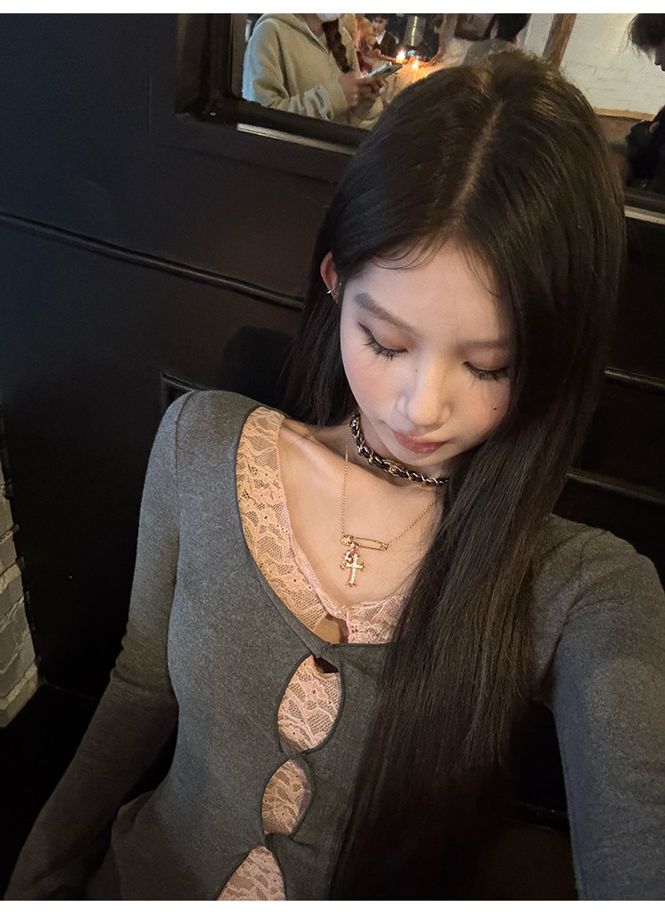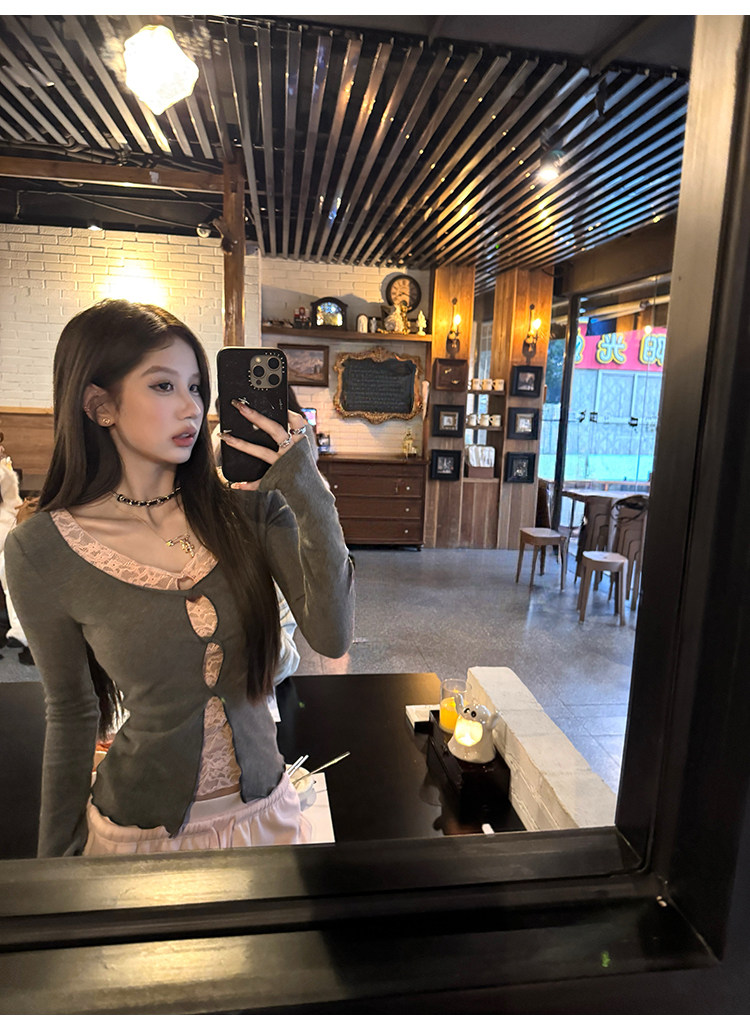 蕾丝拼接磨毛针织~嗲乖又千金范