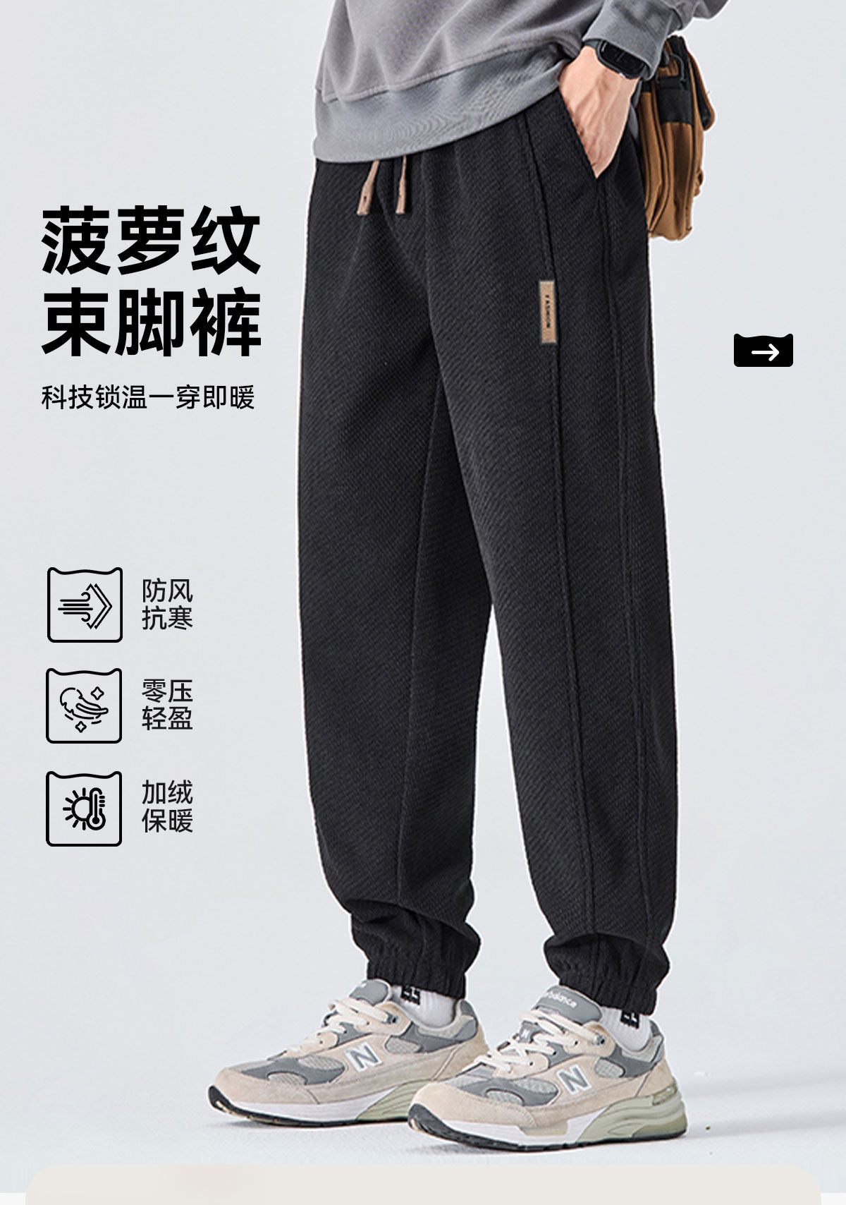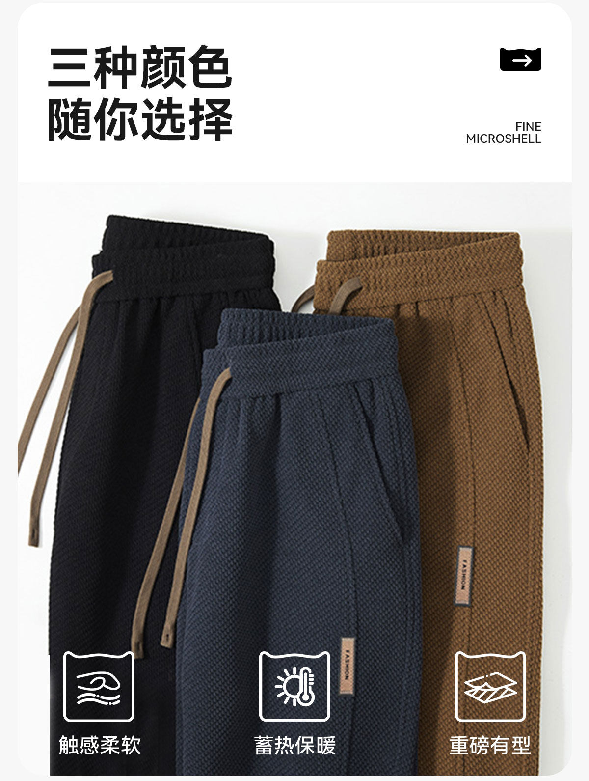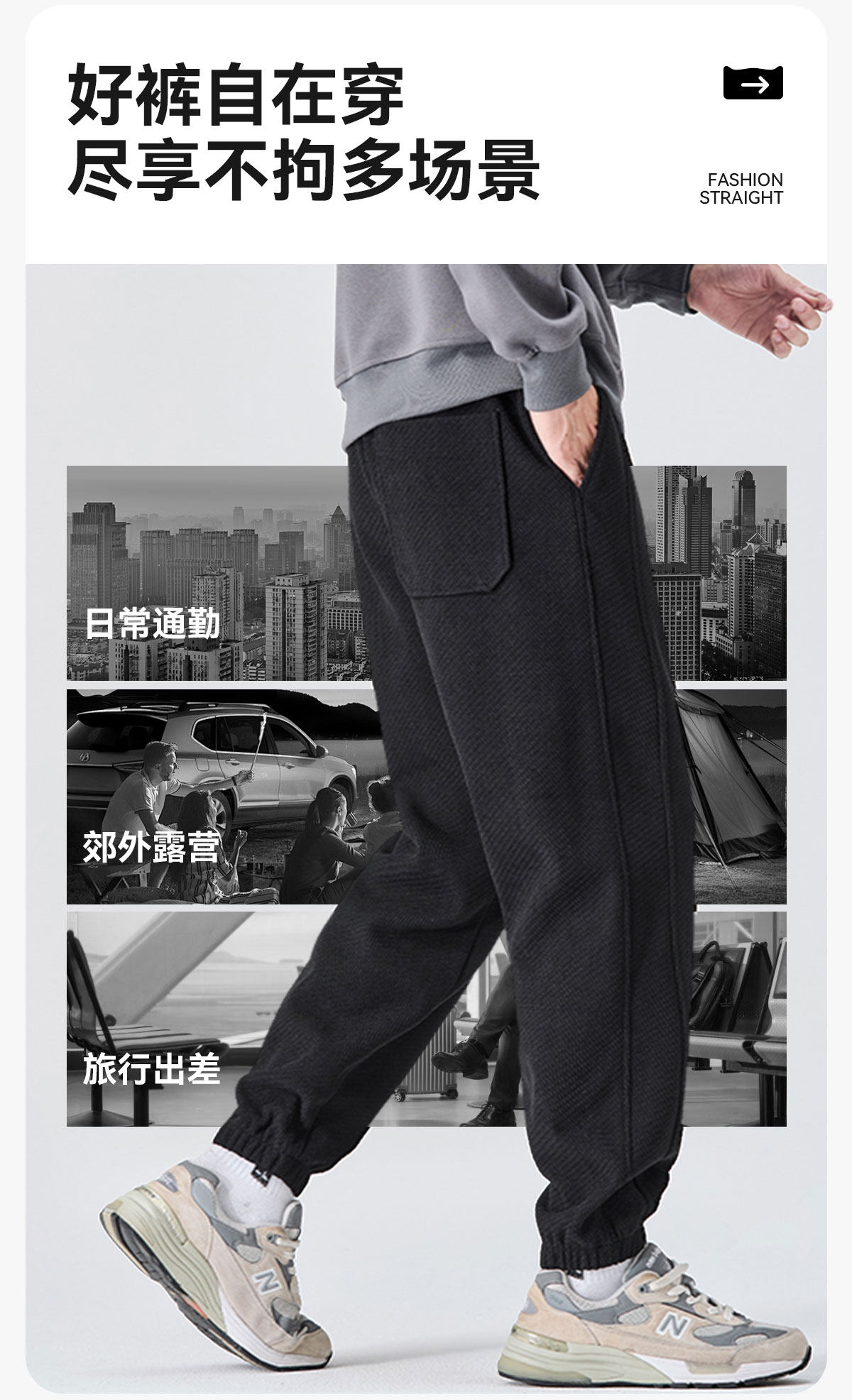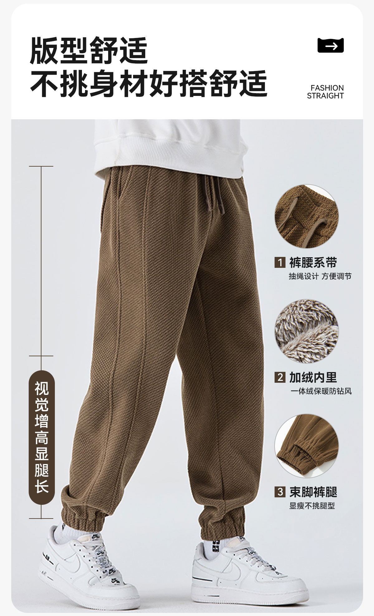 Men's Fleece-Lined Thick Sweatpants for Autumn and Winter, Loose-Fitting Sports Pants, Thermal Insulation, American-Style Fleece Casual Pants for Men
