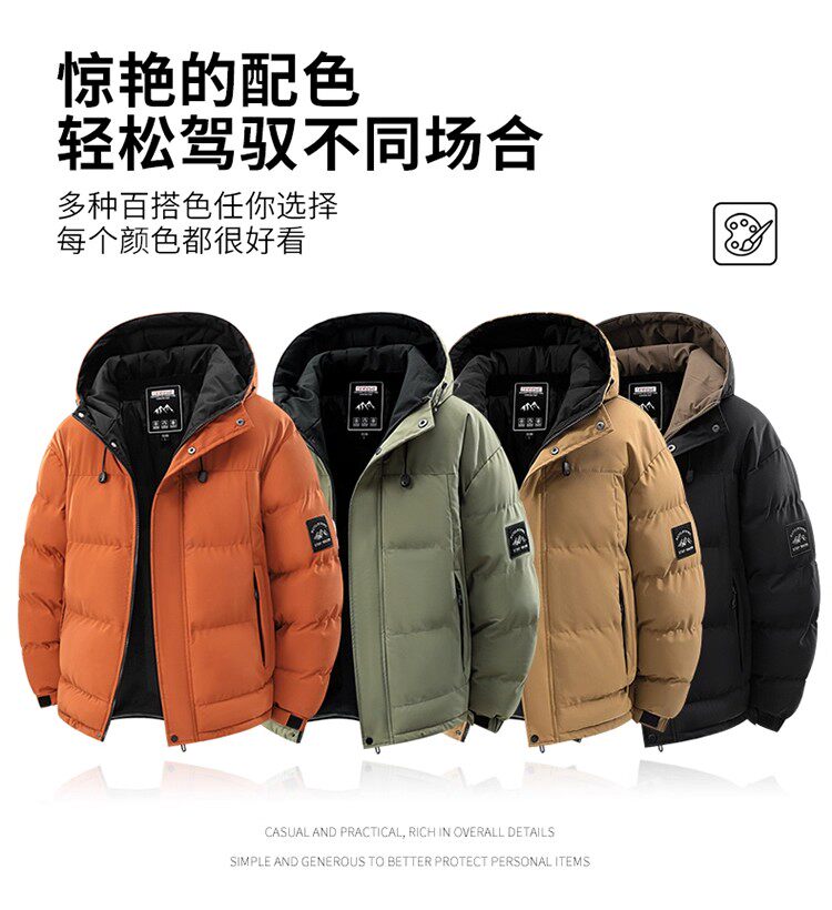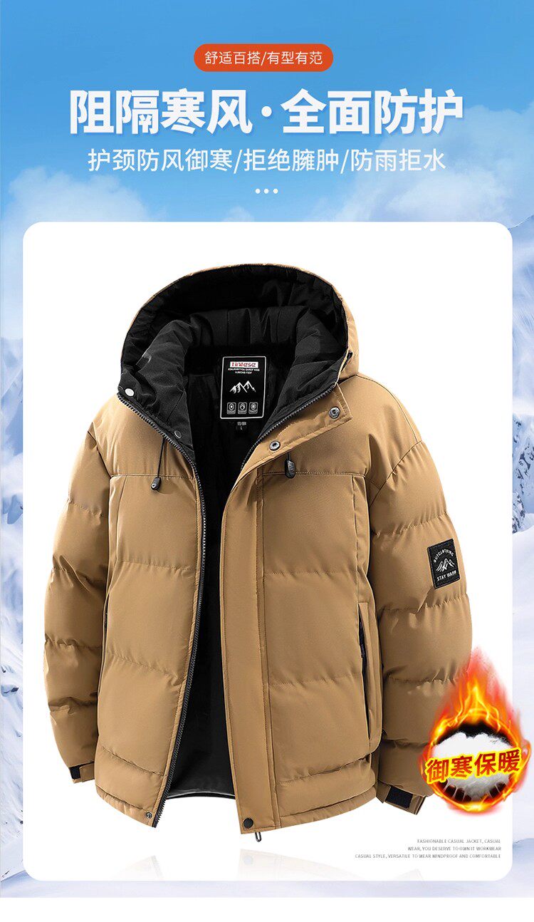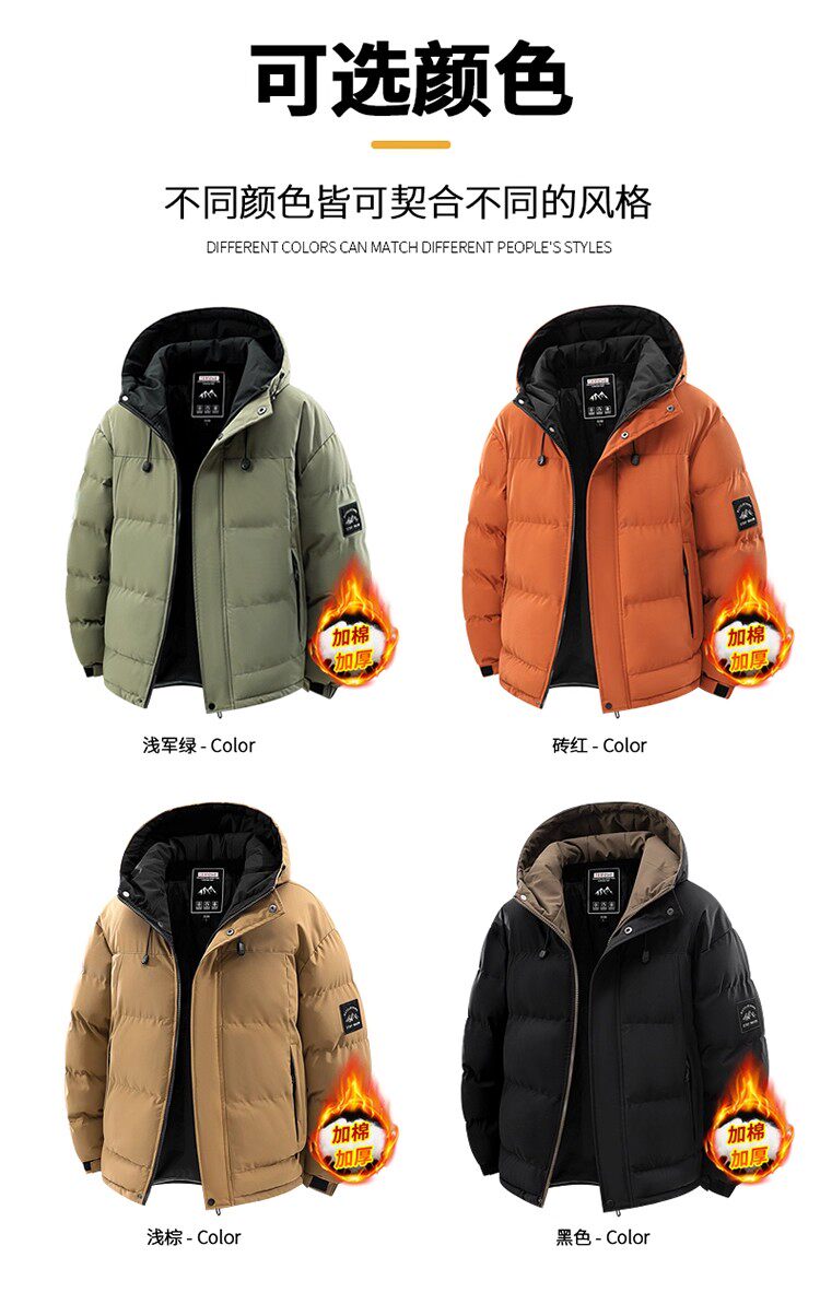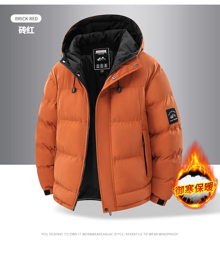 Woodpecker Winter down Cotton Jacket Men's Coat Trendy Fashion Hooded Thickened Cotton Clothing Warm Cotton Jacket for Young and Middle-Aged People