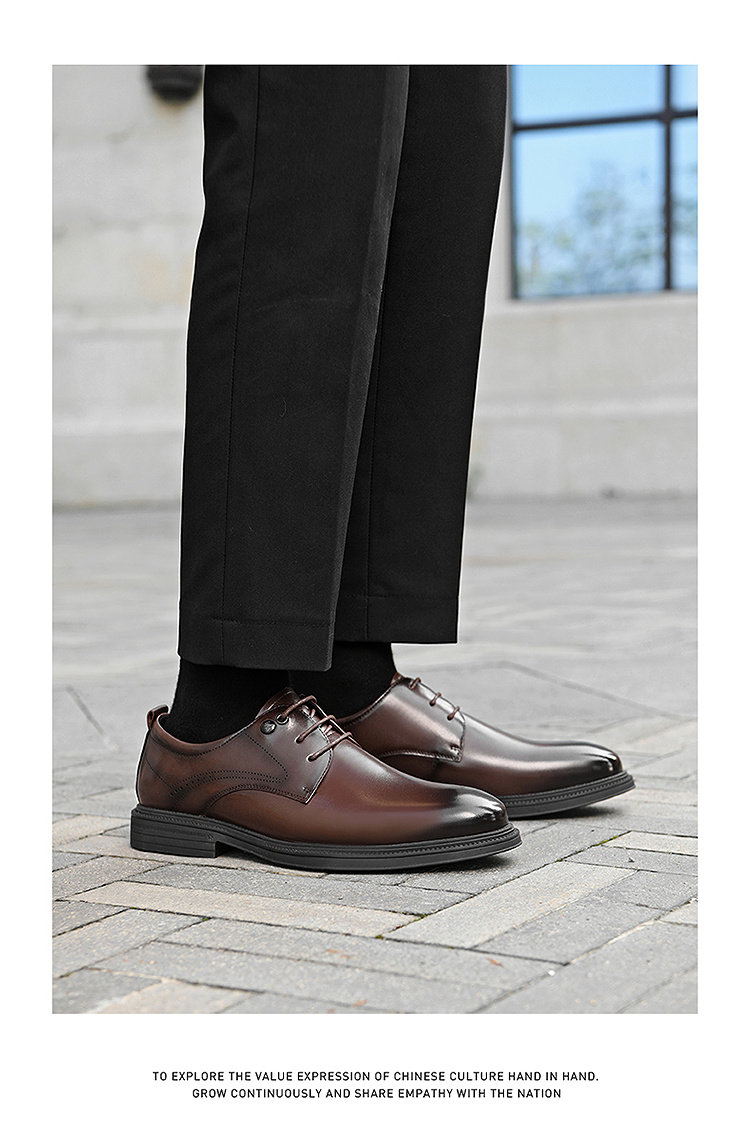 Hla/Hailan Home Men's Leather Shoes New Spring and Autumn Business Formal Genuine Leather Soft Sole Shoes Solid Color Derby Shoes