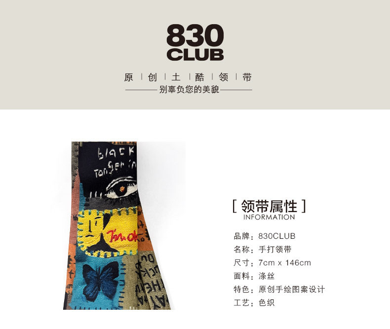 830 Original Tie Shirt for Men and Women, Personalized Hand-Tied, Niche Fashion, College Casual Accessories, Design Eye Collage