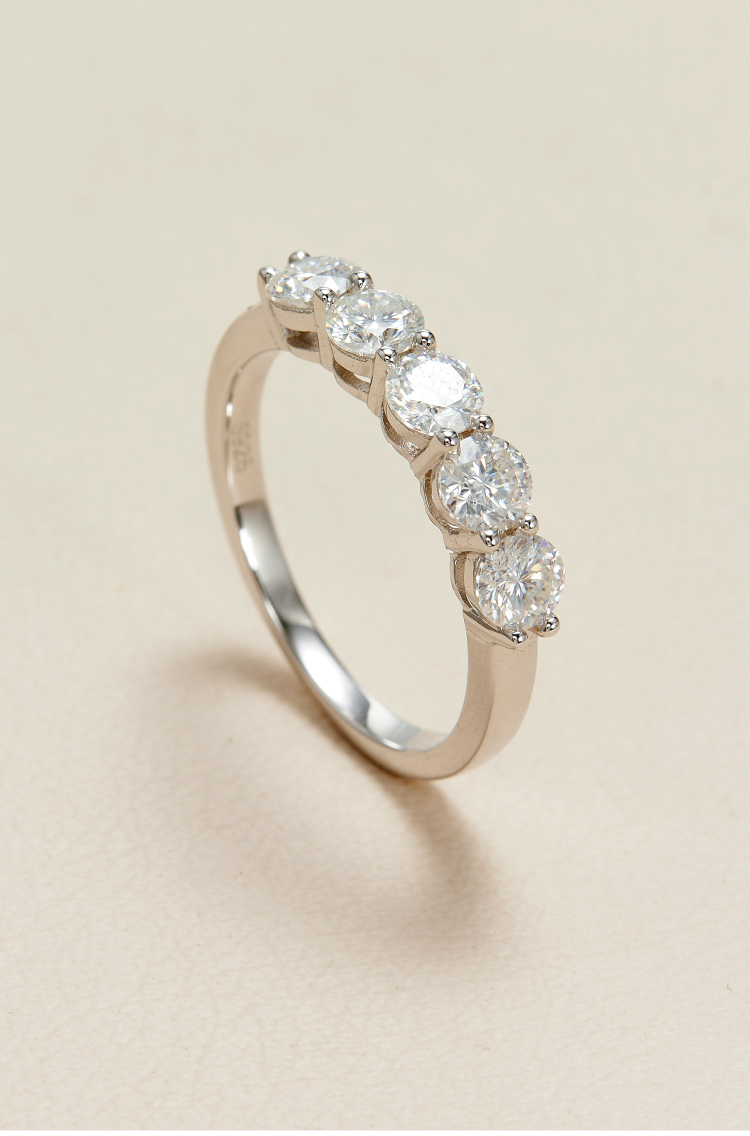 Ahchoo Quiet Luxury Five-Diamond Small Bubble Round Full Moissanite Thin Ring Simple High-End S925 Silver Ring Gift