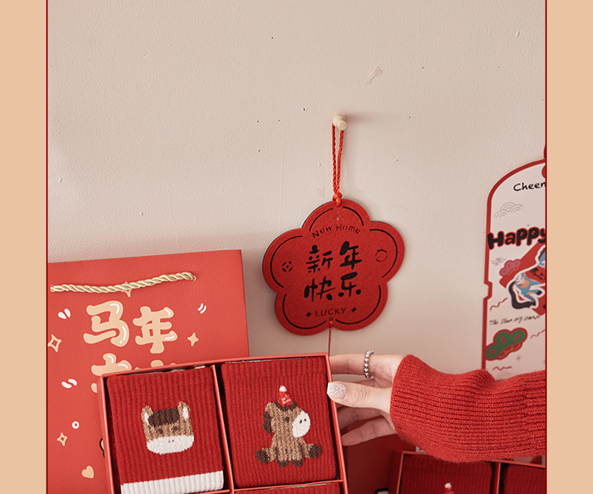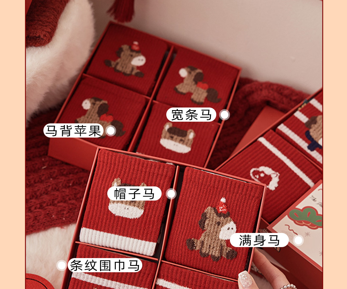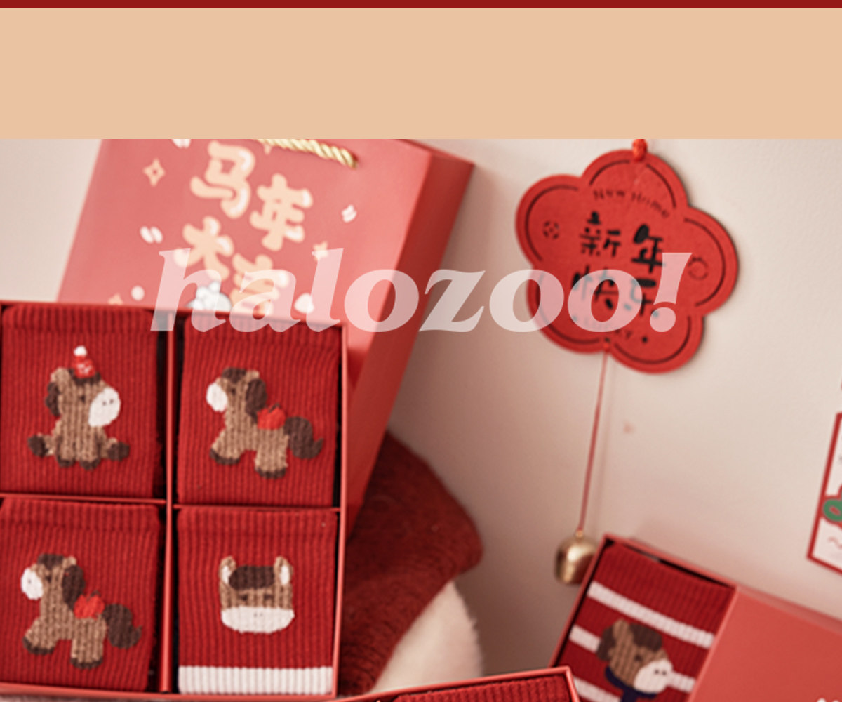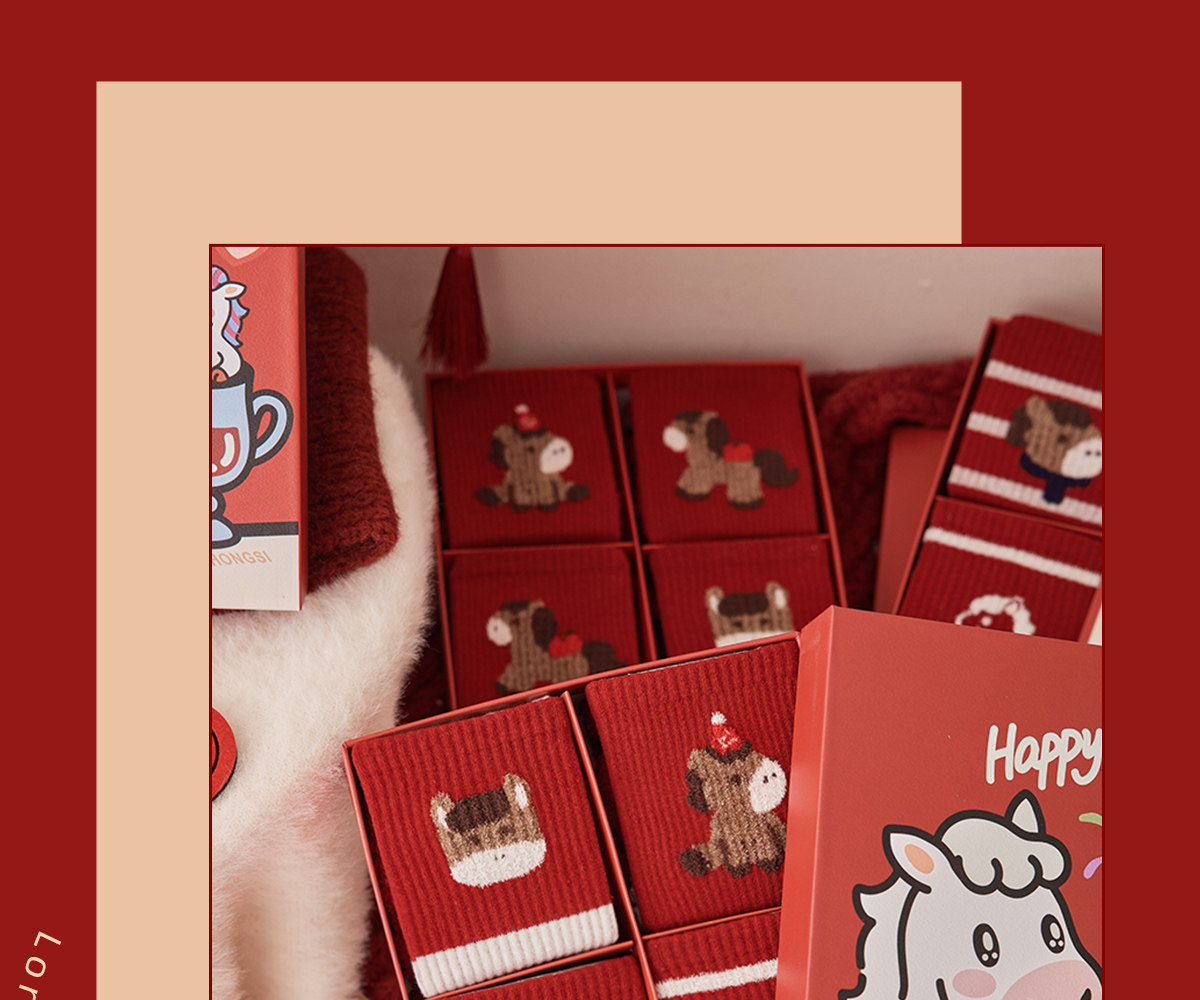 Year of the Horse Zodiac Year Socks for Women New Year Gift Box Red Pure Cotton 2026 Horse Zodiac Men's Couple Socks