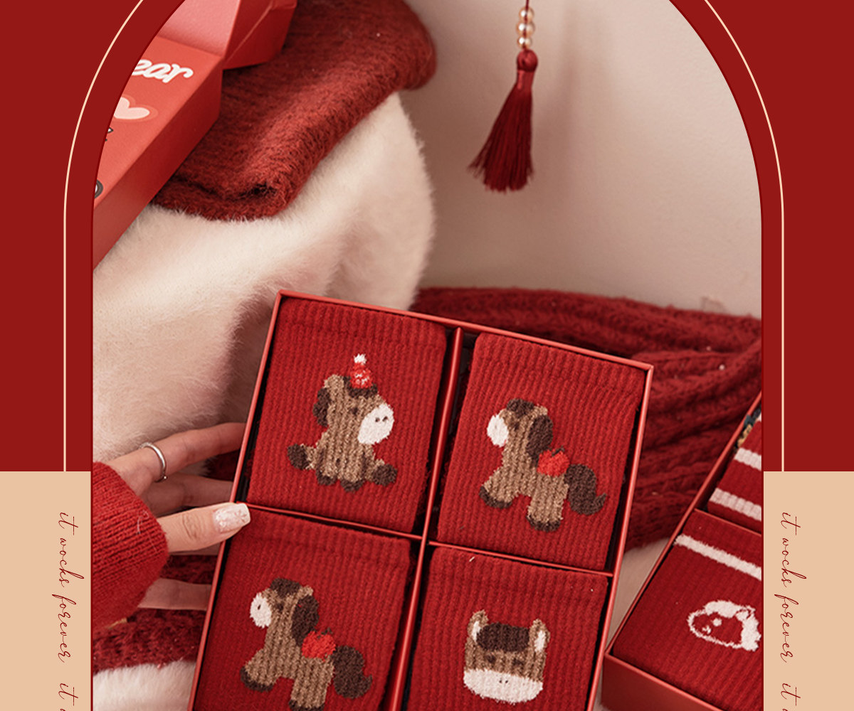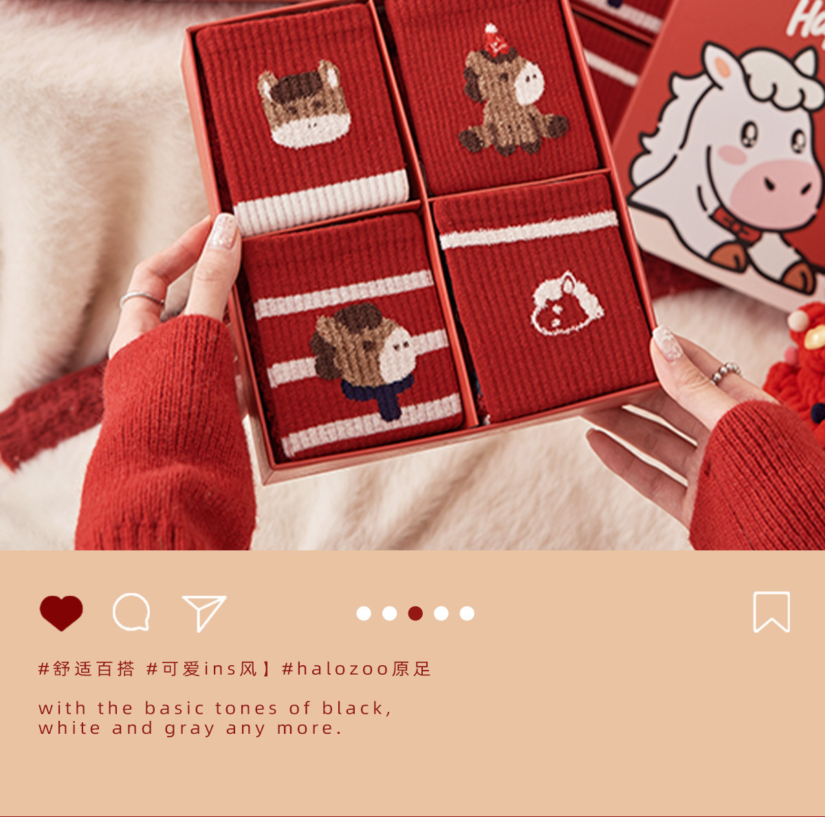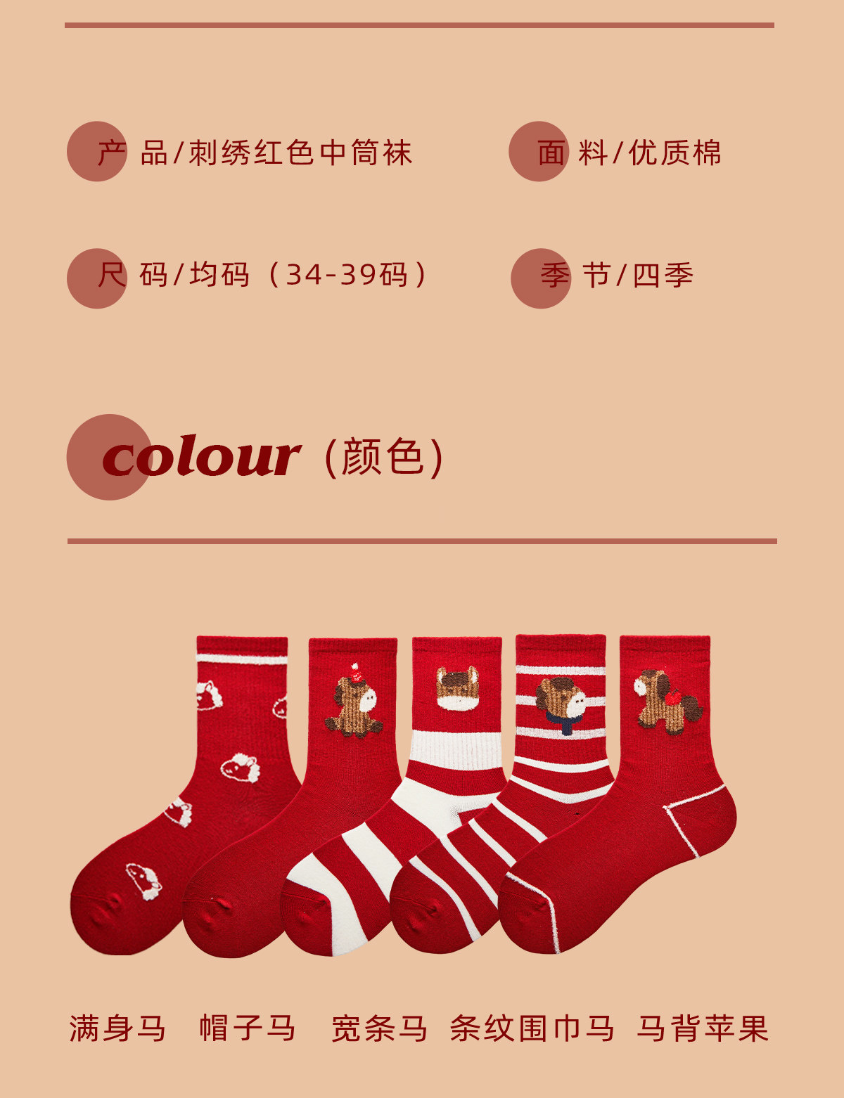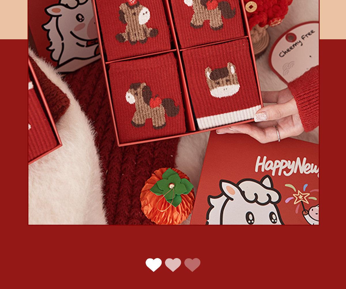 Year of the Horse Zodiac Year Socks for Women New Year Gift Box Red Pure Cotton 2026 Horse Zodiac Men's Couple Socks