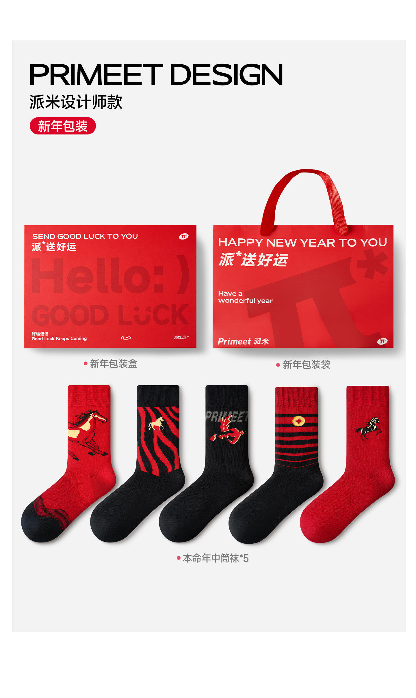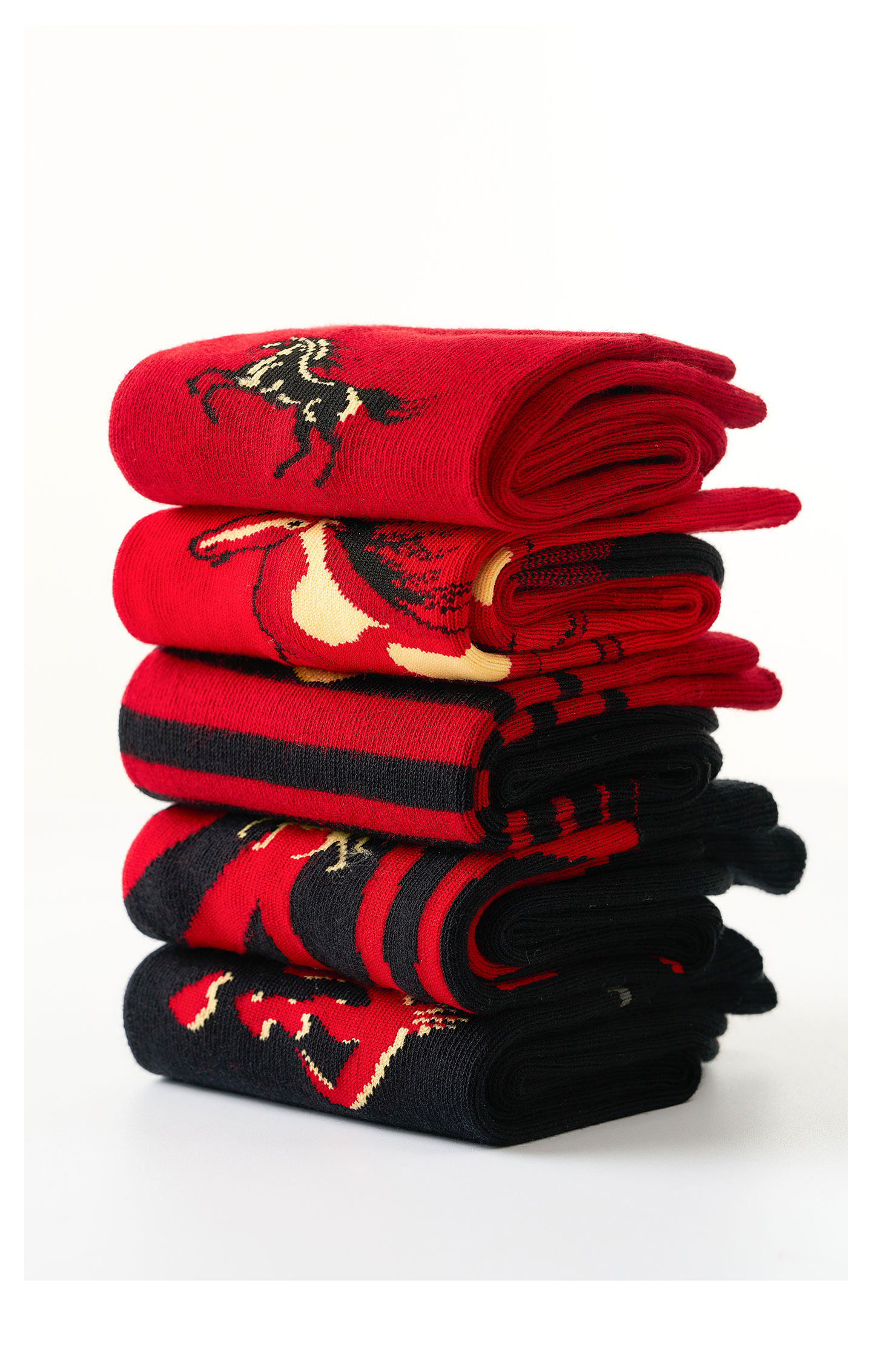 Paimi Year of the Horse Zodiac Year Socks for Men, Autumn and Winter Mid-Calf Socks, 2026 New Year Gift, Men's Red Cotton Socks Gift Box Set