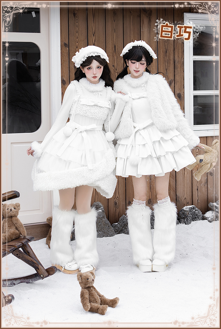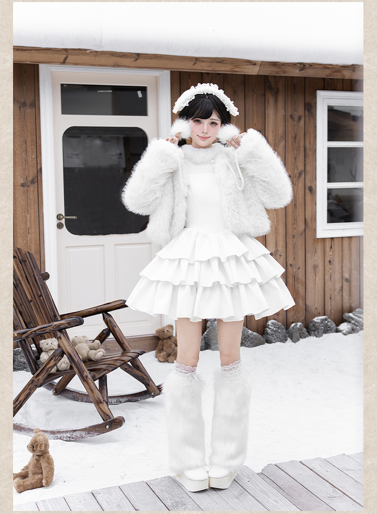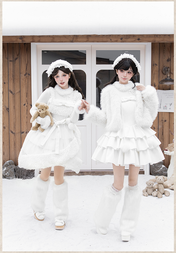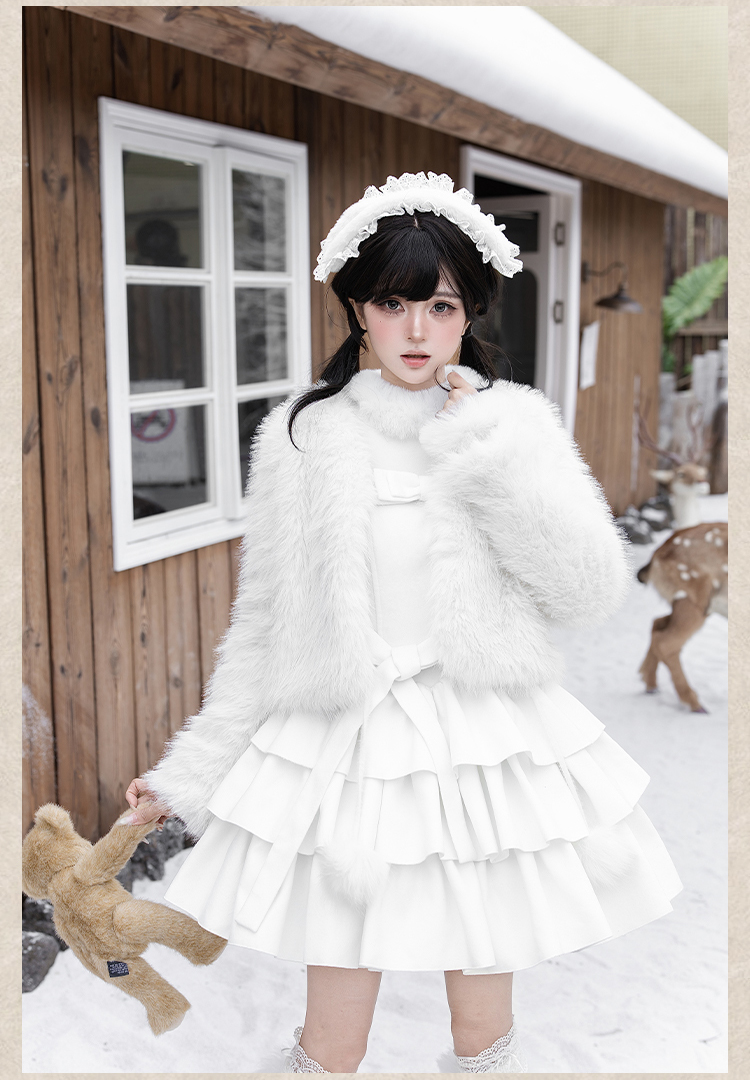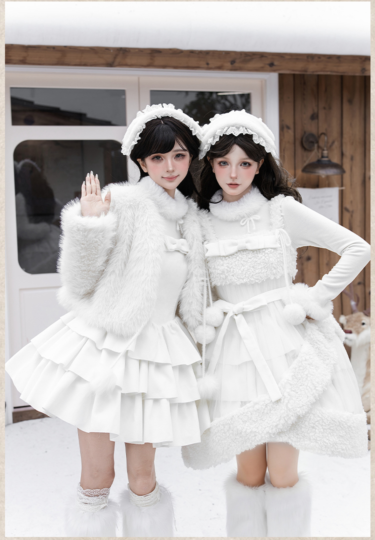 【Bai Qiao】Withpuji Original Design Plush Coat Three-Tiered Skirt Jsk Set Winter Lolita