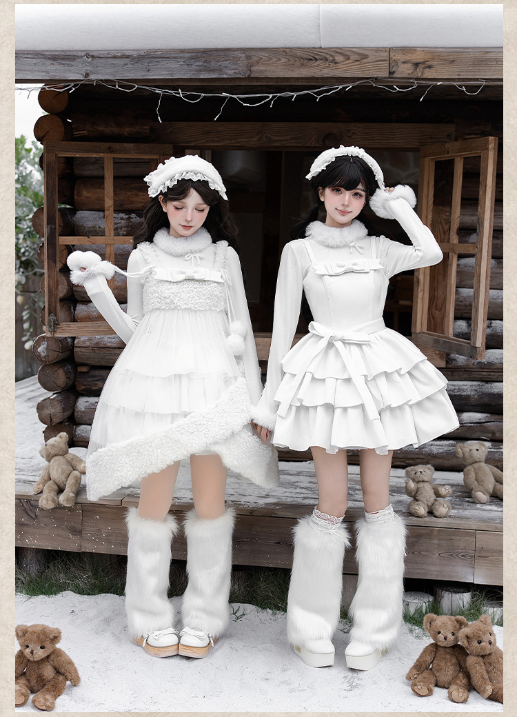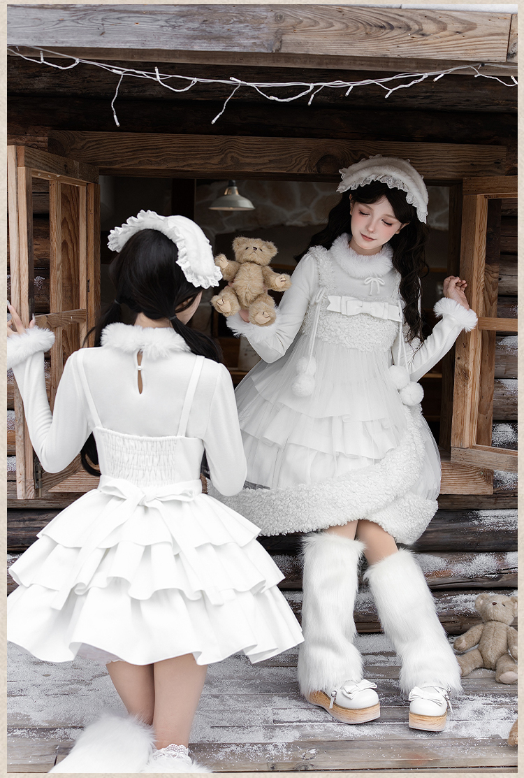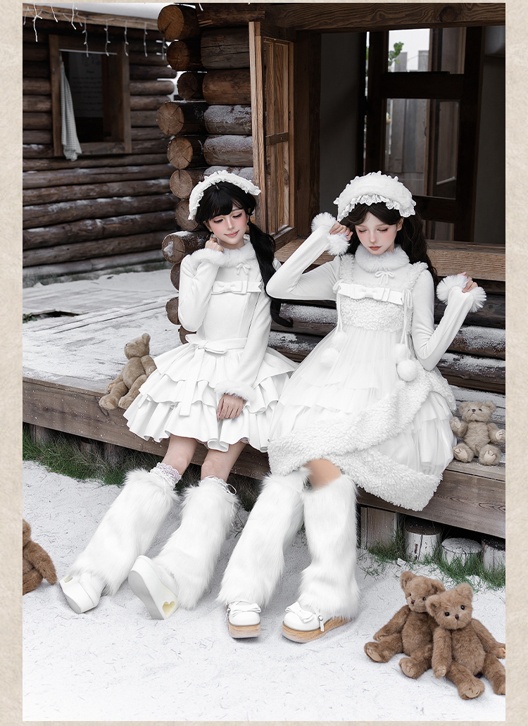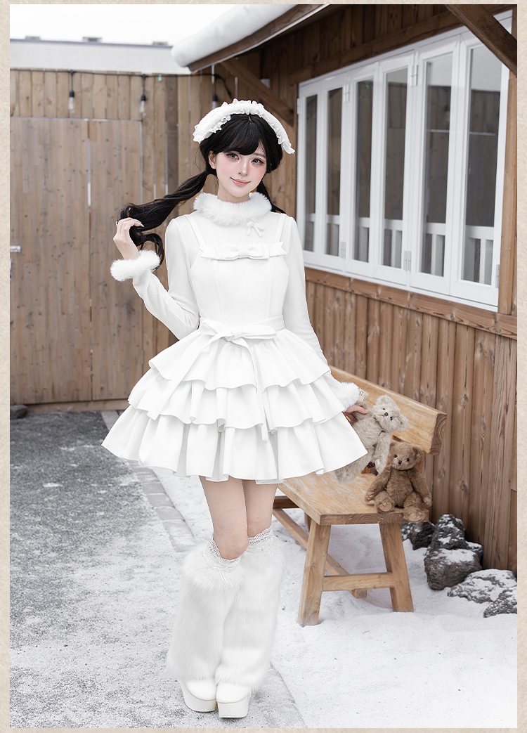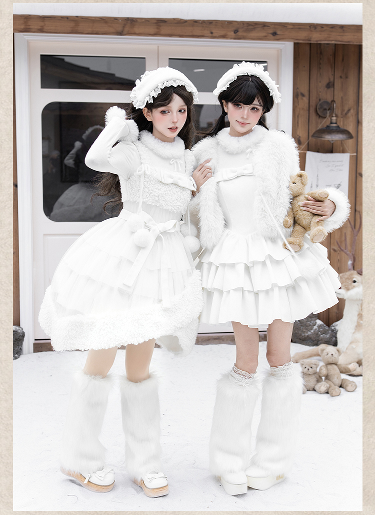 【Bai Qiao】Withpuji Original Design Plush Coat Three-Tiered Skirt Jsk Set Winter Lolita
