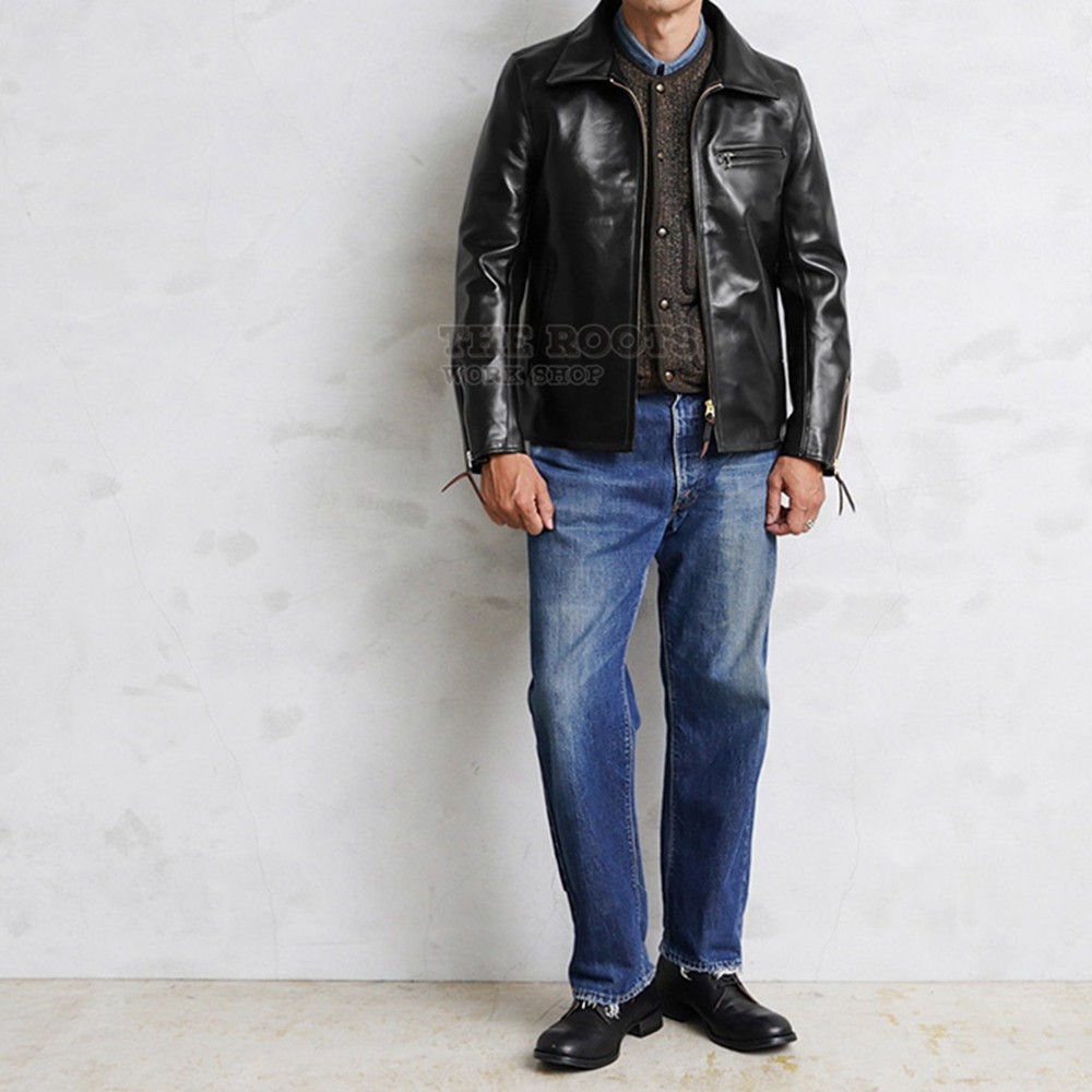 选用“Vintage Horse Light”皮料,染色时,先用棕色染色一次,之后再用黑色覆盖,完成最终处理。随着穿着旧化,皮面会因摩擦等导致底层棕色显现。厚度约1MM,,触感更休闲,风格更轻松自在。棉麻衬里,袖子采用尼龙衬里,既带来顺滑触感又具备出色的耐用性。采用了略微宽松的剪裁,营造出简洁优雅的轮廓。是一款为轻松融入日常生活而设计的单品。随着身形变化获得更多舒适体感和专属茶芯旧化质感。 细节工艺十足,上身硬朗有型!
