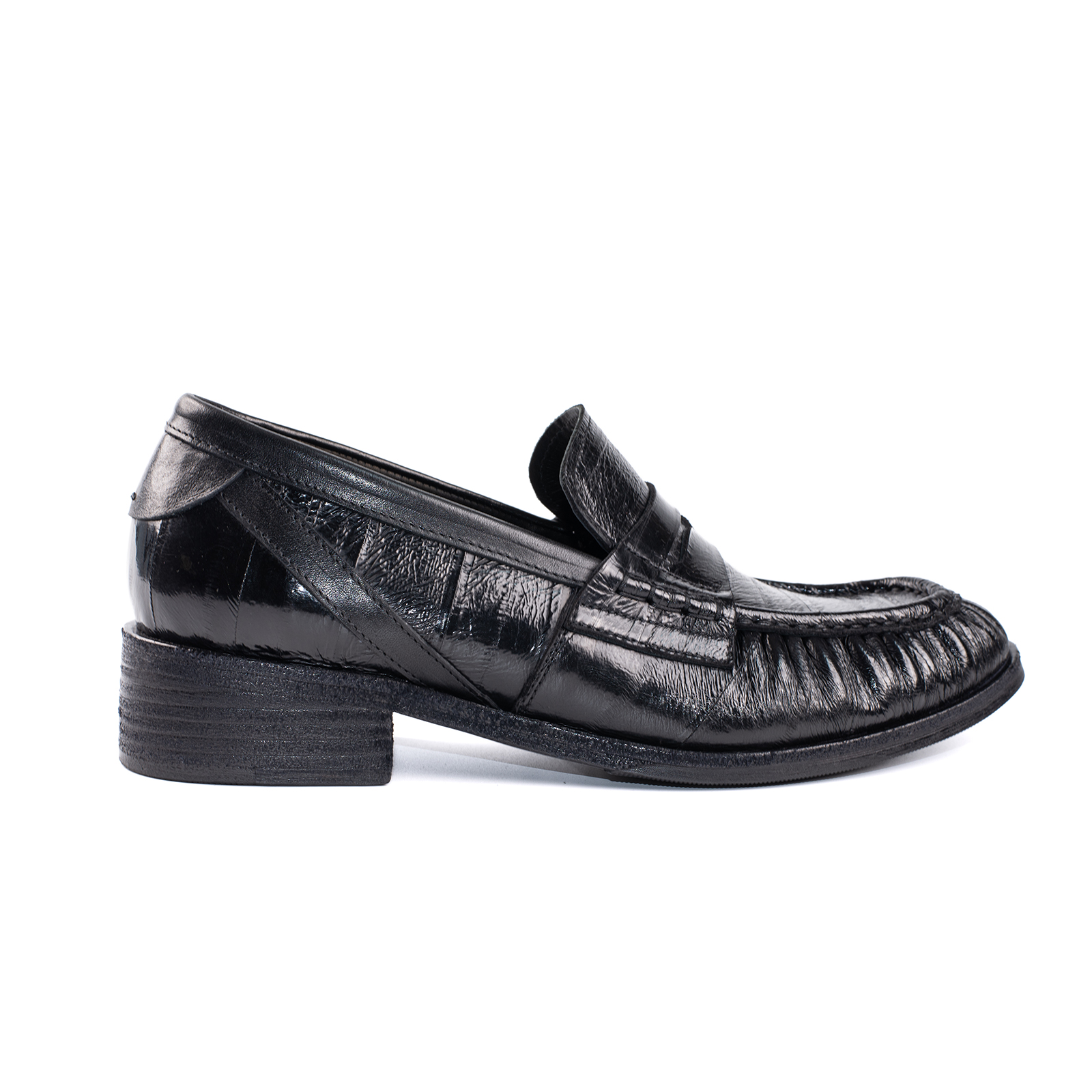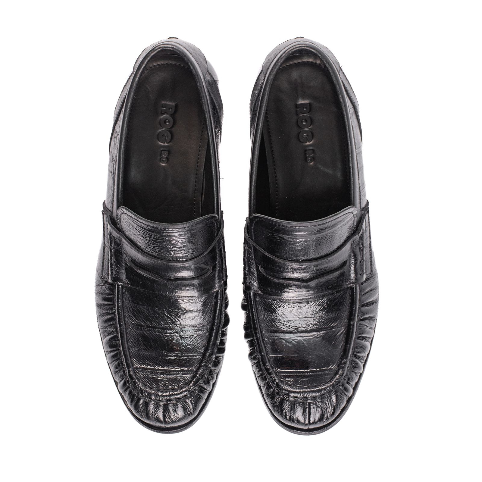 Rog Ro American Eel Leather Loafers Pleated Casual Row Old Money New Rich Style Meat Brother Men's Solid Leather Shoes