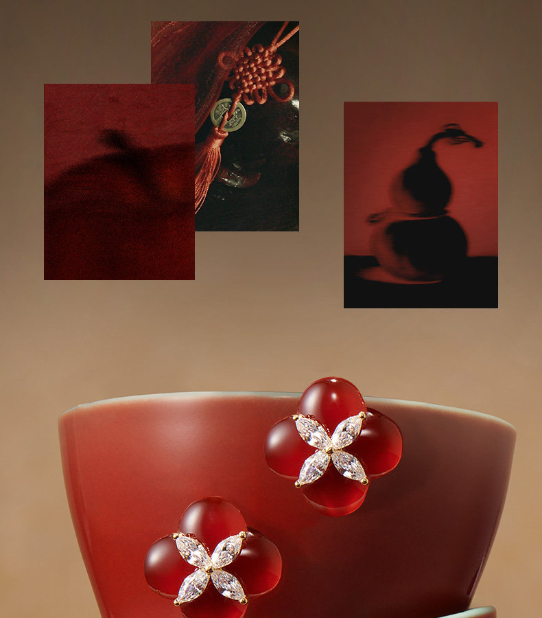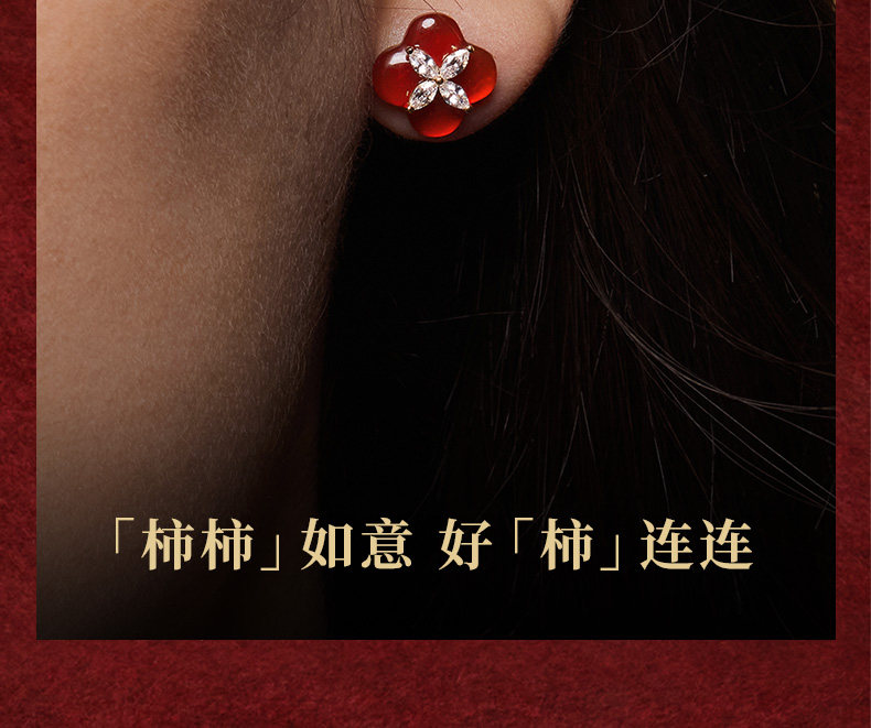 [New Product] Hefang Jewelry Persimmon Good Fortune Earrings/Ear Clips, Light Luxury Original Design, Women's New Year Gift