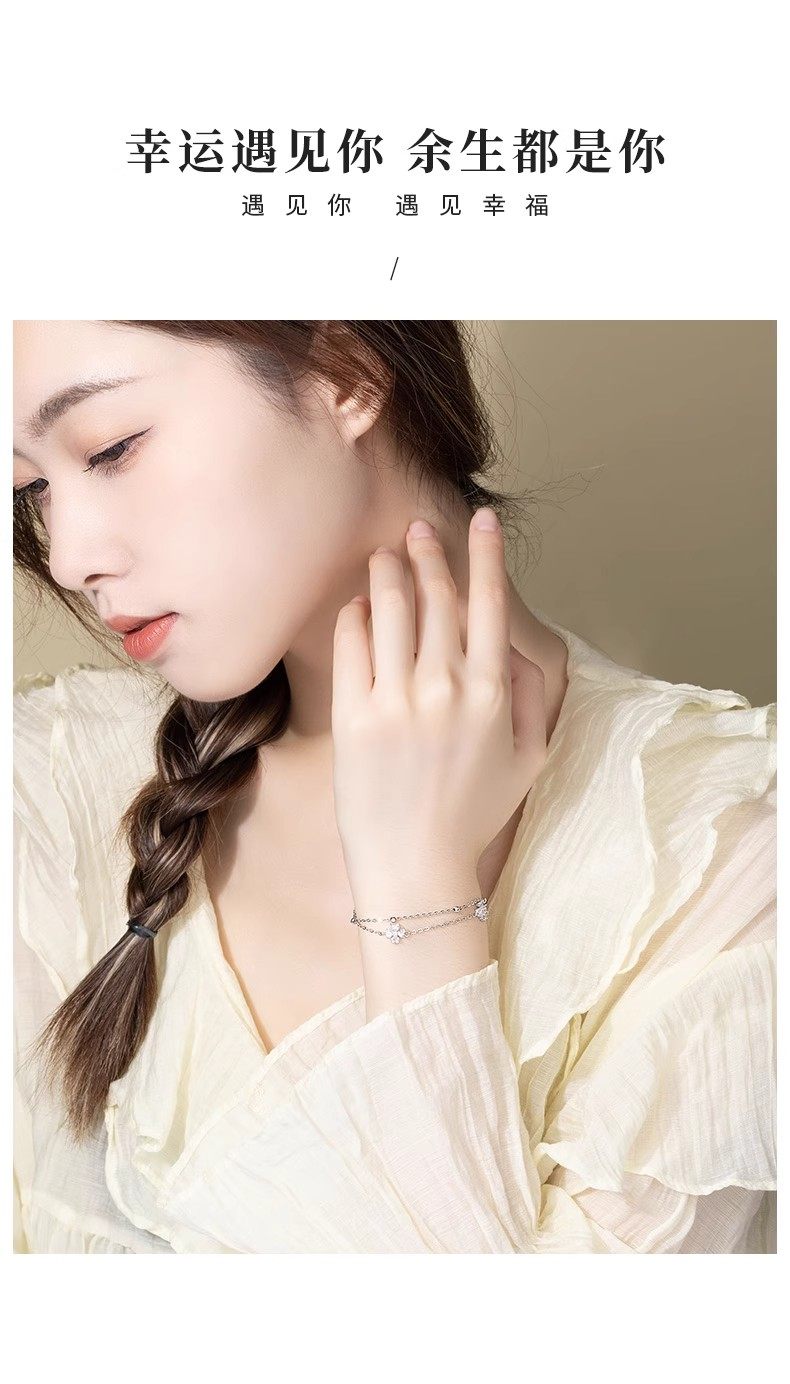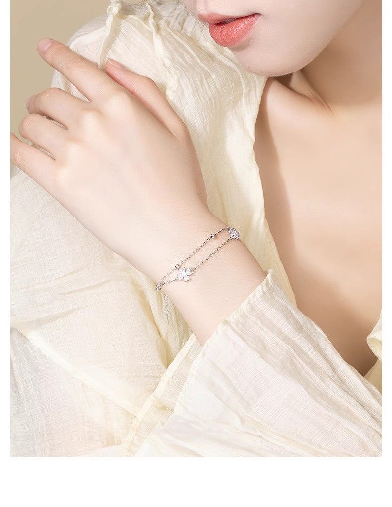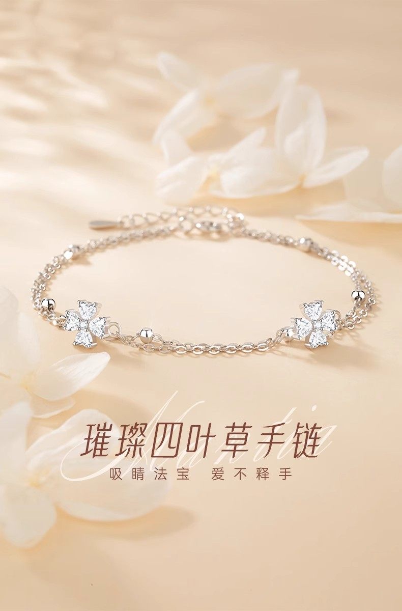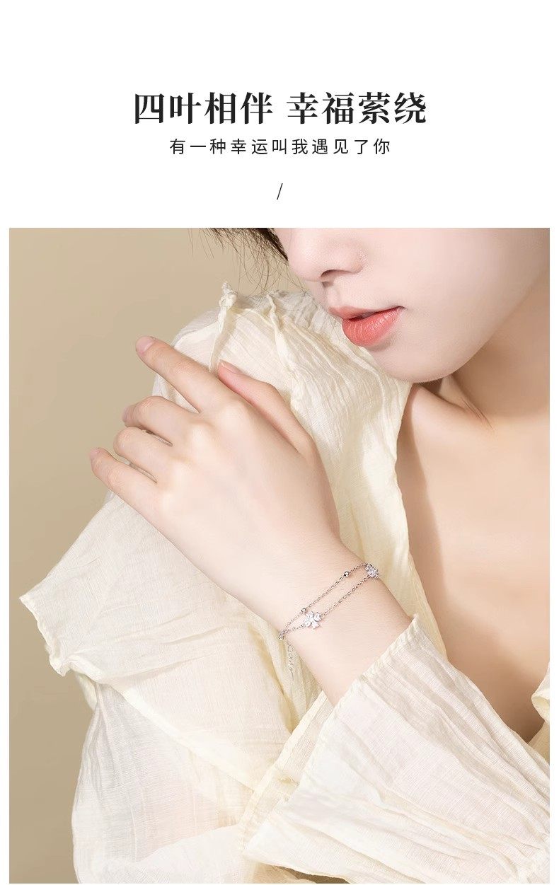 S999 Sterling Silver Four-Leaf Clover Bracelet for Women, Light Luxury Niche 2025 New Model, Christmas Birthday Gift for Girlfriend