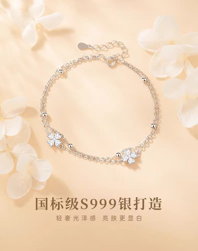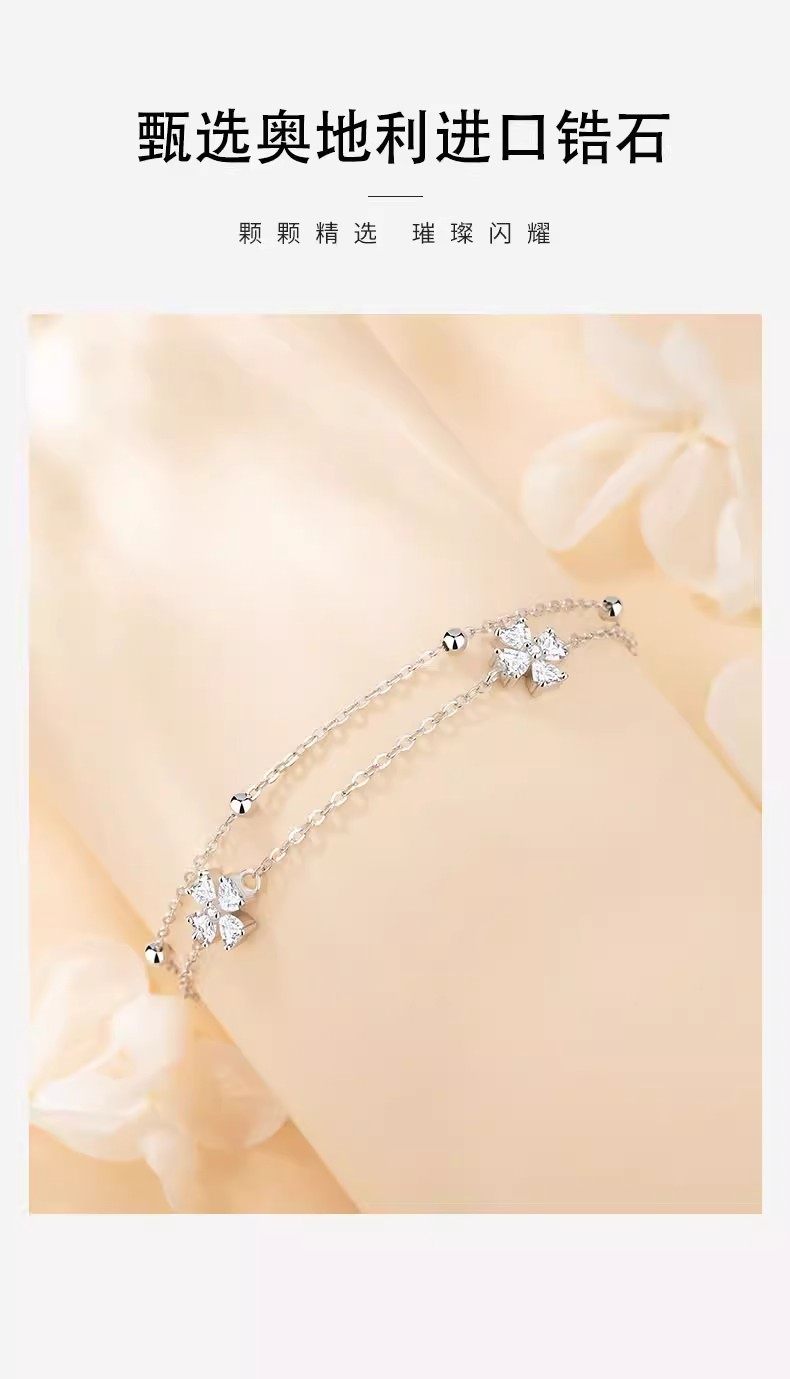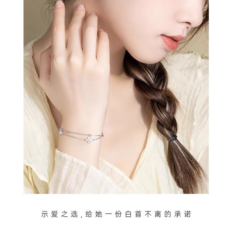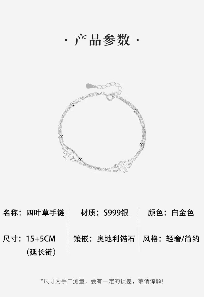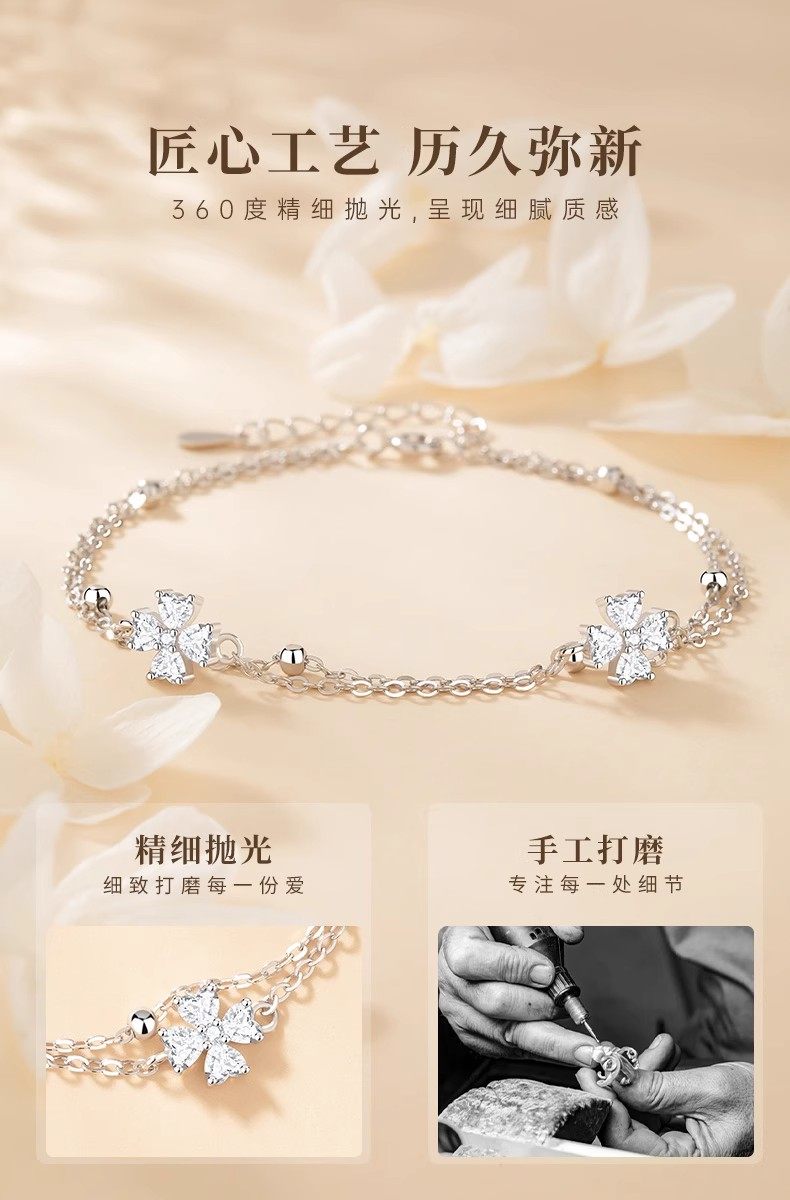 S999 Sterling Silver Four-Leaf Clover Bracelet for Women, Light Luxury Niche 2025 New Model, Christmas Birthday Gift for Girlfriend
