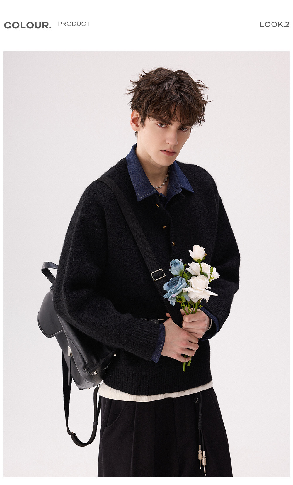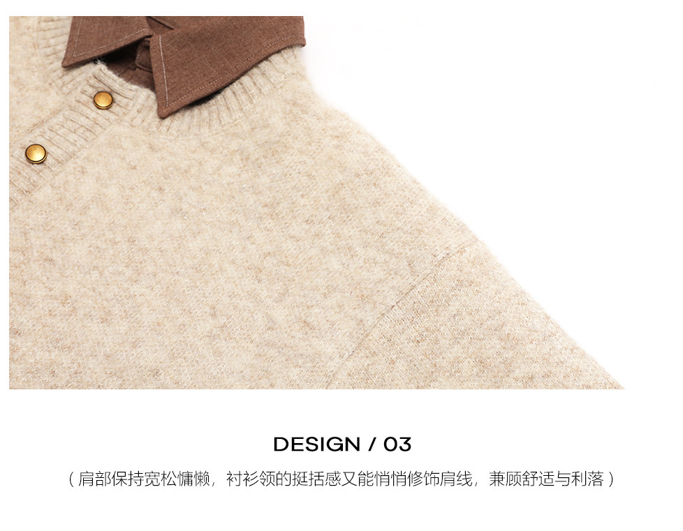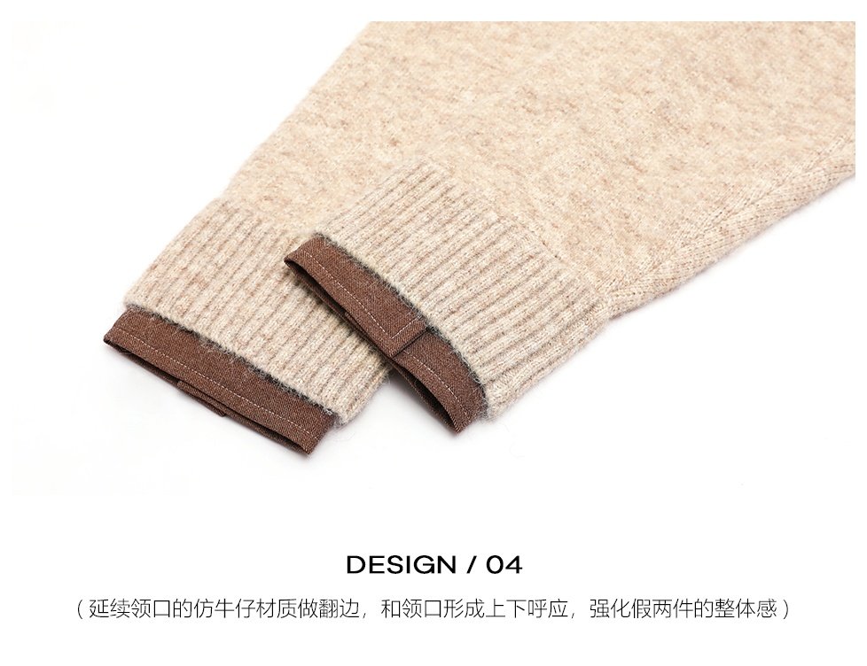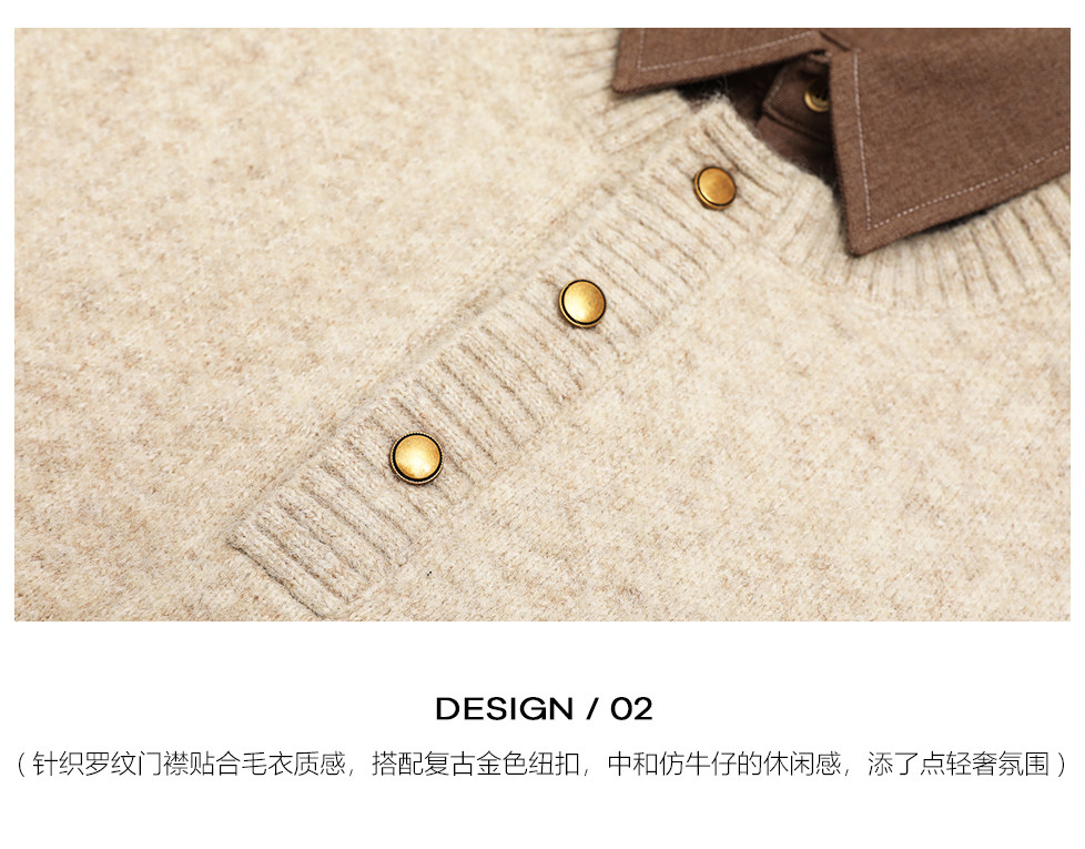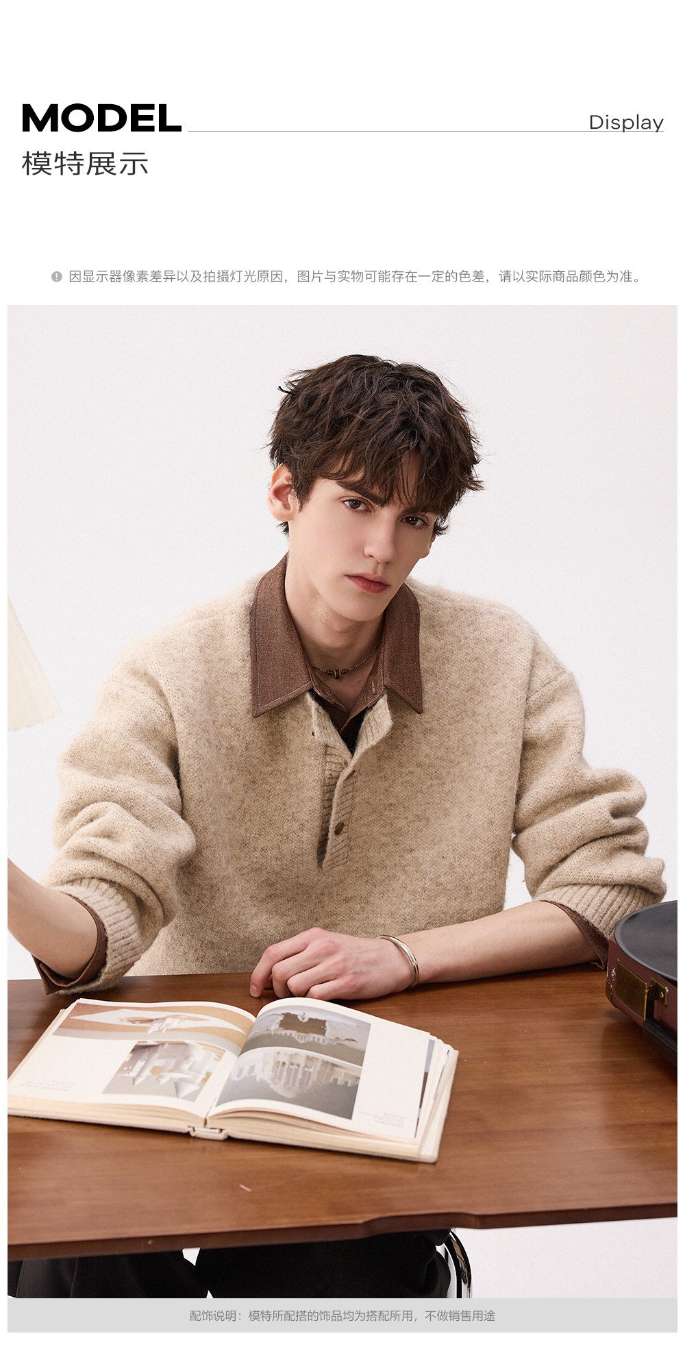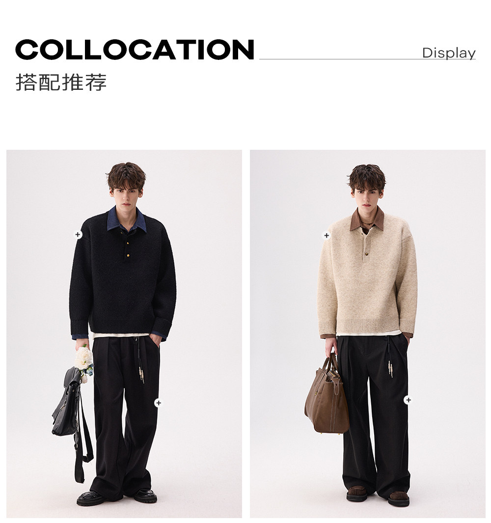 Chicerro Sicilian Men's Clothing with Artistic Design, Faux Two-Piece Denim Shirt Collar Sweater, Men's Inner Layer Top