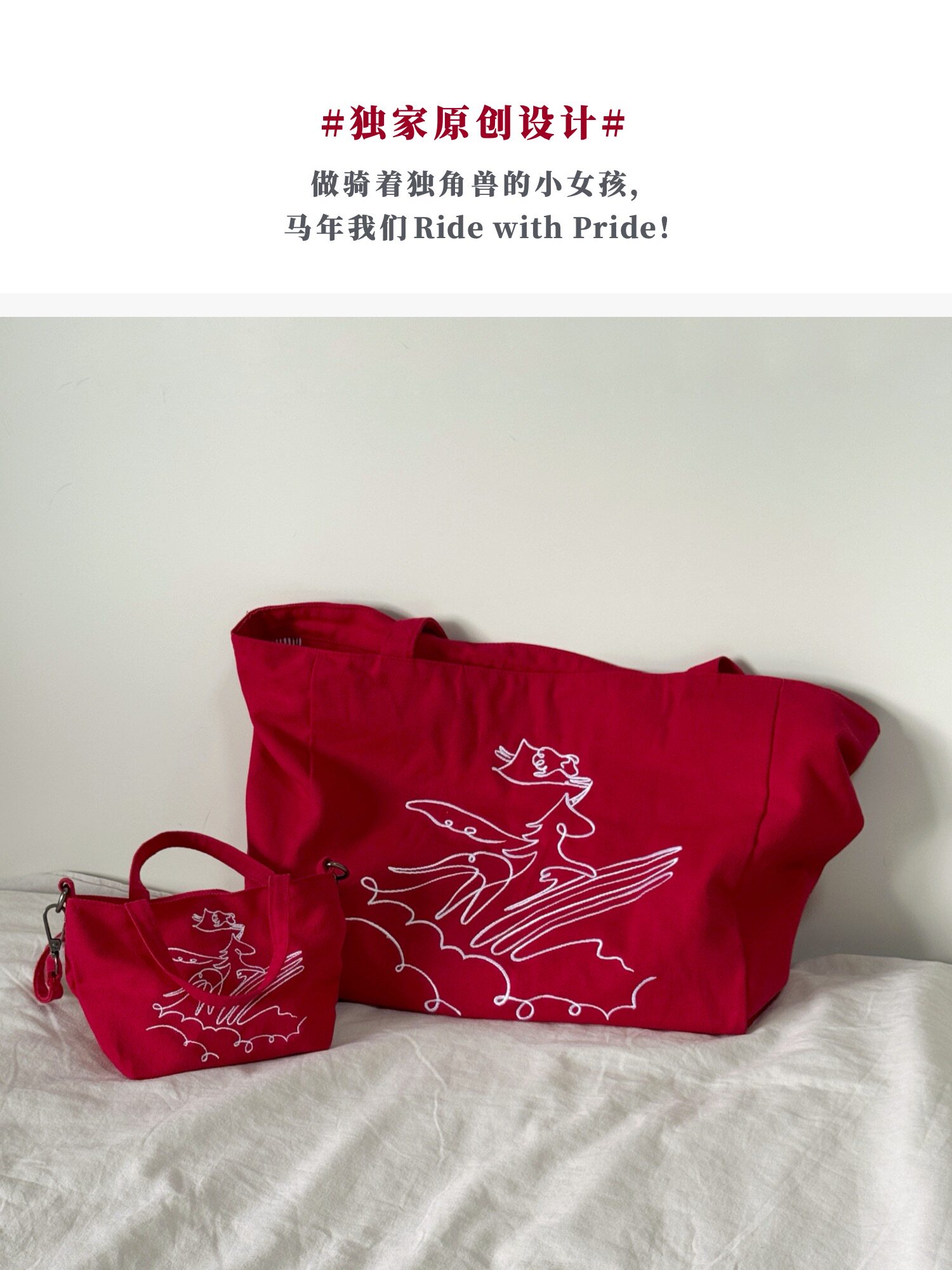 【Ride with Pride】Original Red Canvas Bag Year of the Horse Tote Bag/Crossbody Shoulder Bag New Year Gift