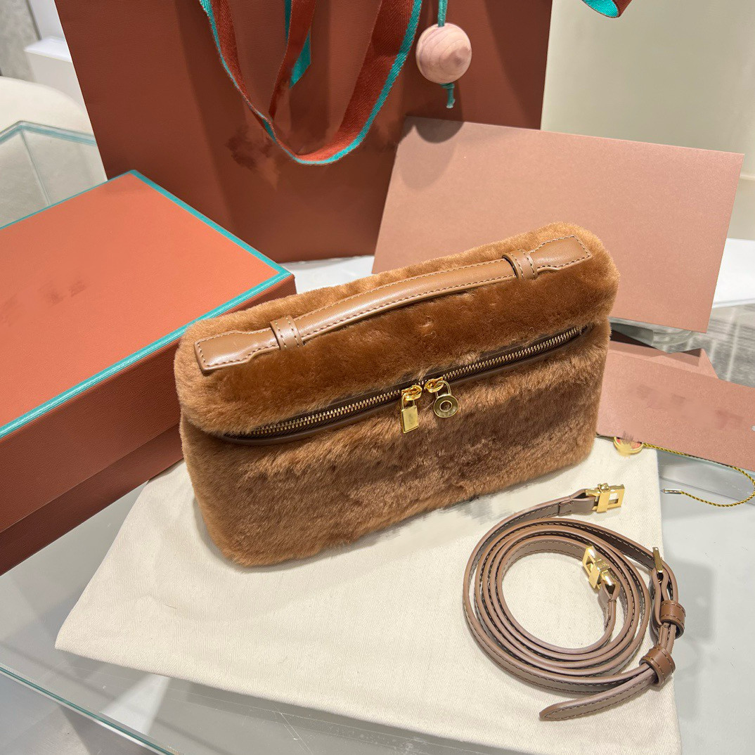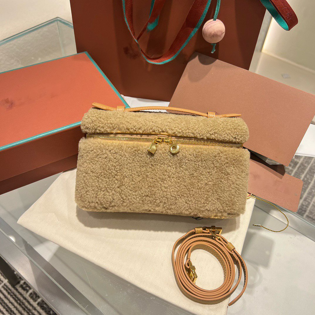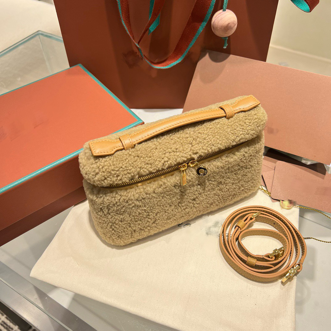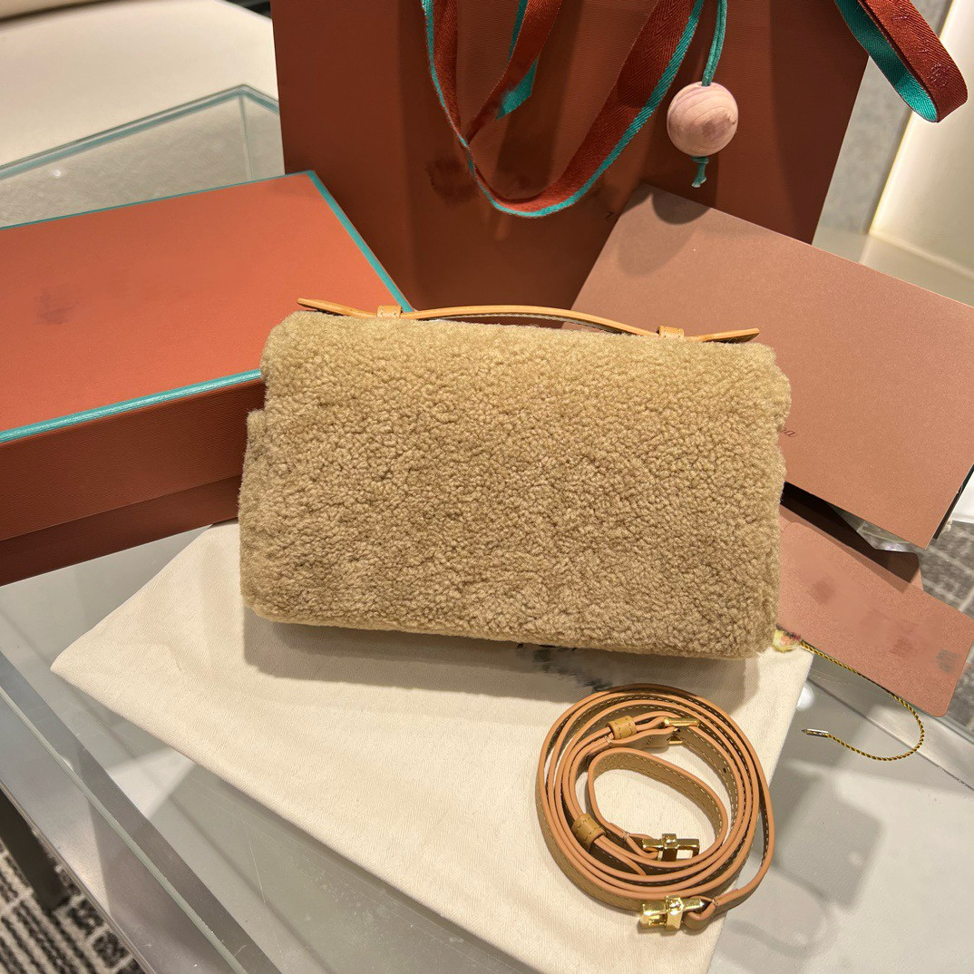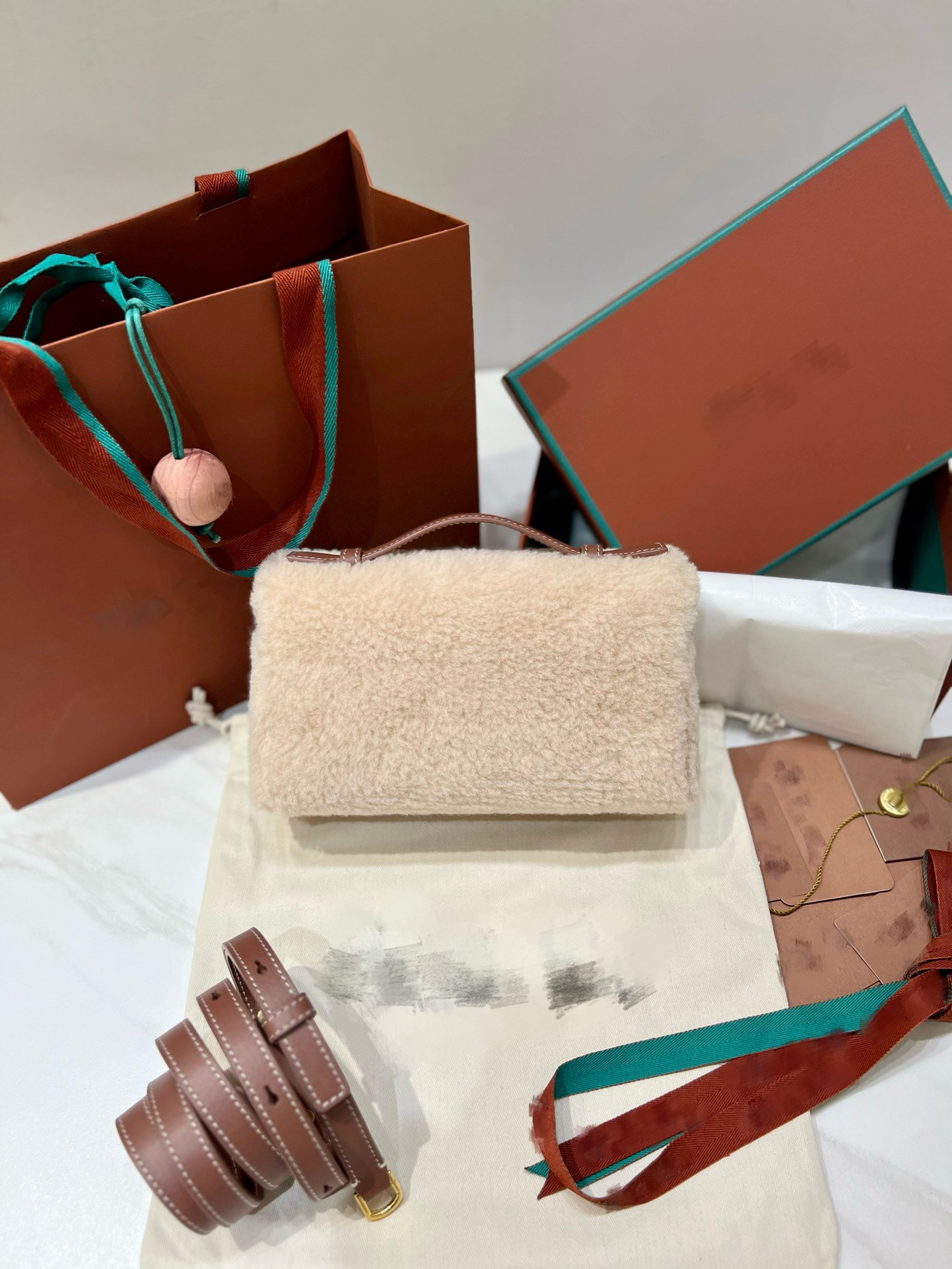Italian Lp Autumn and Winter Silk Cashmere Lunch Box Lining Sheepskin High-End Handbag Crossbody Bag for Women, Exquisite and Versatile