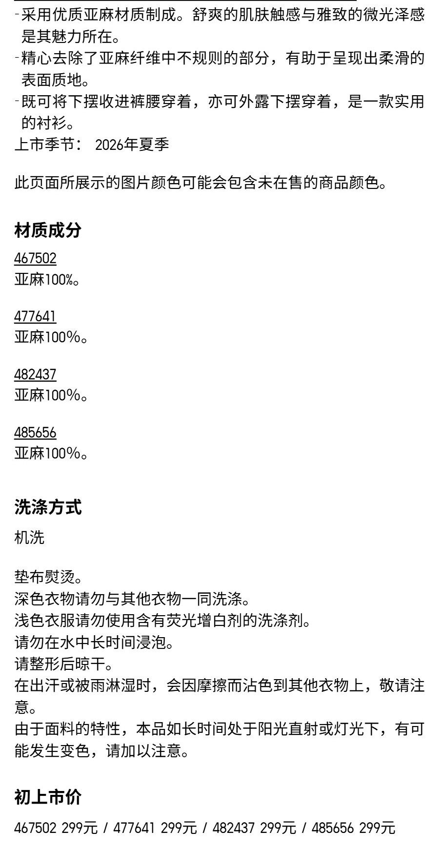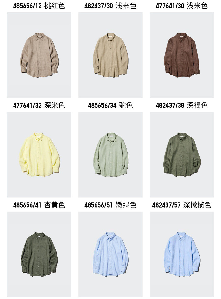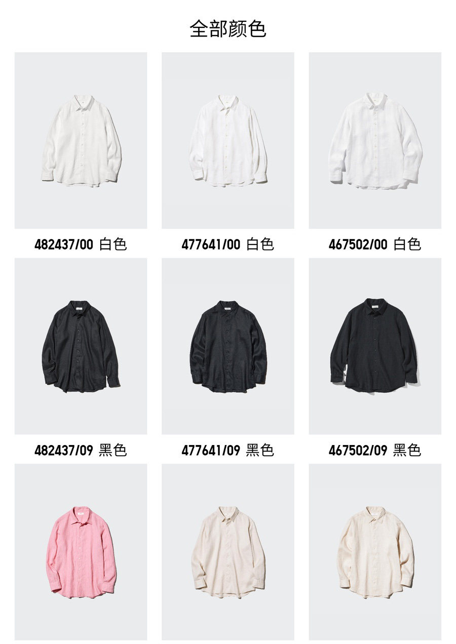 Uniqlo Men's and Women's French Linen Shirts/Long-Sleeved Shirts Linen 26 Spring and Summer New Styles 482437 485656