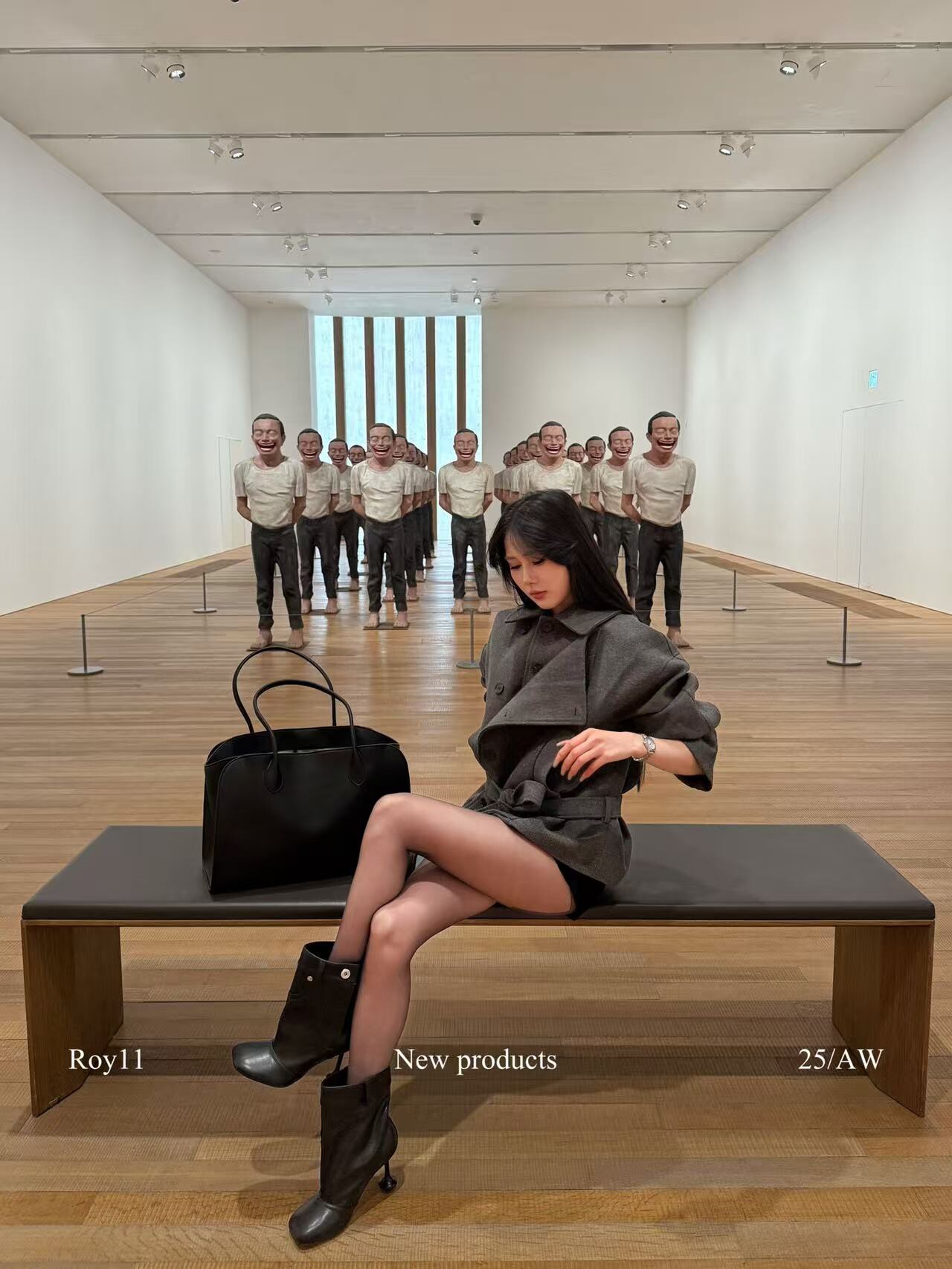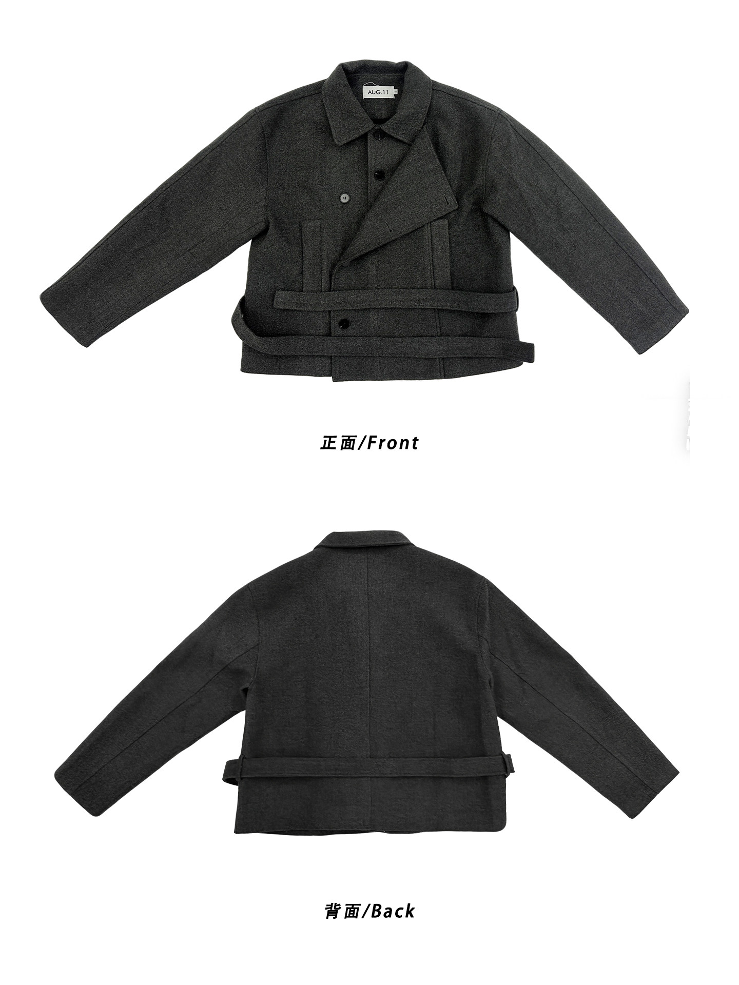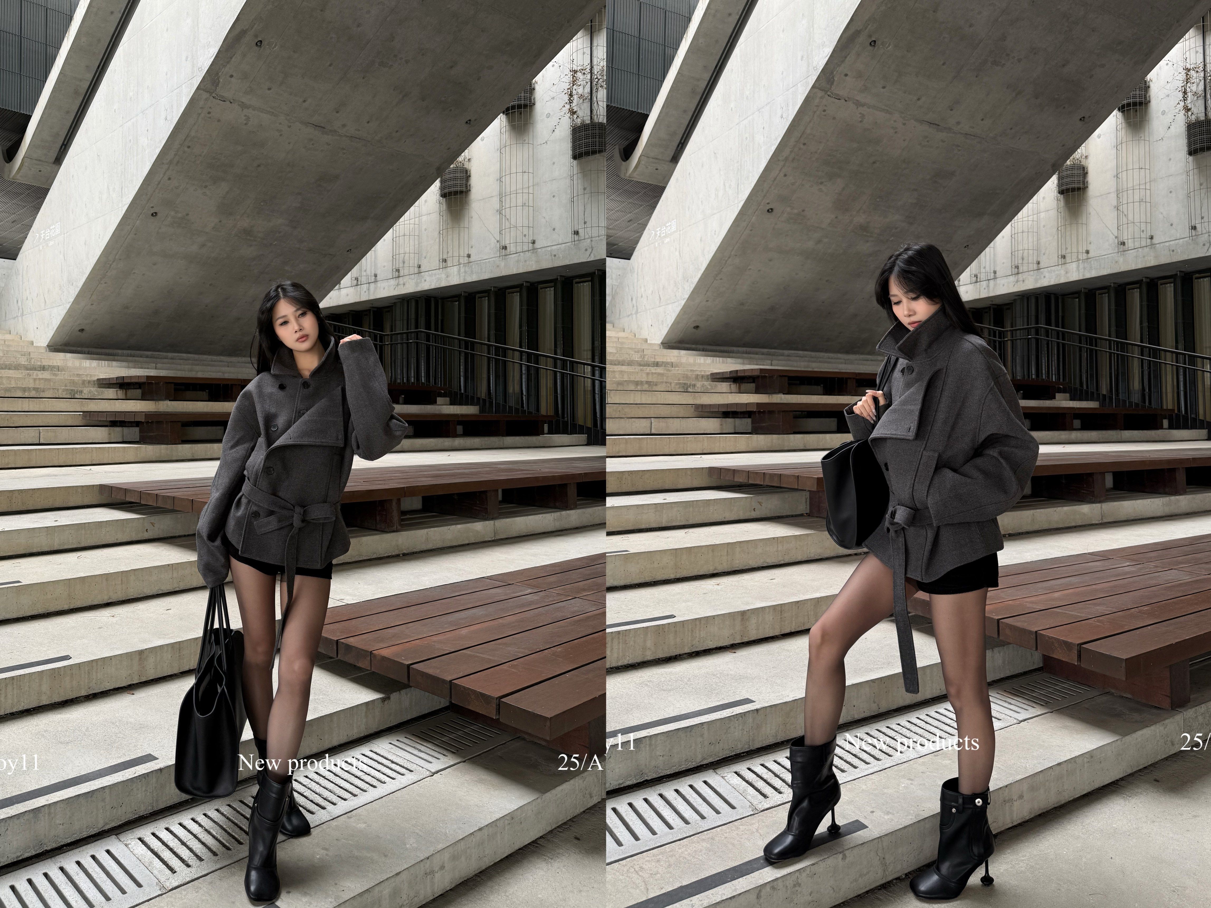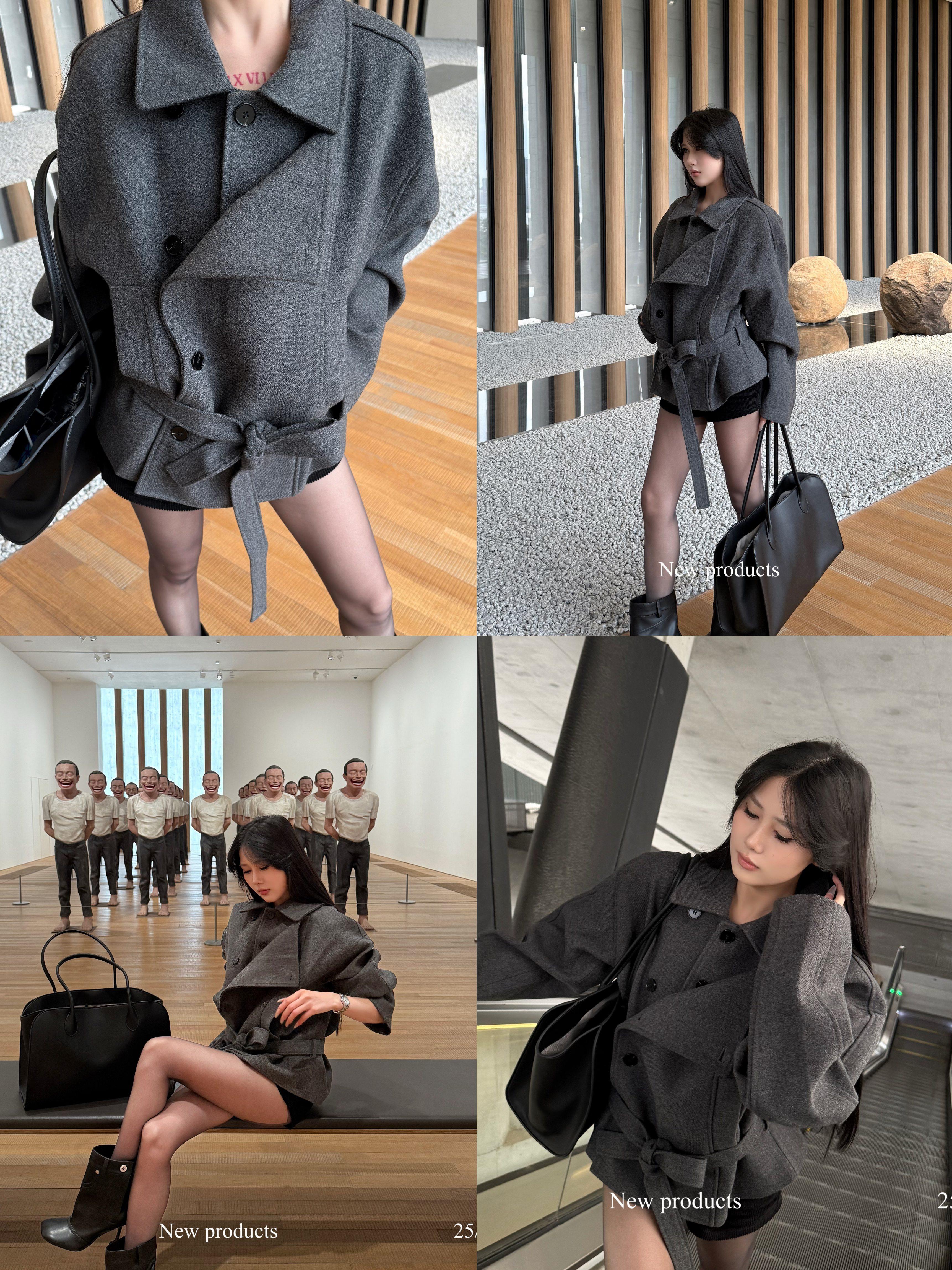 Roy11 Berlin Mist Gray Short Woolen Coat for Women Winter High-End Elegant Waist-Cinching Casual Top