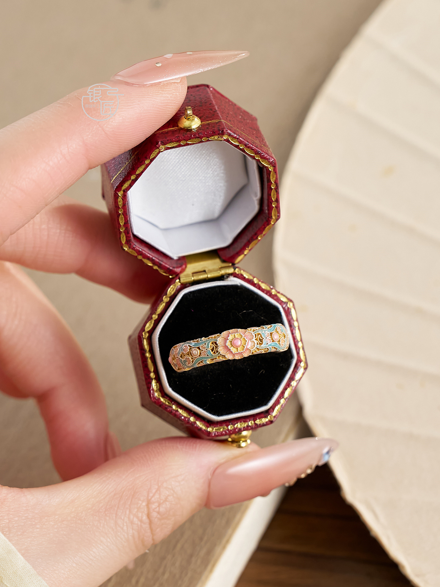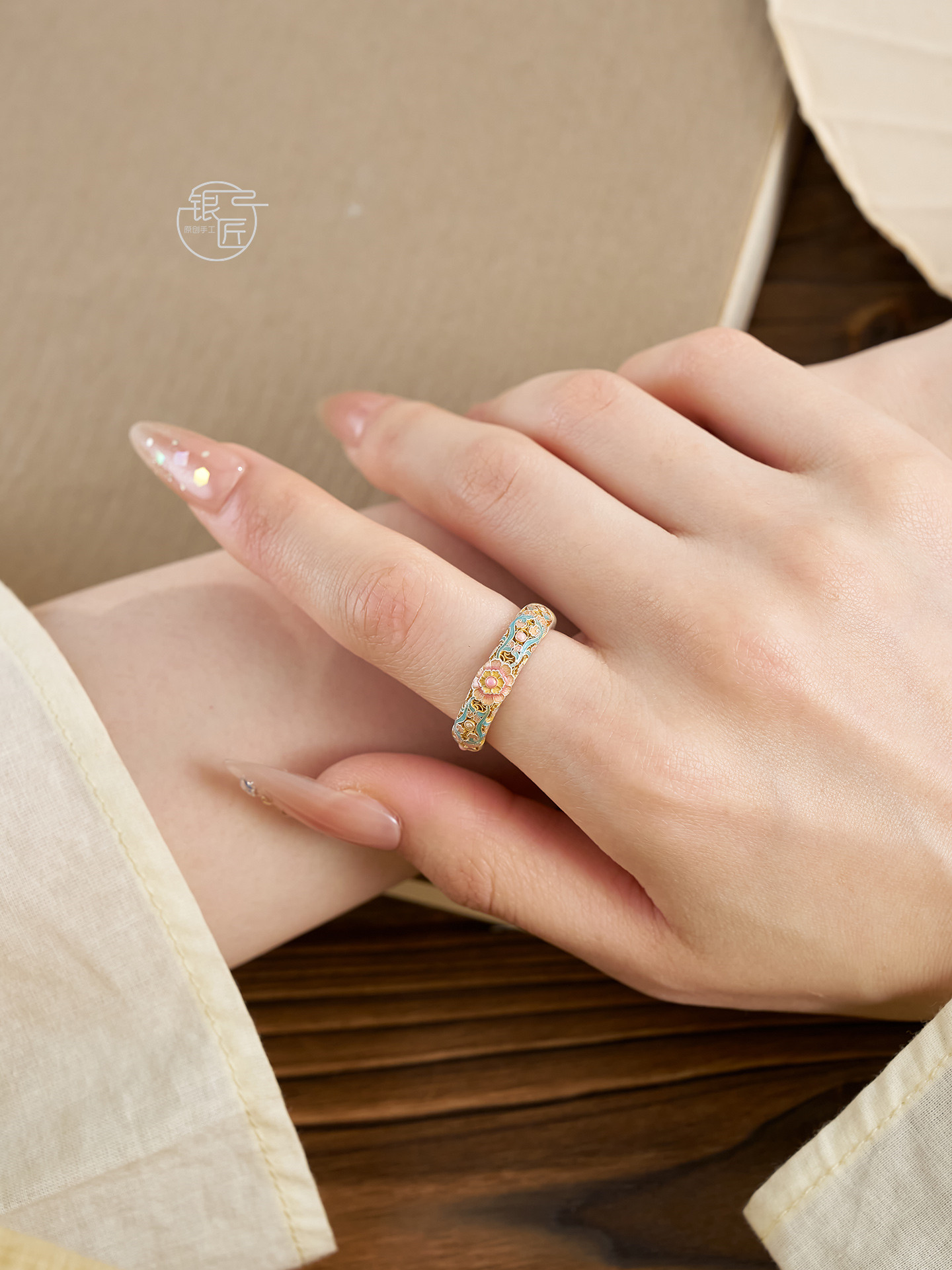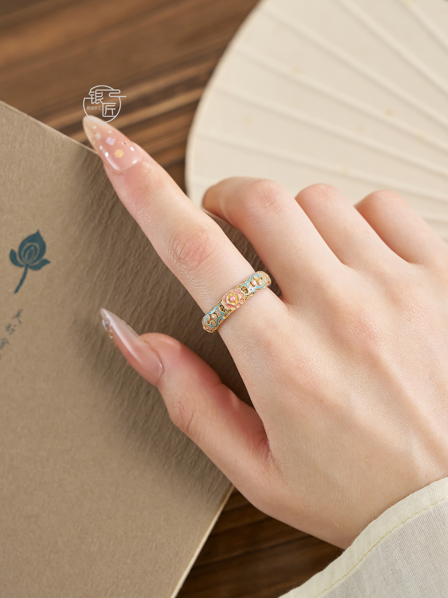 Silversmith [Begonia Flower] National Style New Chinese Style Pure Silver 999.9 Enamel Color Heavy Craft Light Luxury Niche Ring for Women