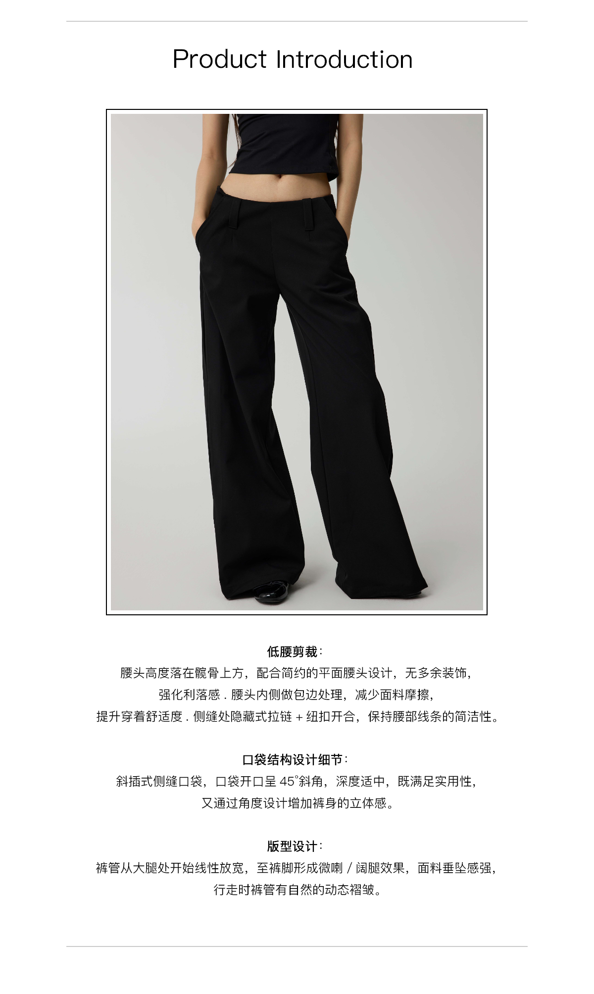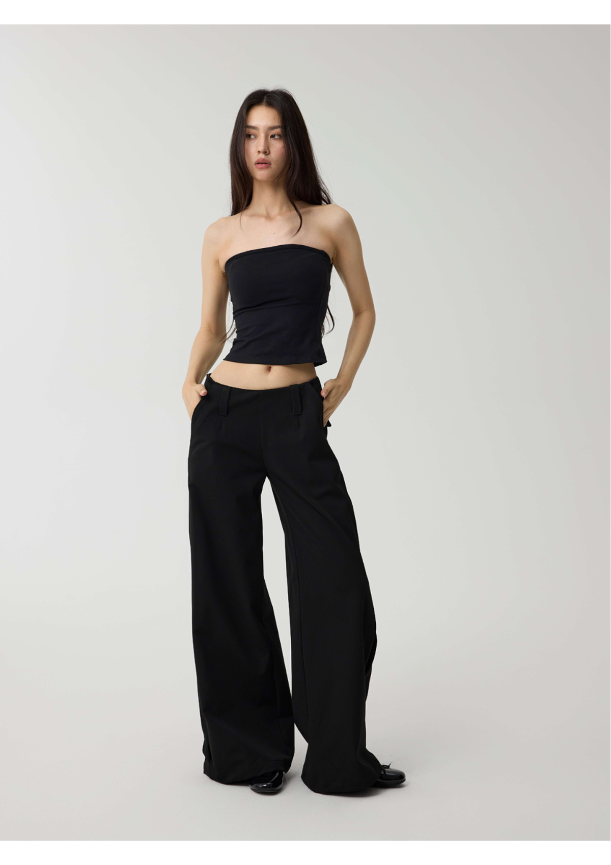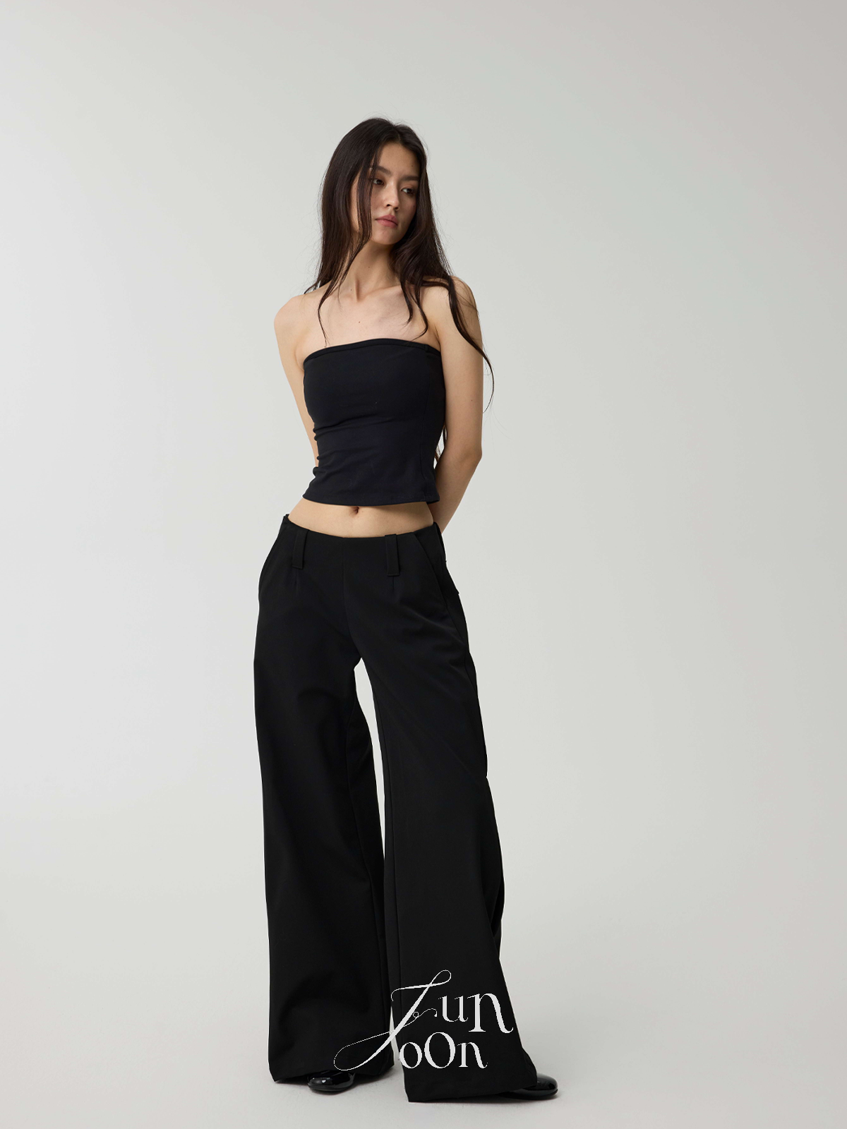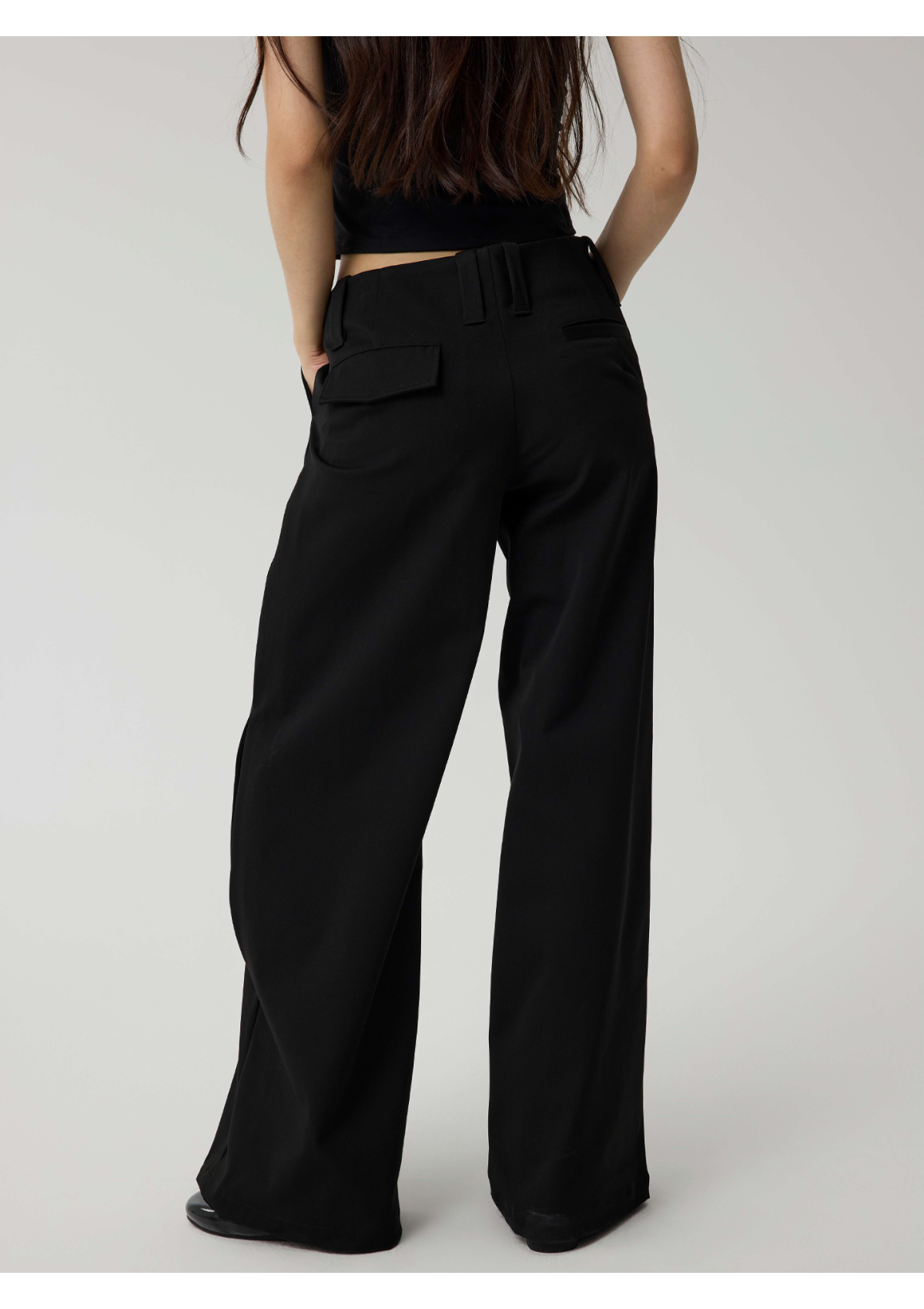 Junoon Side-Pleated Low-Rise Black Tr Blend Fabric Drapey Wide-Leg Trousers Low Rise Pants