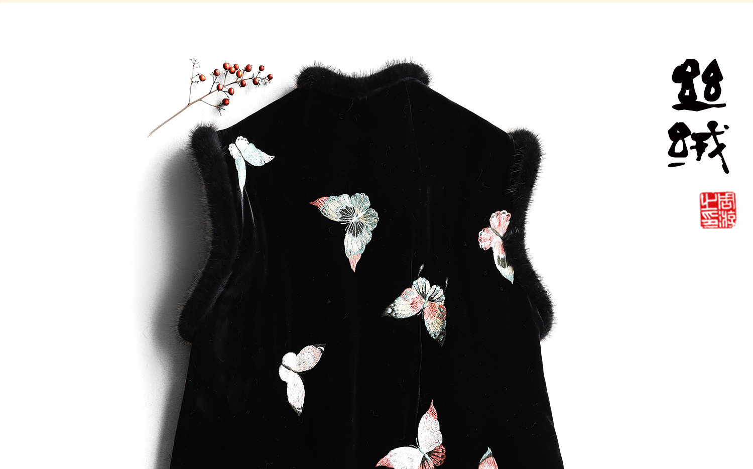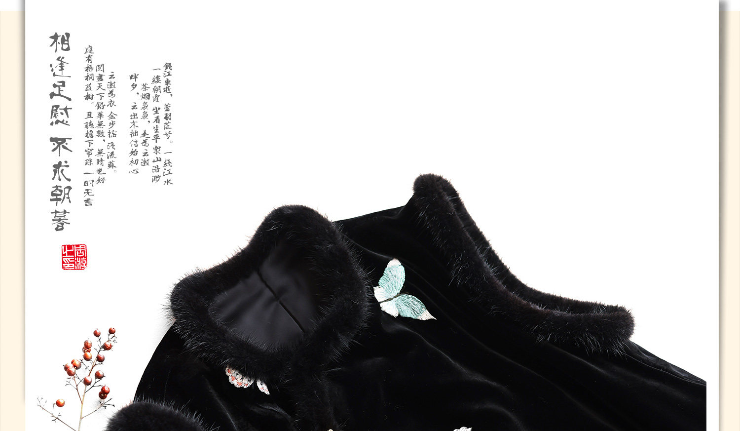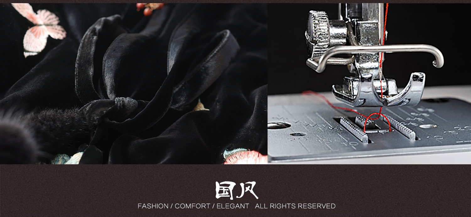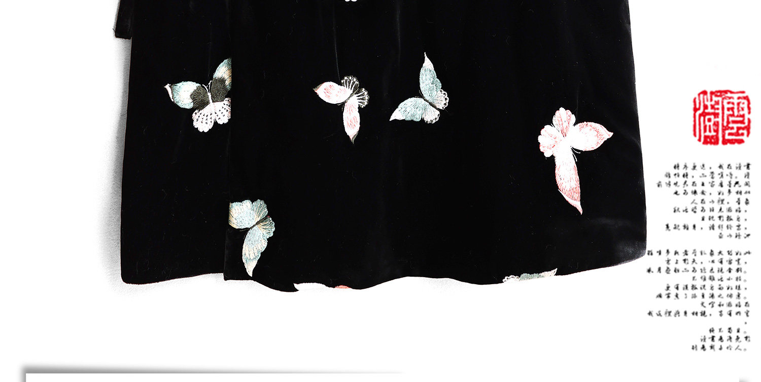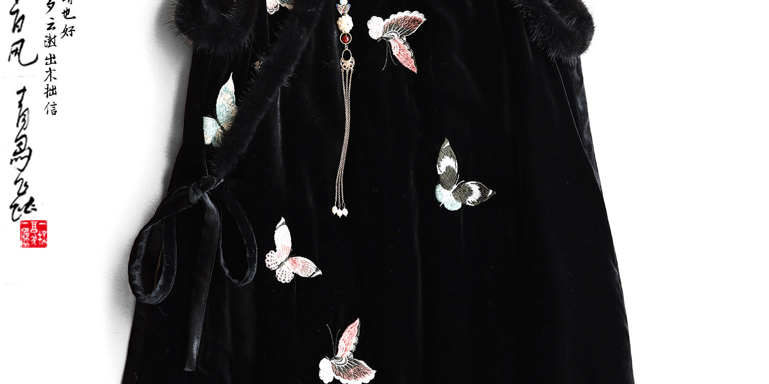 Yunshu Original Silk Velvet Embroidery New Chinese Style National Wind Mink Fur Round Neck Padded Lace-Up Vest Dress for Winter