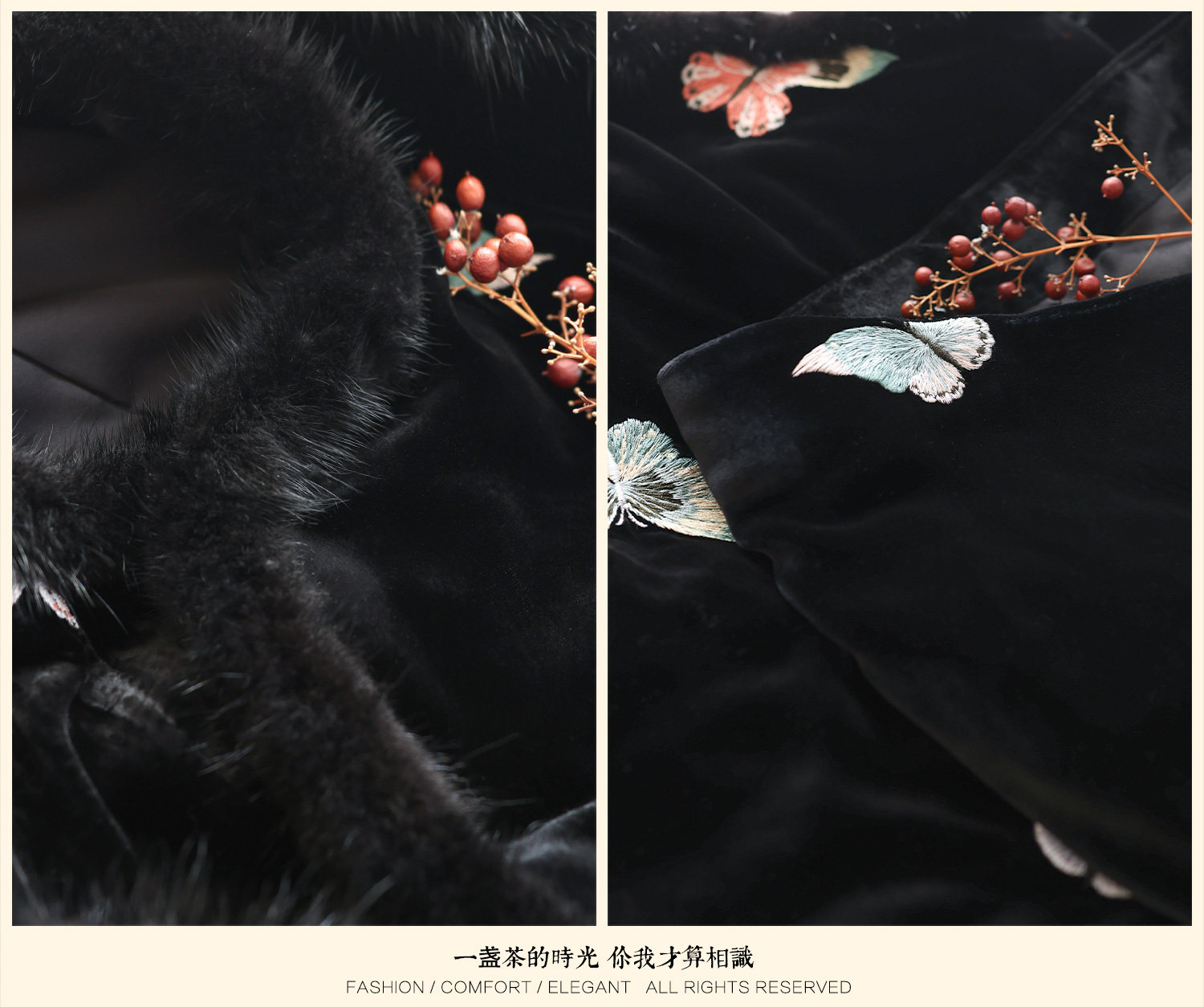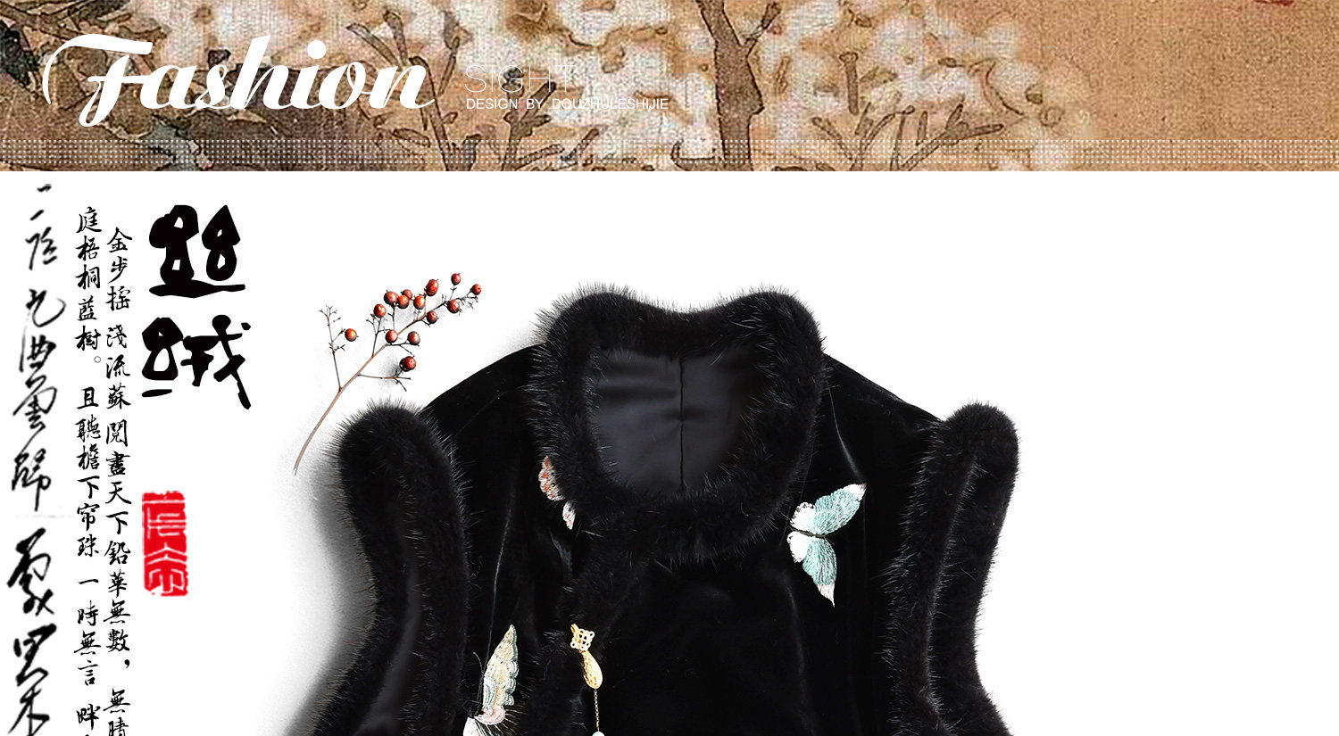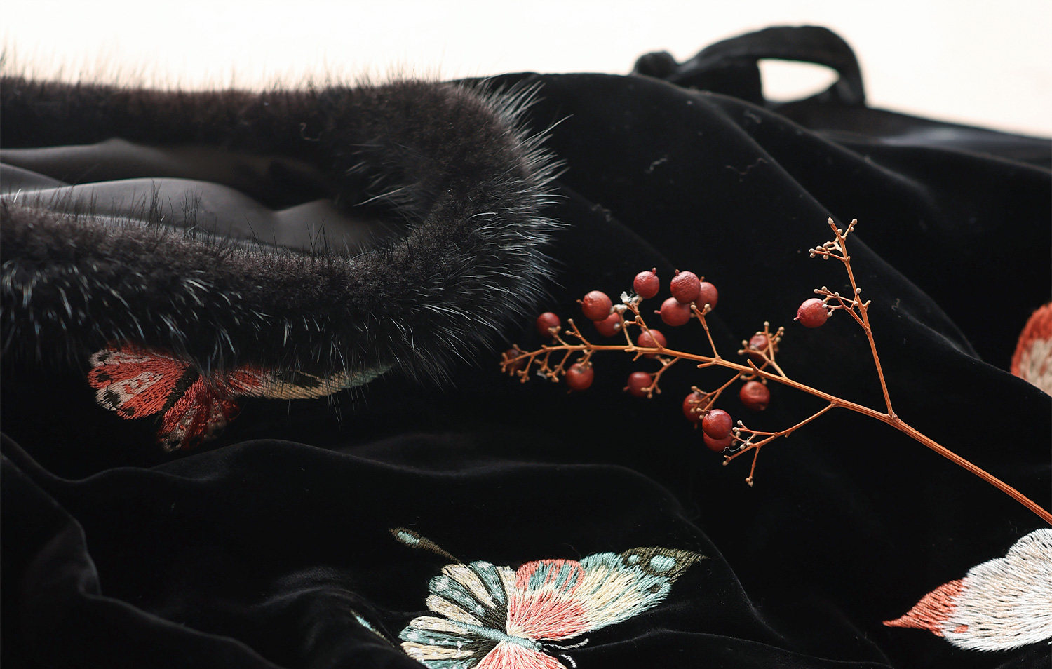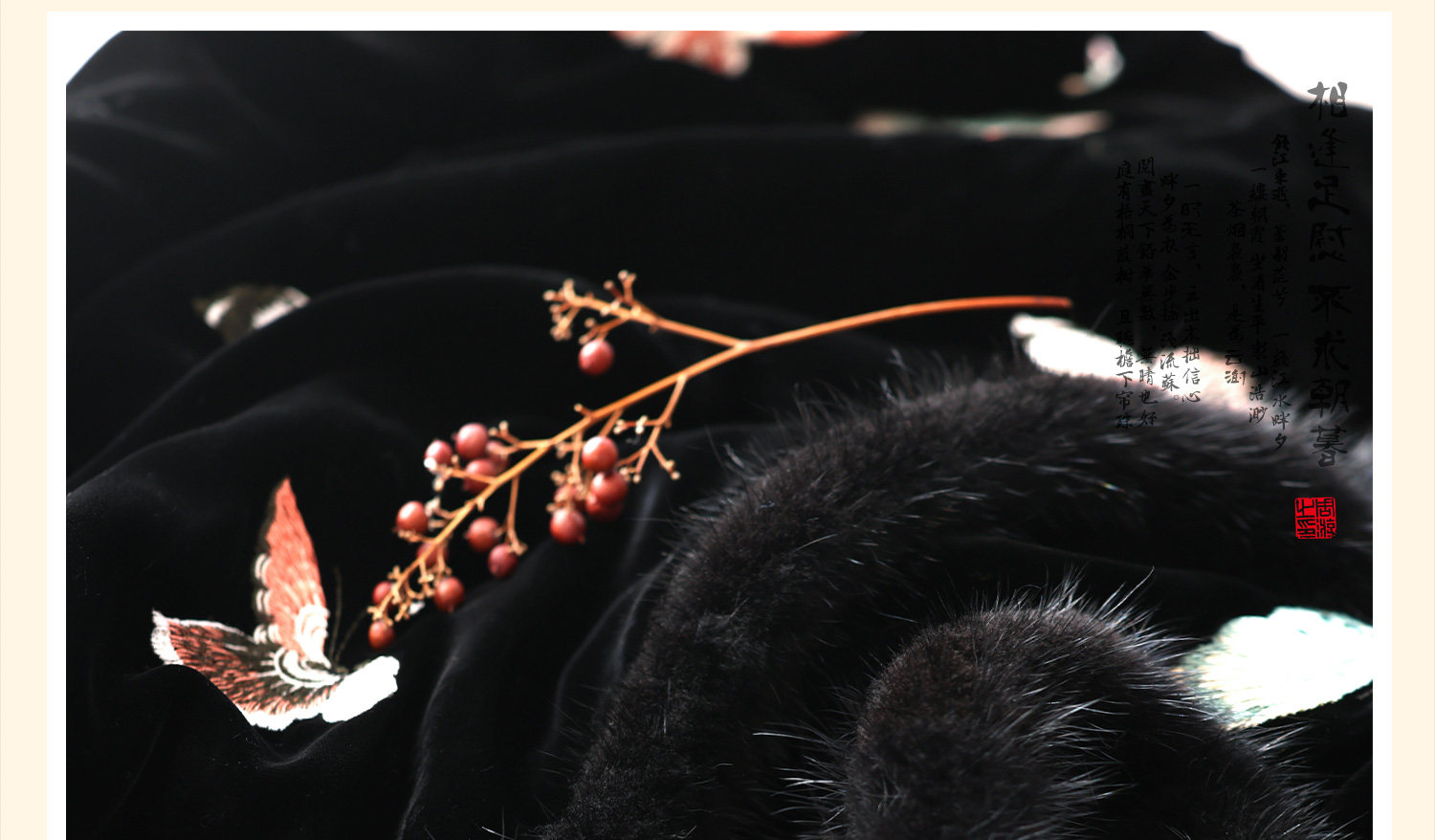 Yunshu Original Silk Velvet Embroidery New Chinese Style National Wind Mink Fur Round Neck Padded Lace-Up Vest Dress for Winter