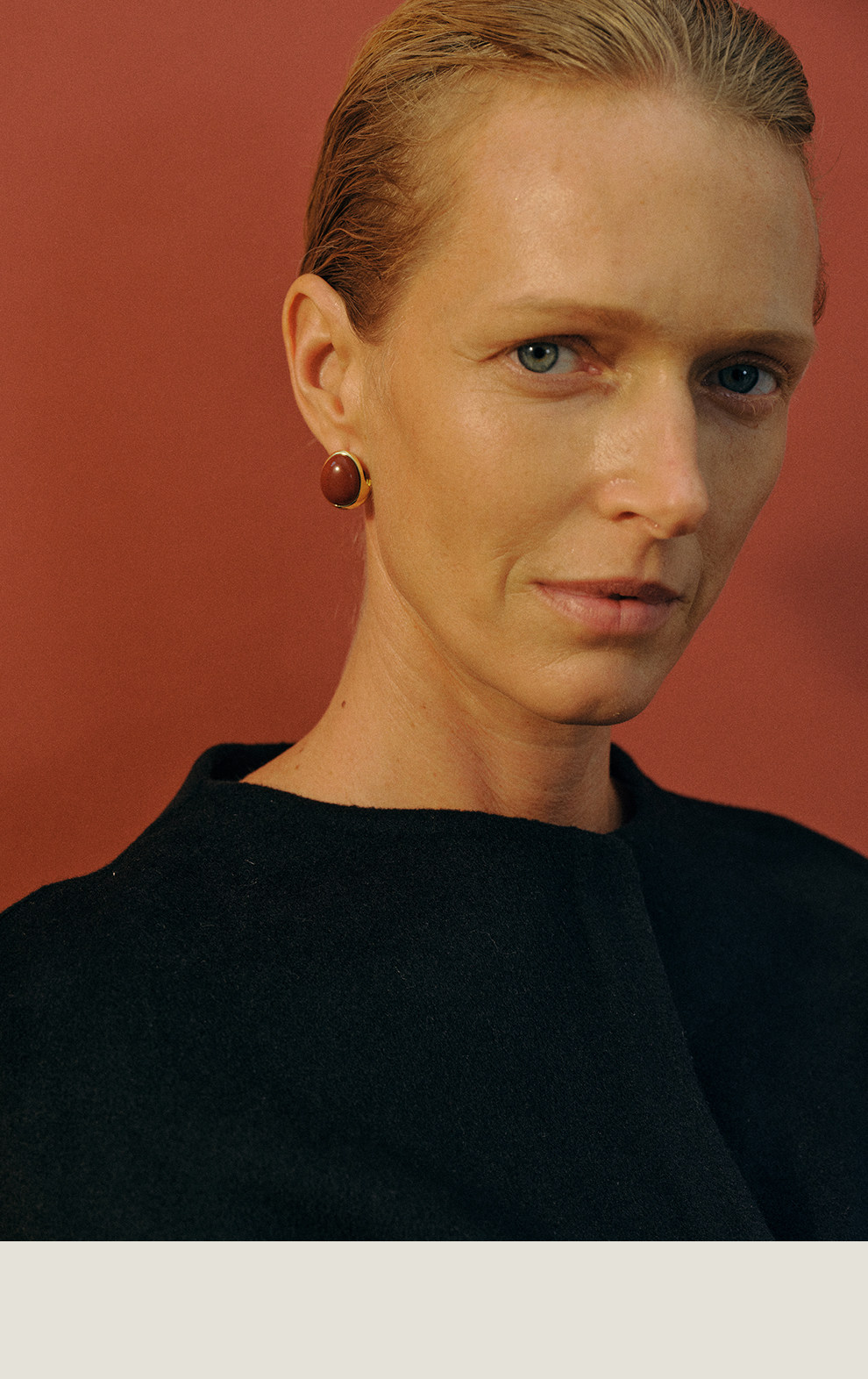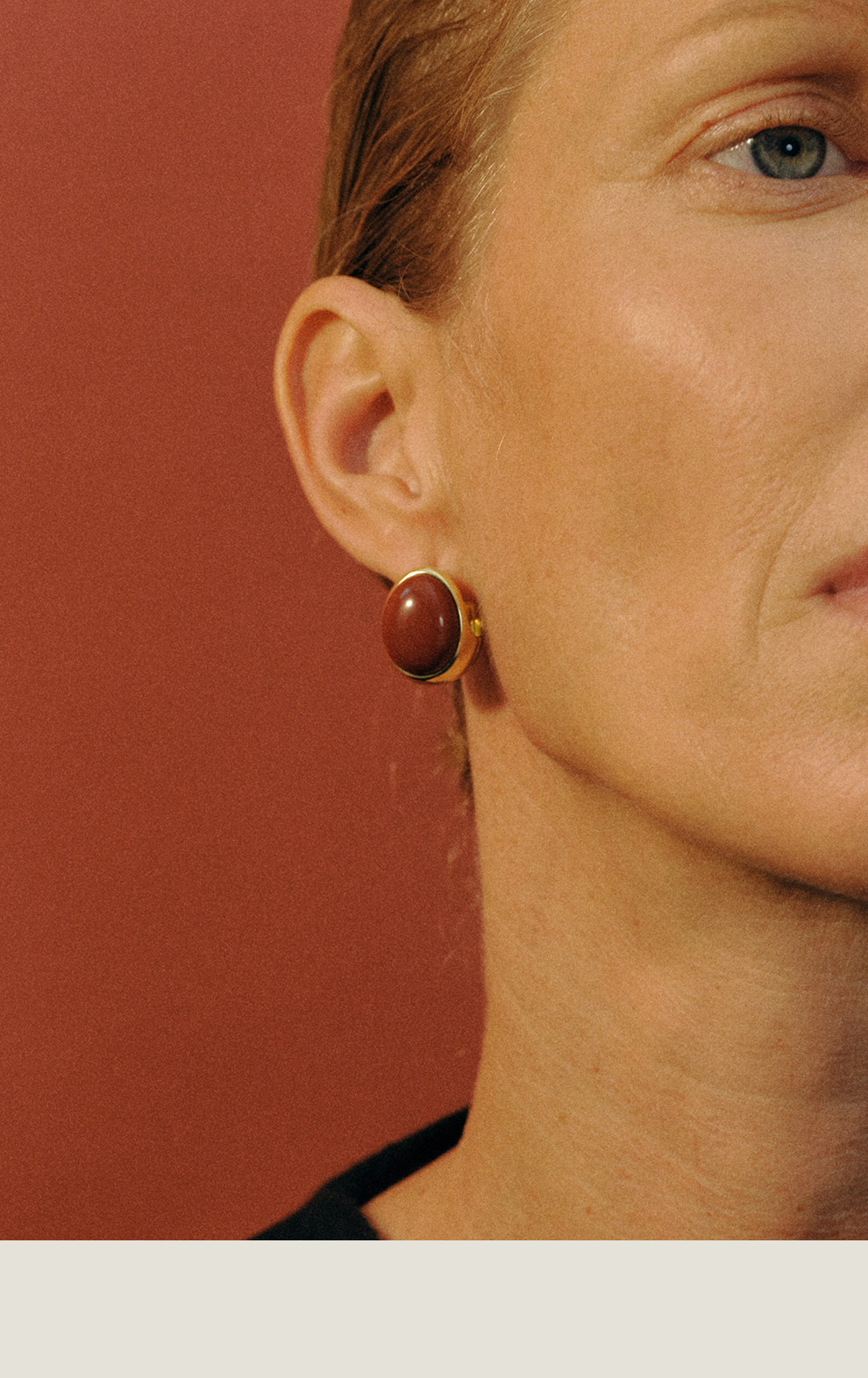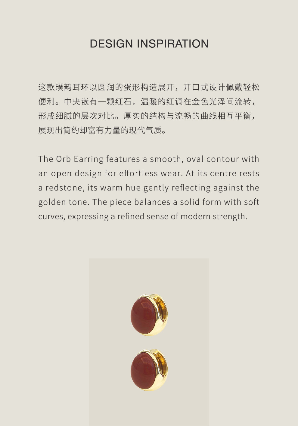 Khemia Egg-Shaped Orb Earrings, Original Niche High-End Design, Red Stone Silver Gold-Plated Elegant Earrings