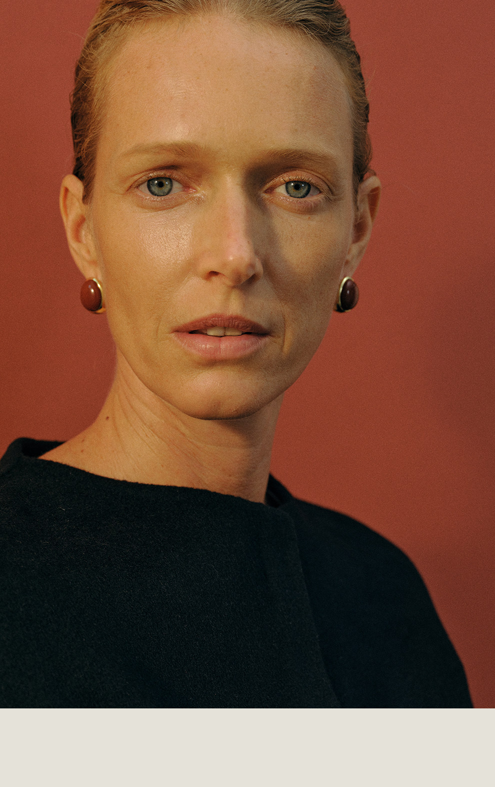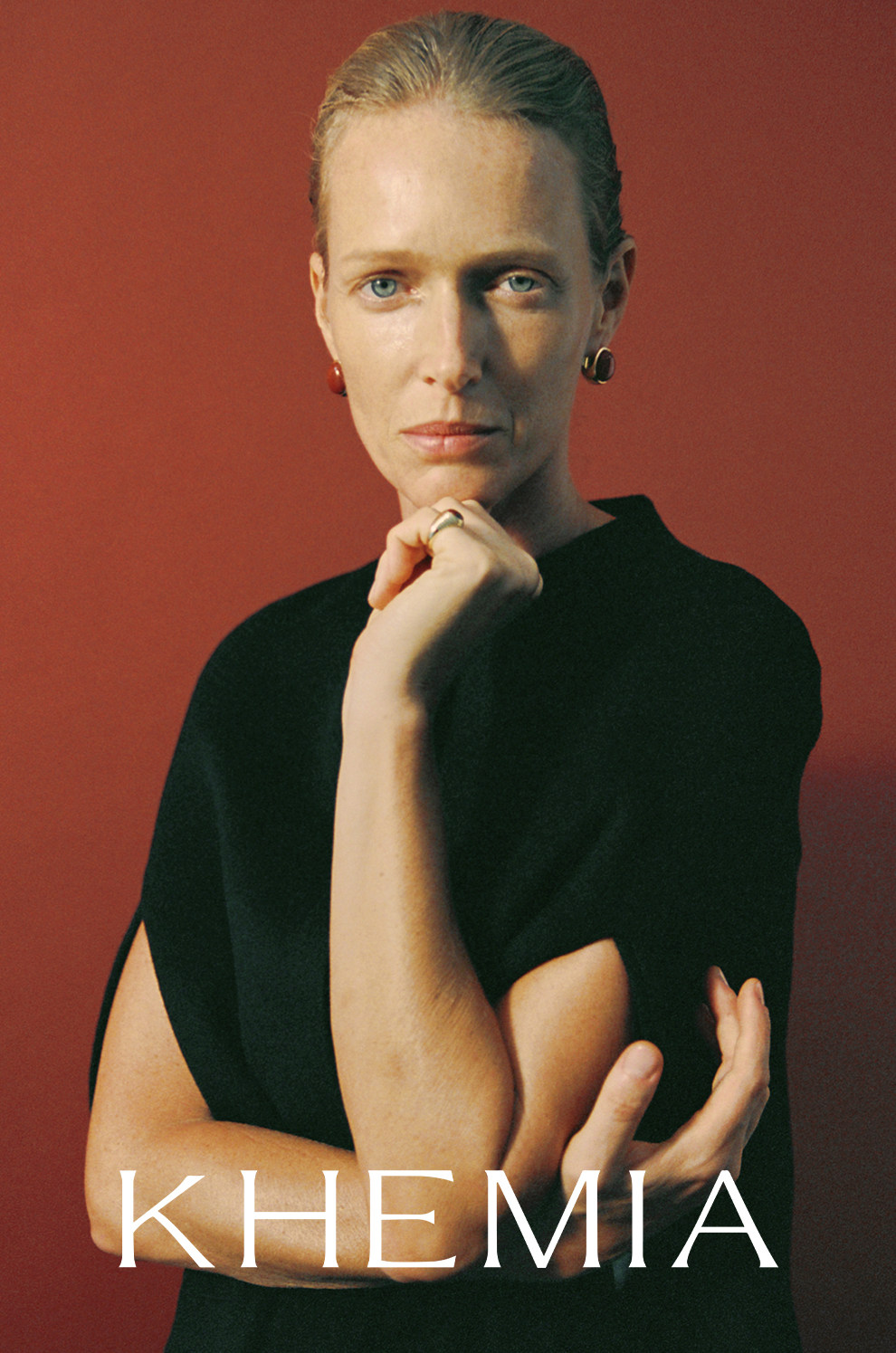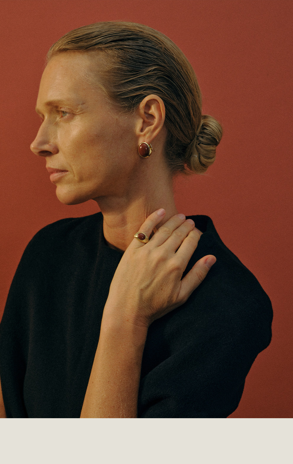 Khemia Egg-Shaped Orb Earrings, Original Niche High-End Design, Red Stone Silver Gold-Plated Elegant Earrings
