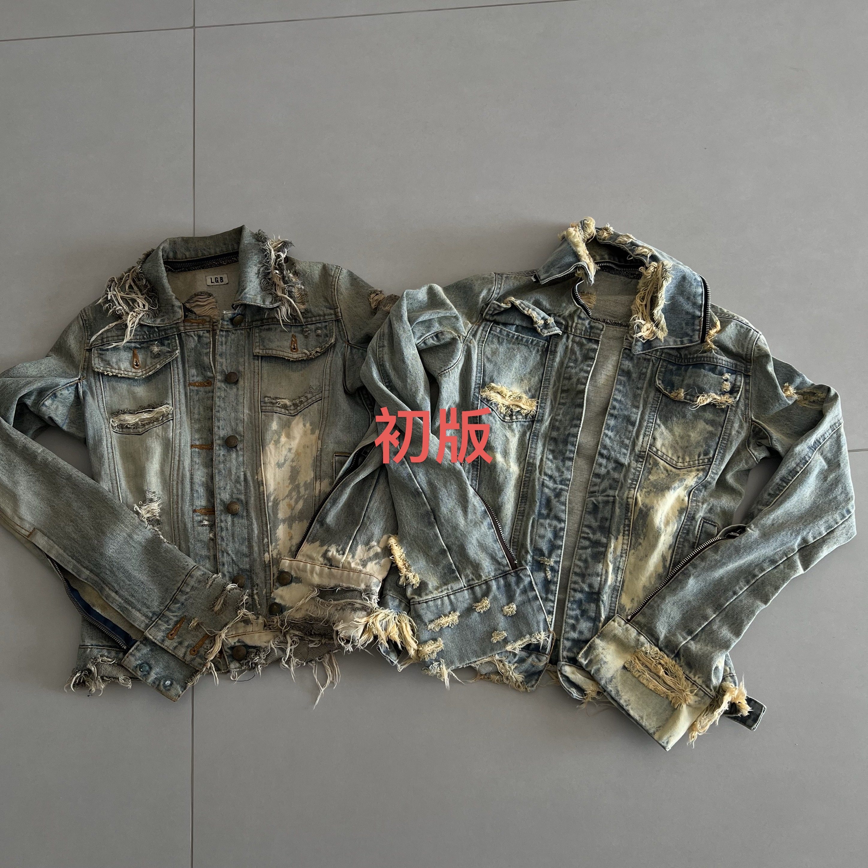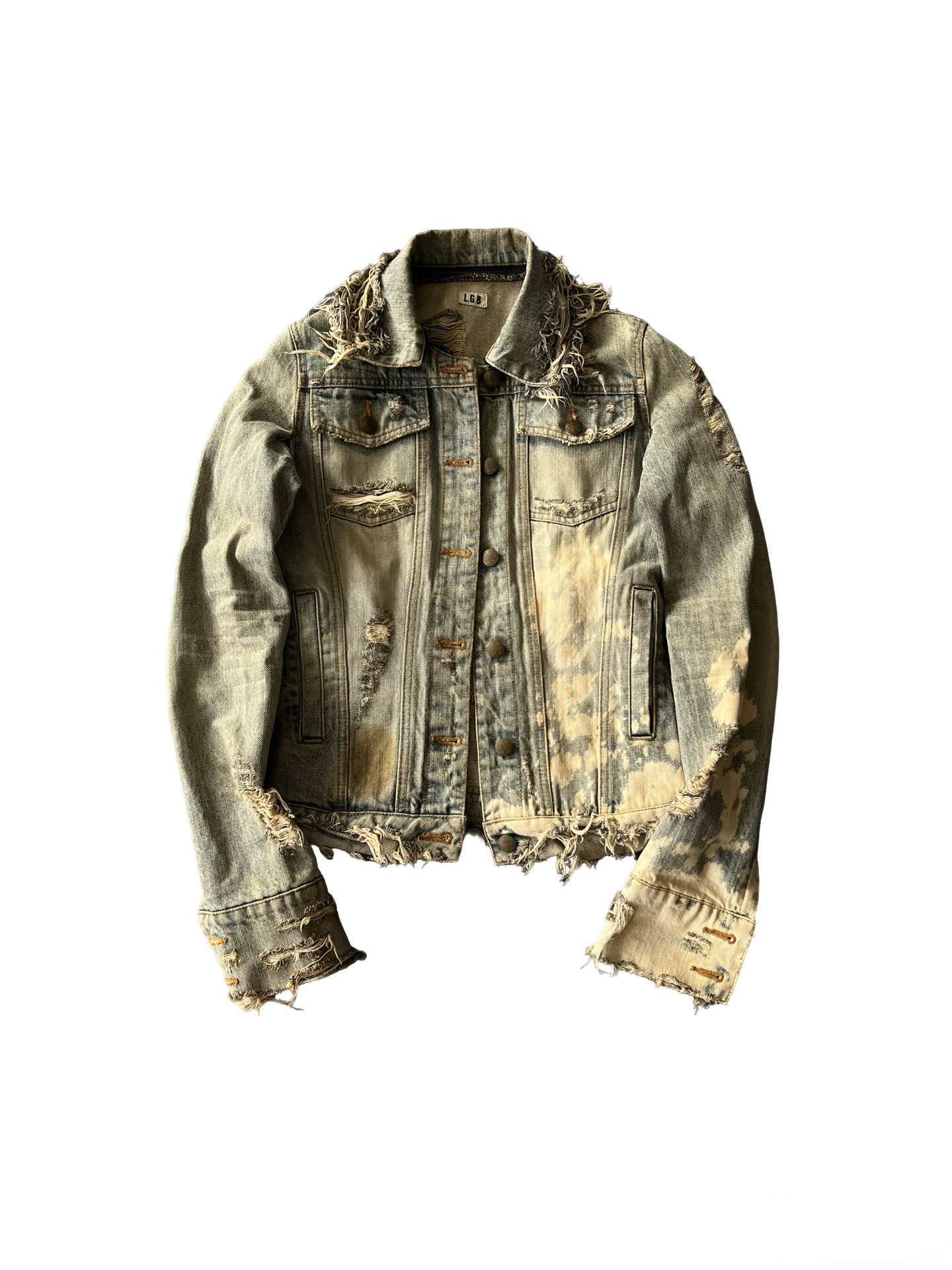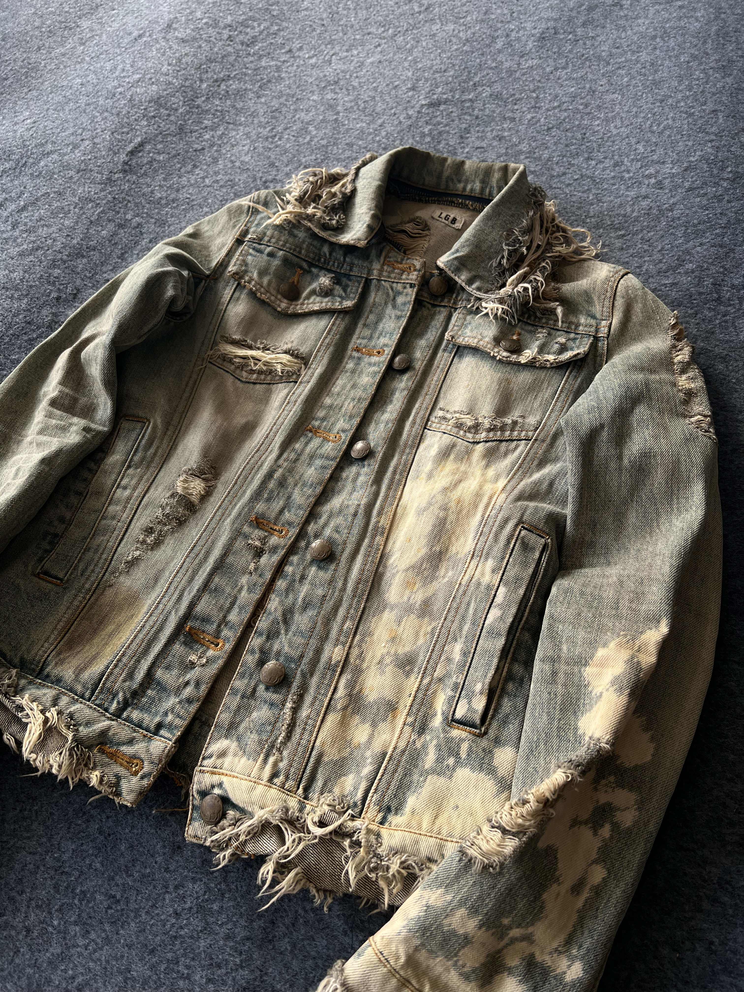(L.G.B) 00S Archive Bleach Denim Visual Style Distressed Denim Jacket