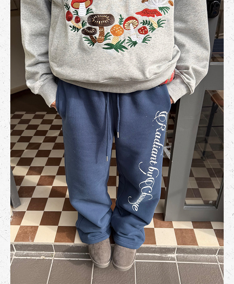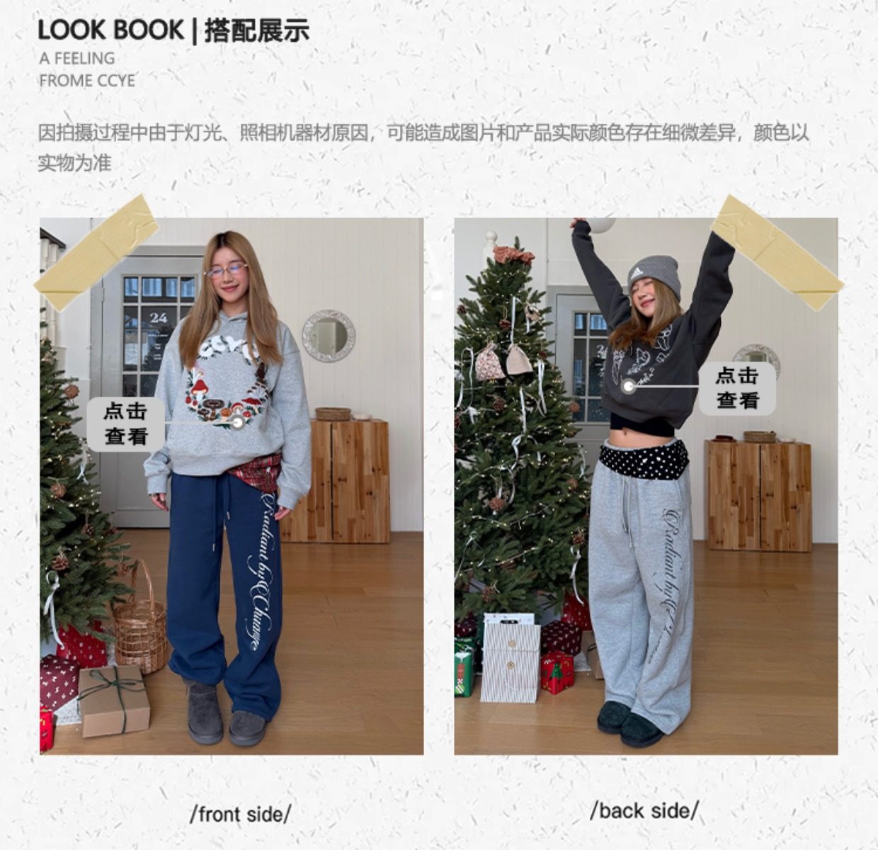 Chuanchuanye Original Printed Fleece Sweatpants with Cuffs for Men and Women, American Style, Autumn and Winter, Warm, Heavy, Elastic Waist, Casual Pants