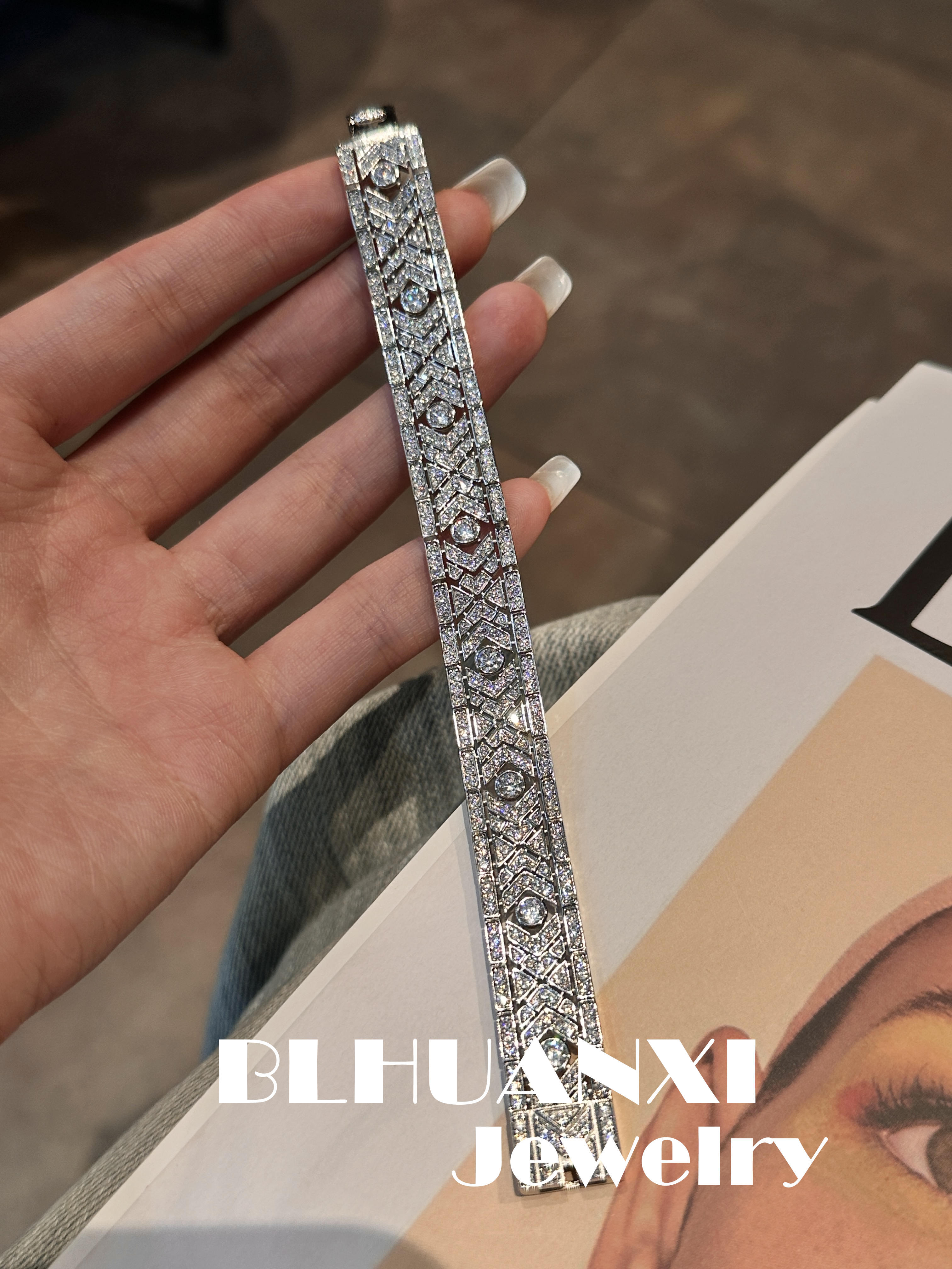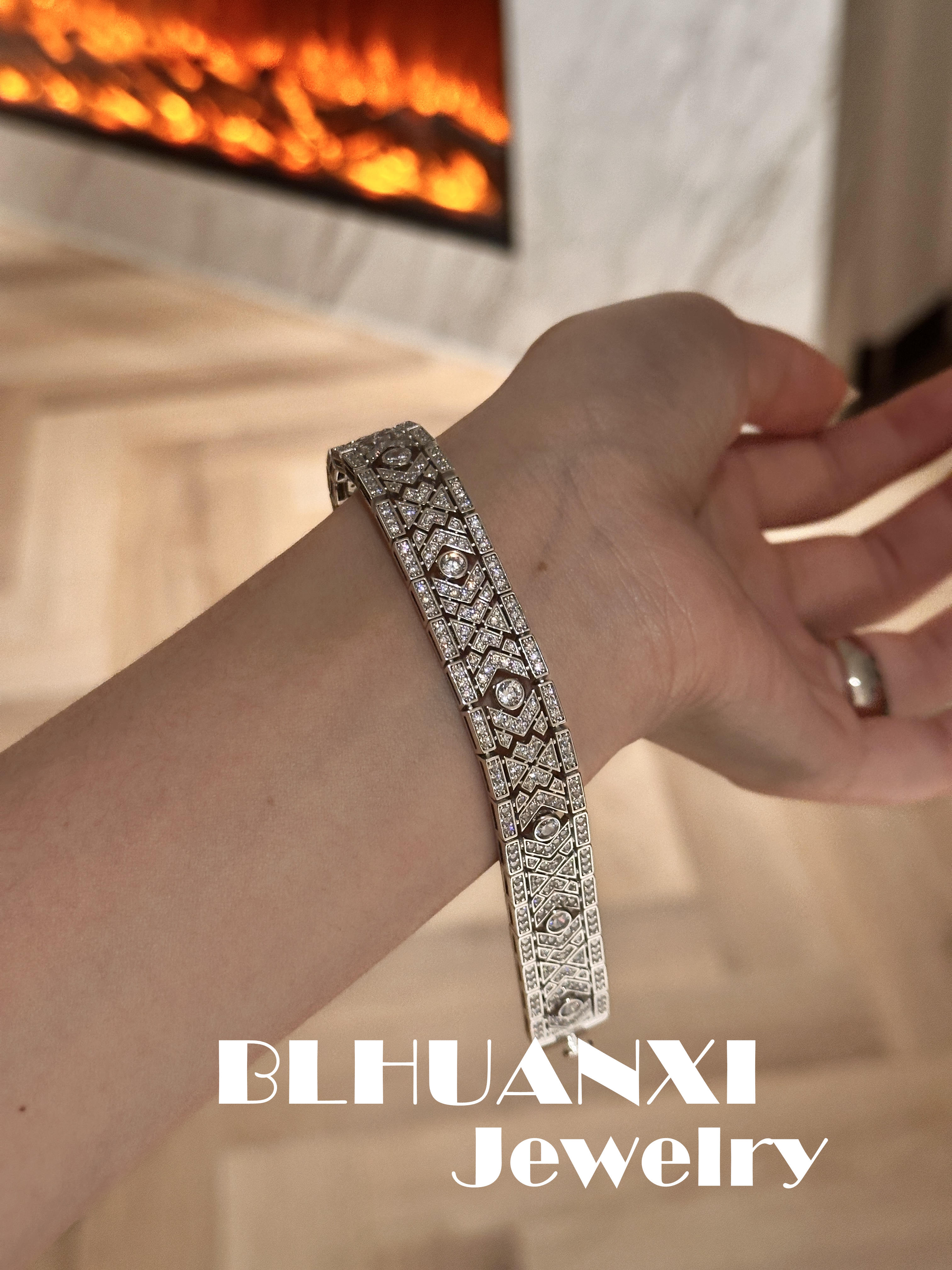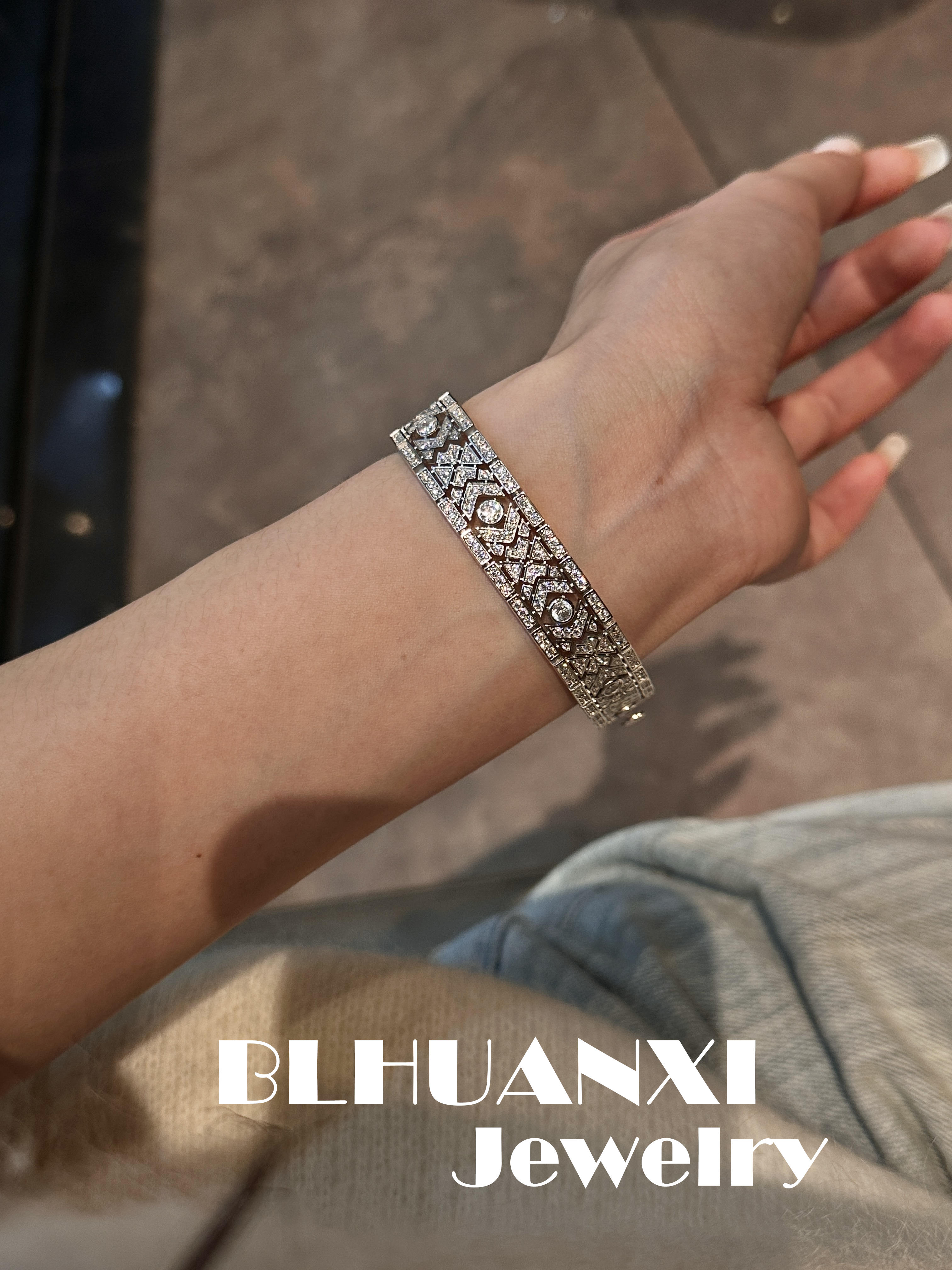 【Look for Joy】925 Silver Gold-Plated Art Deco Style Antique Jewelry Style Full Diamond Bracelet