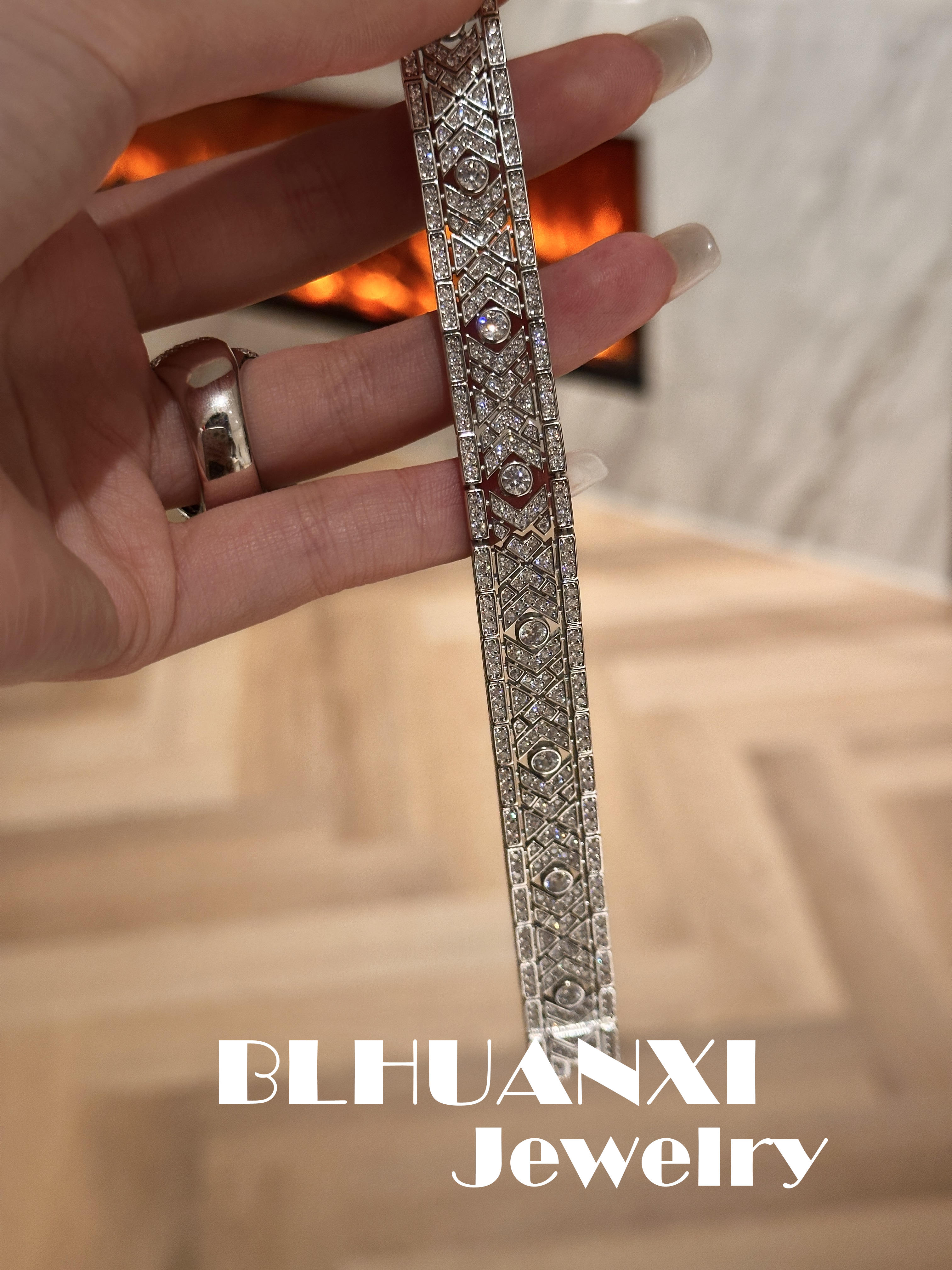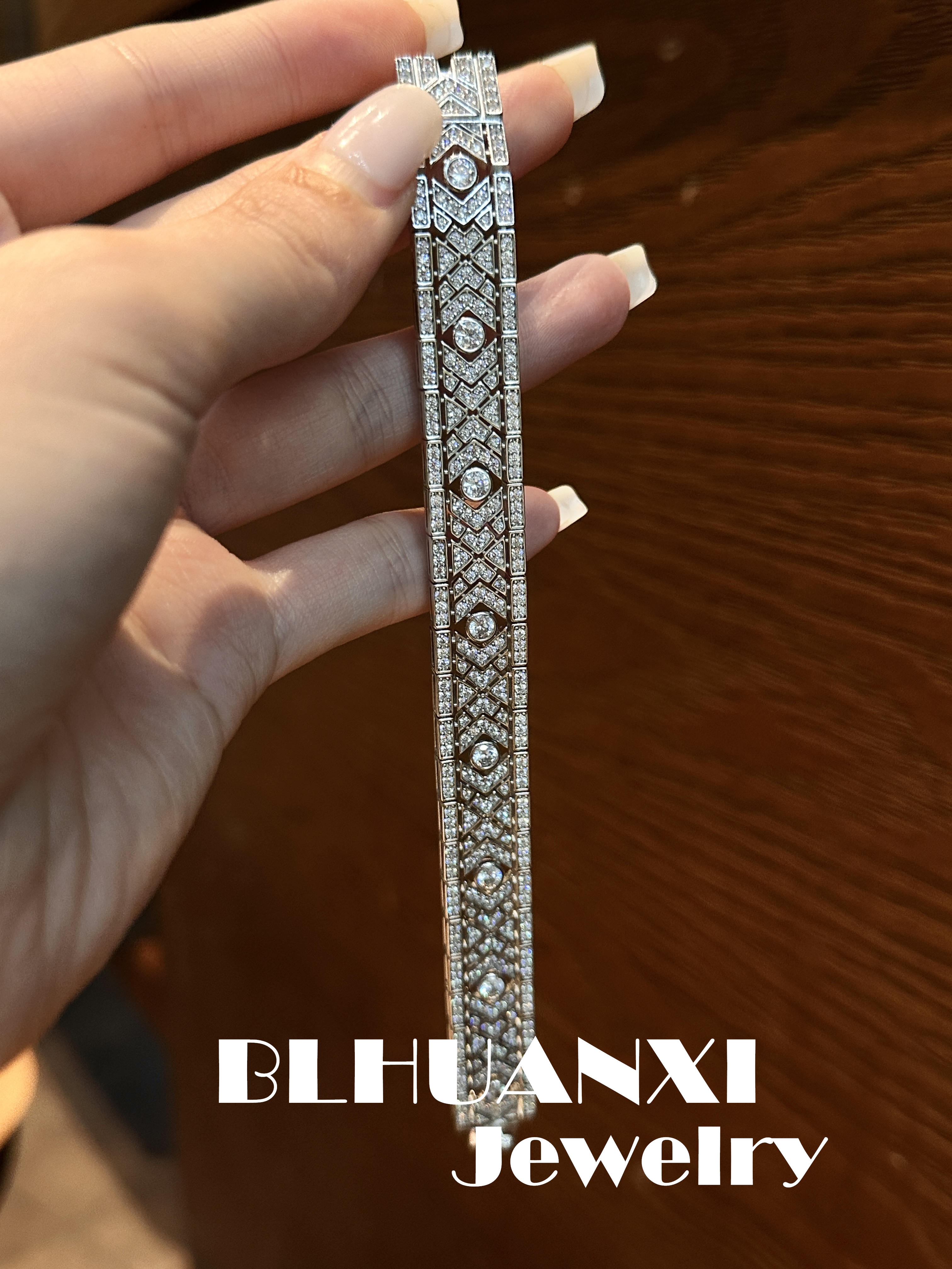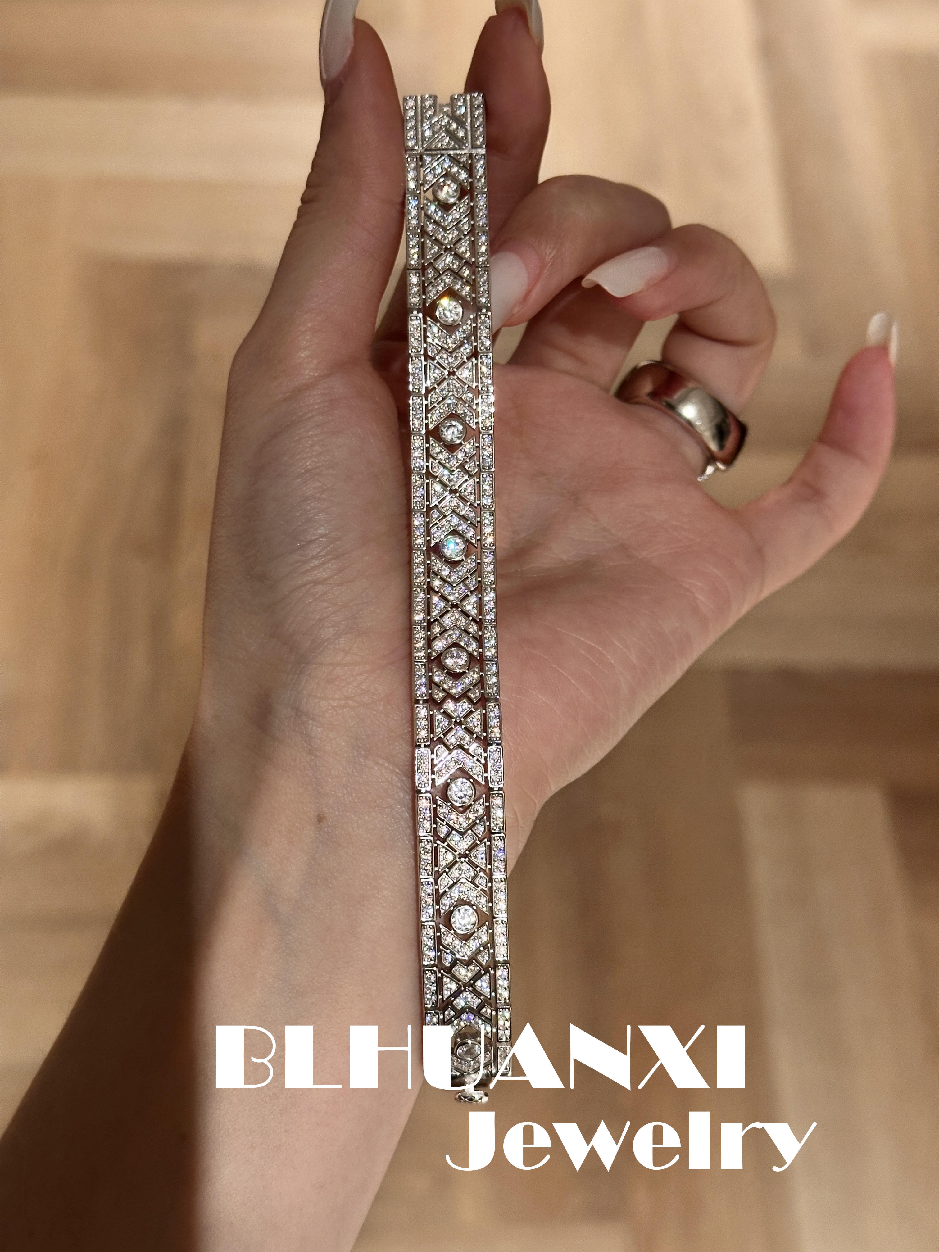 【Look for Joy】925 Silver Gold-Plated Art Deco Style Antique Jewelry Style Full Diamond Bracelet