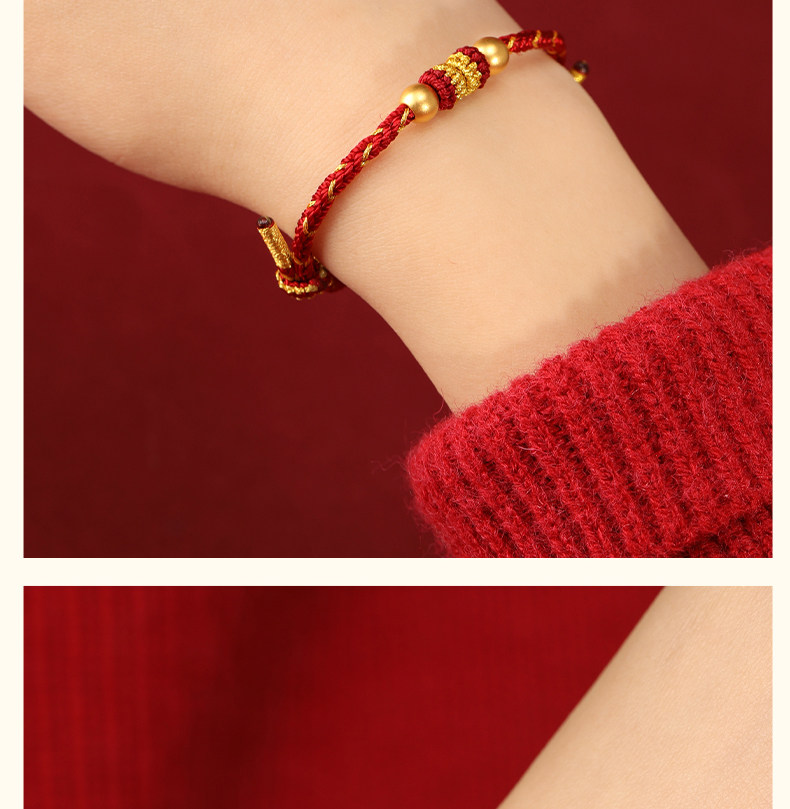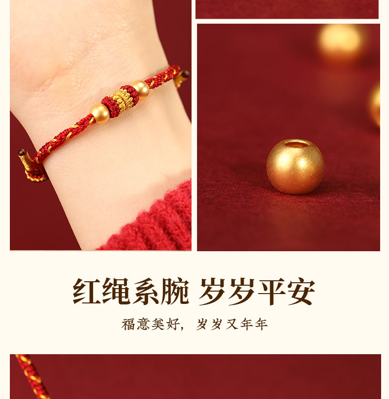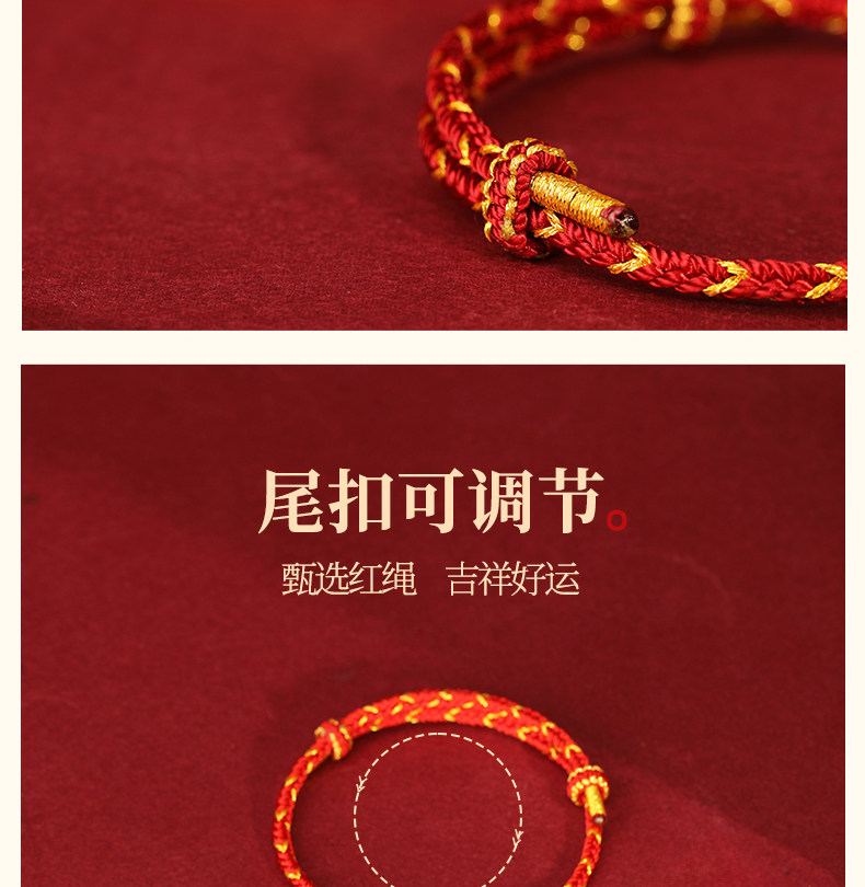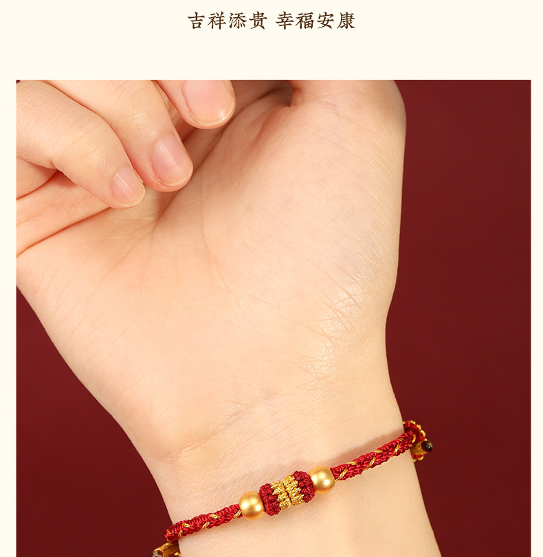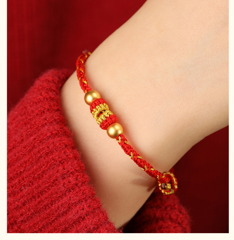 Official Genuine 999 Pure Gold High-End Gold Red String Bracelet for Men's Zodiac Year, Red String Bracelet for Women, Gift