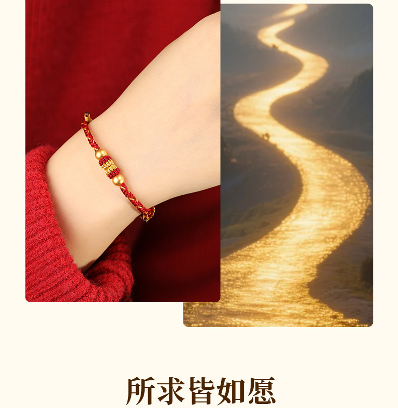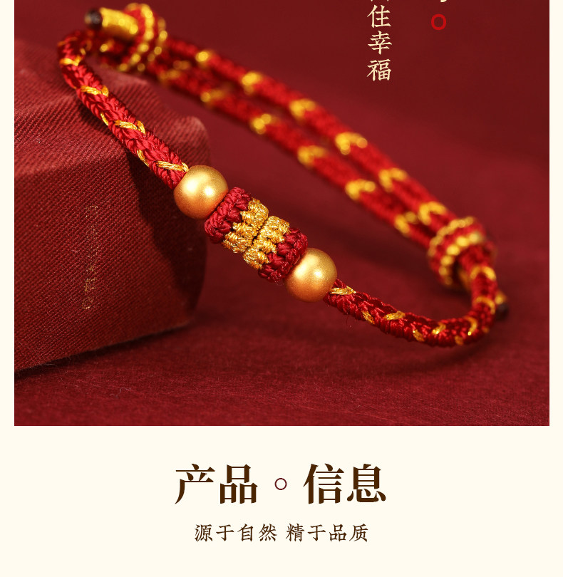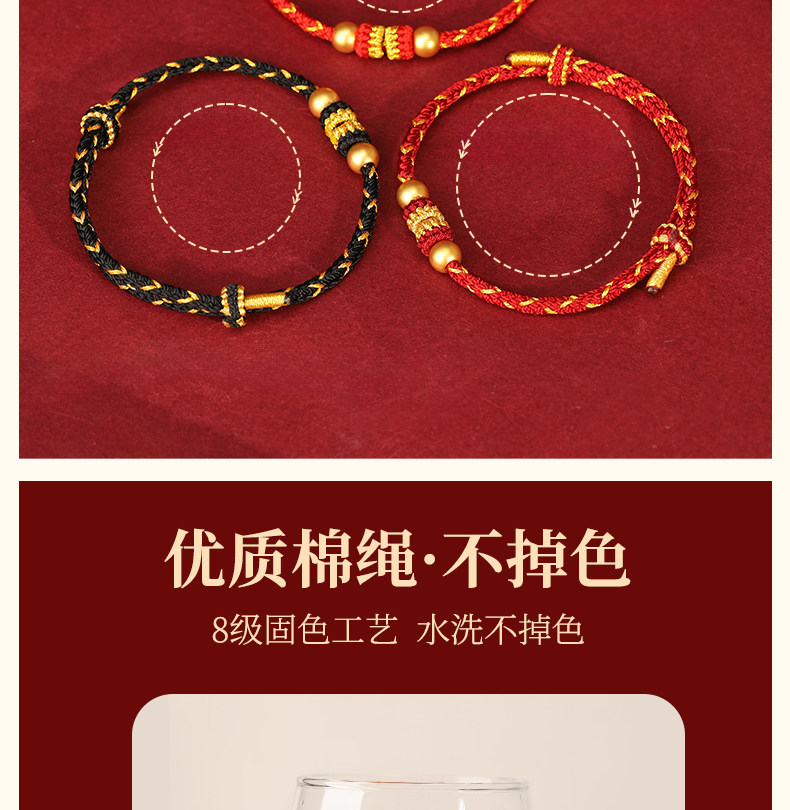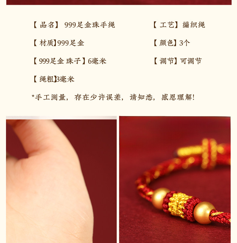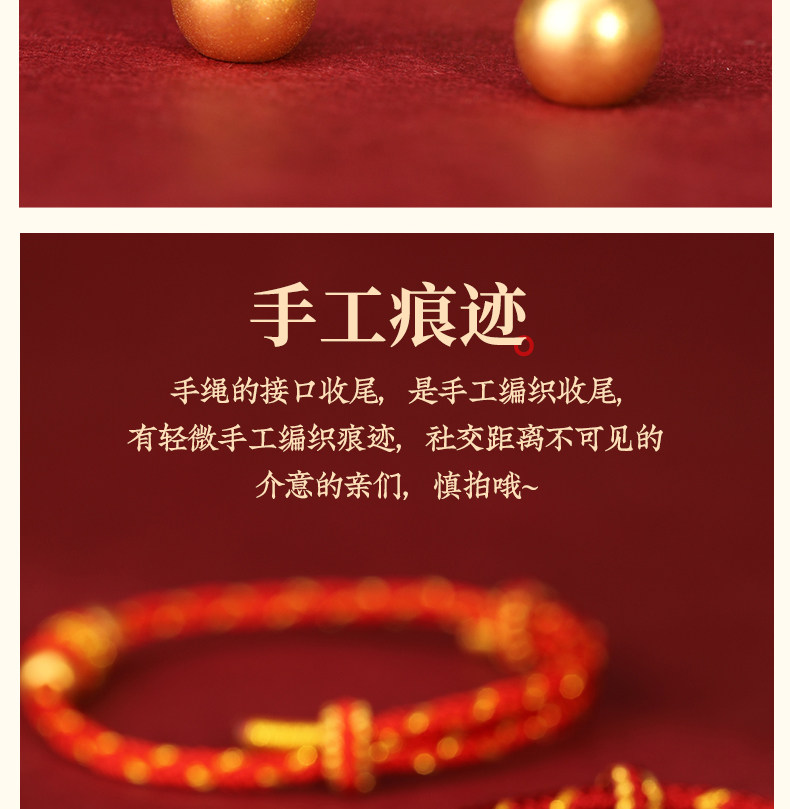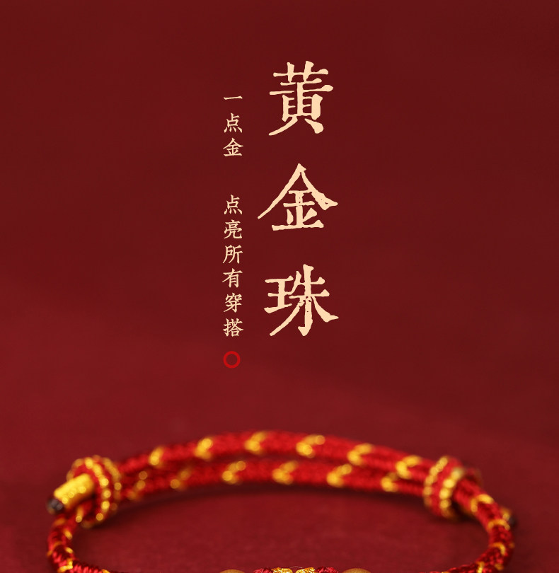 Official Genuine 999 Pure Gold High-End Gold Red String Bracelet for Men's Zodiac Year, Red String Bracelet for Women, Gift