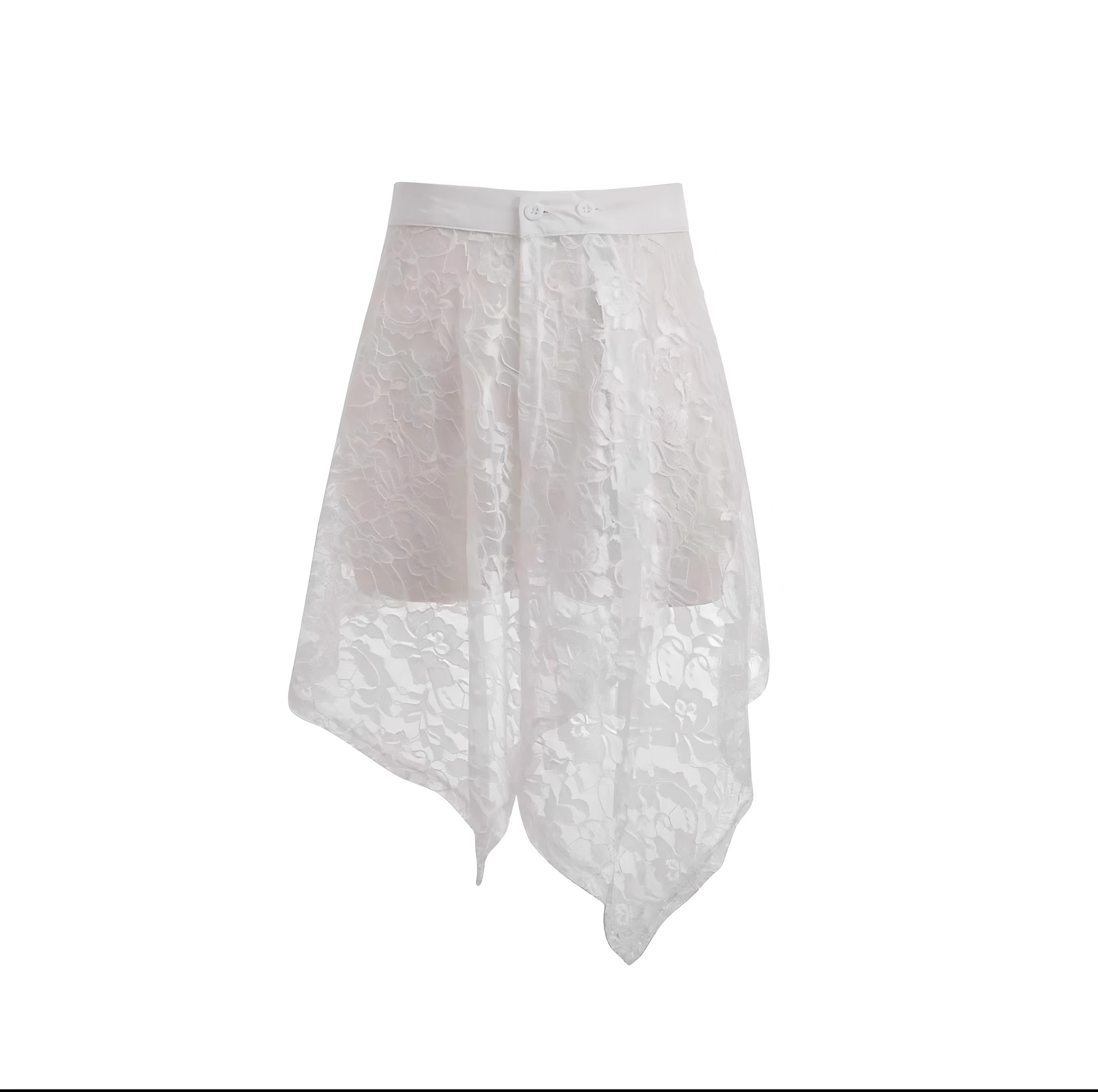 2025 New Irregular Vintage Hem Lace Skirt for Women, Slimming and Versatile, Covers the Body and Makes You Look Slimmer
