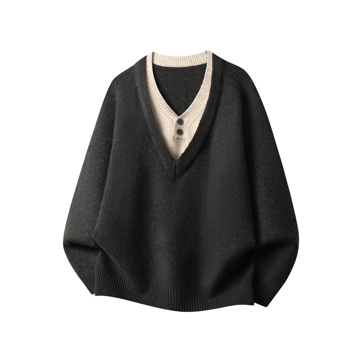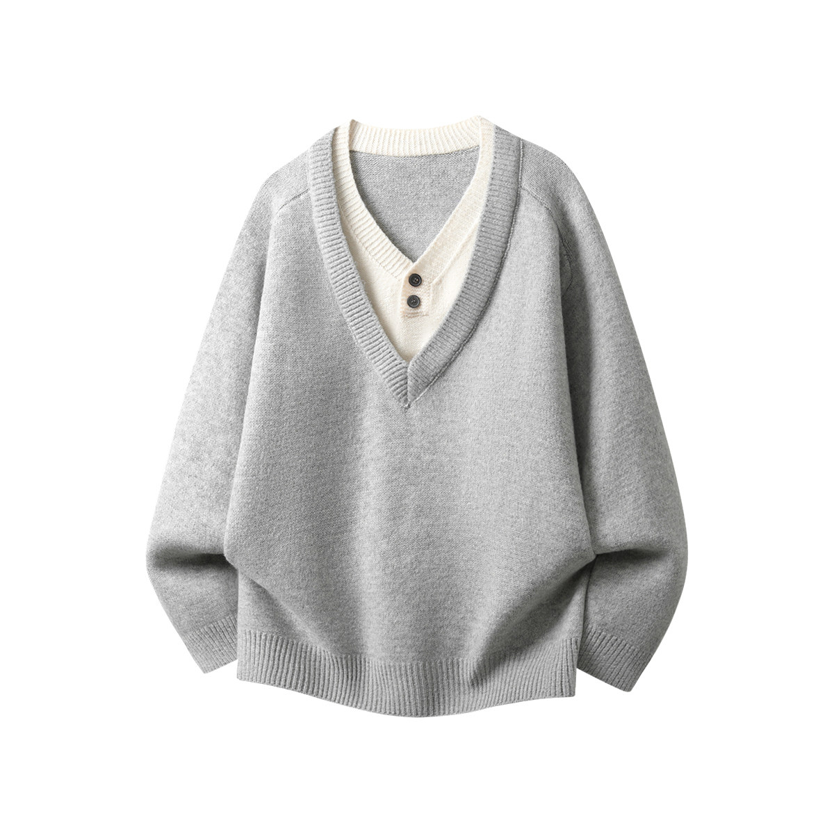 American-Style Color-Blocking Faux Two-Piece Sweater for Men and Women, Winter Trendy Brand, Cleanfit Old Money Style, Lazy Vibe, Warm Knitwear