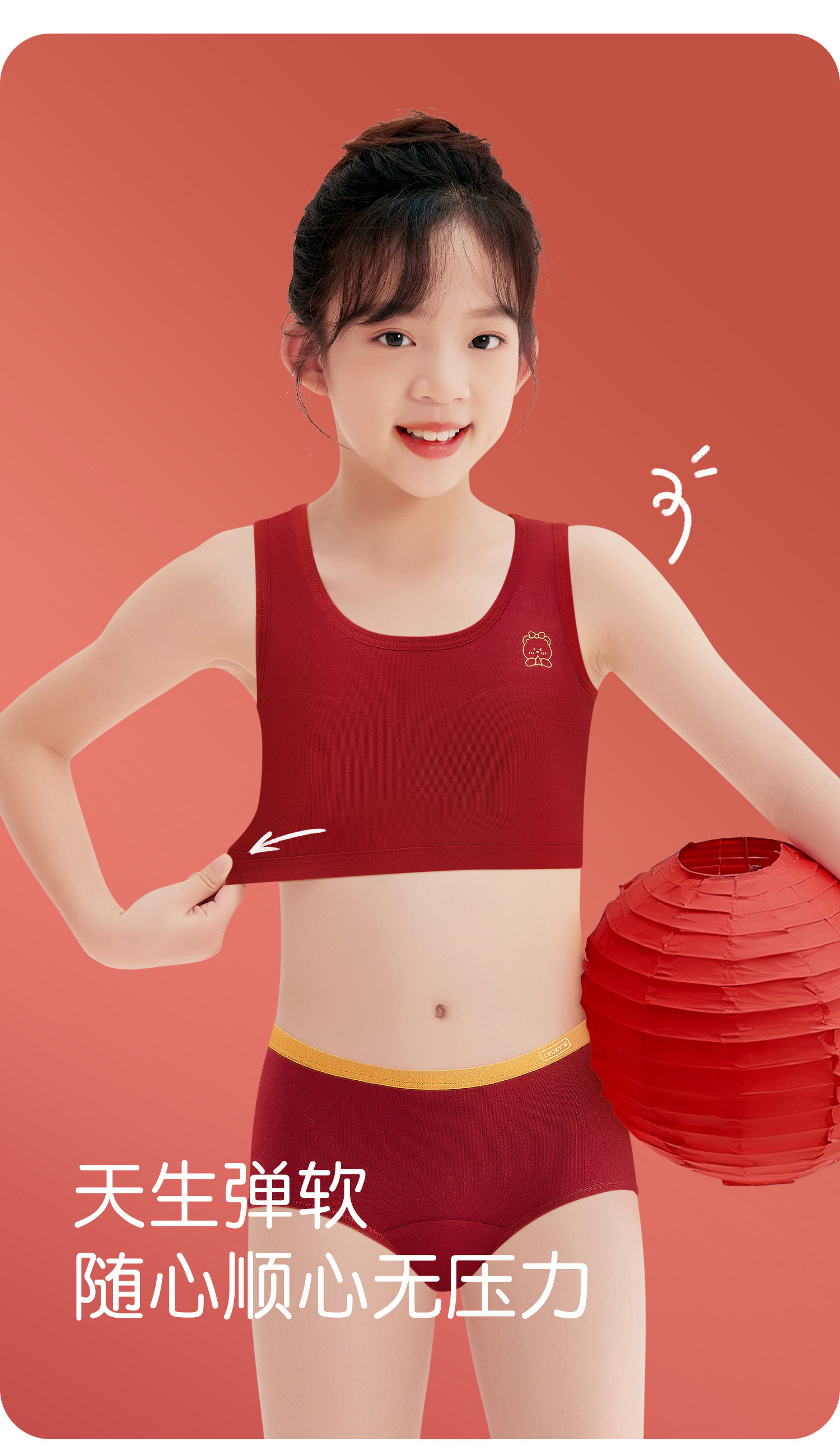 Red Vest for 12-Year-Old Girl, Zodiac Year Underwear Set, Pure Cotton for Older Girls, Year of the Horse 2026