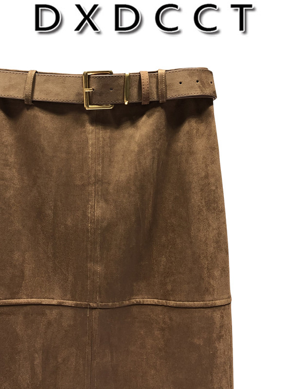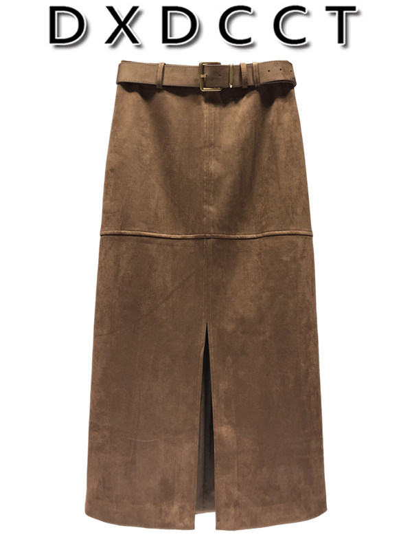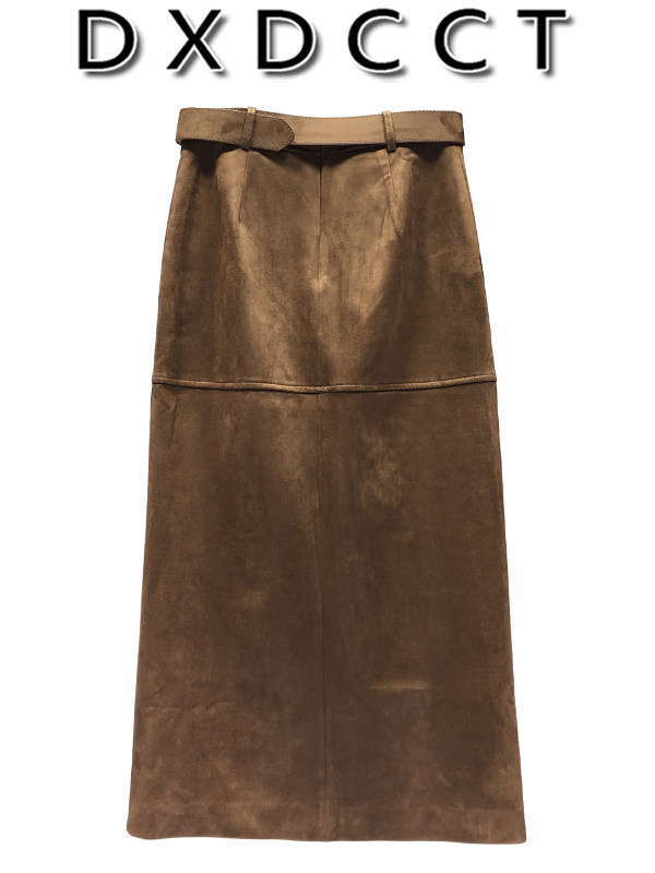 [in Stock] Slit Leather Velvet Midi Skirt for Women 2025 Autumn/Winter New Design Niche European Style Slimming Long Skirt